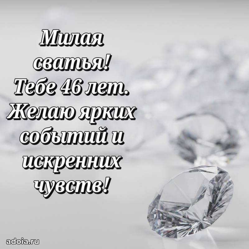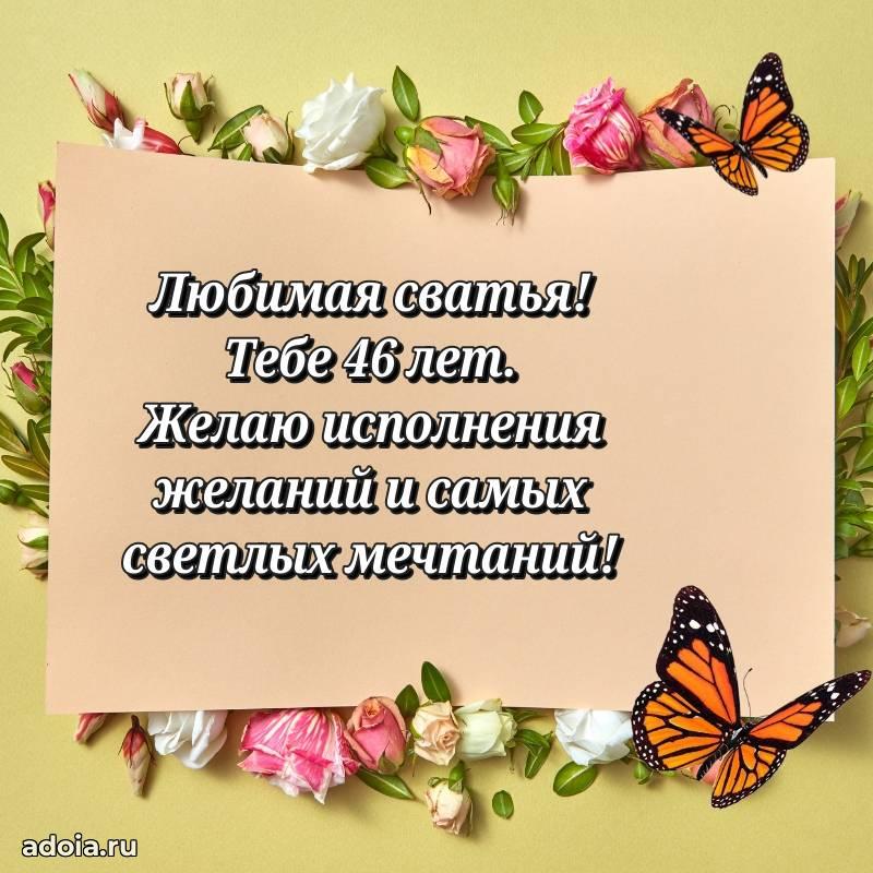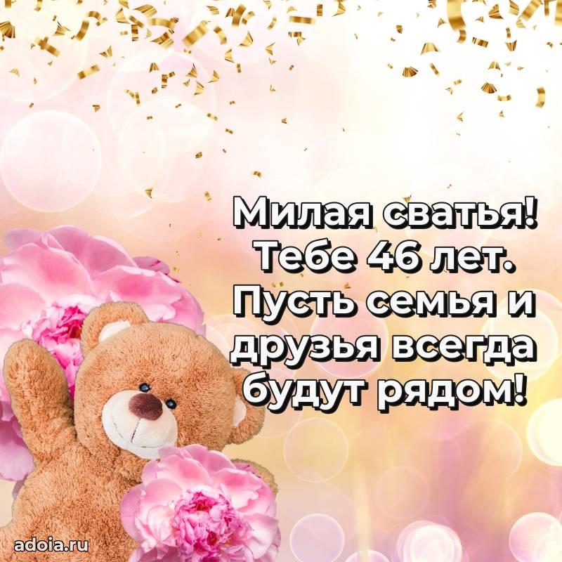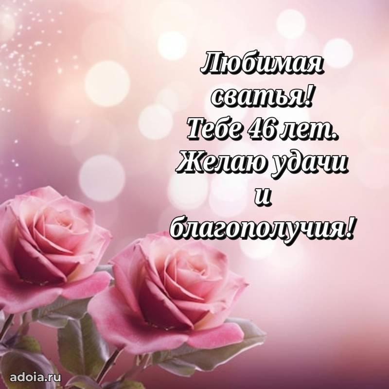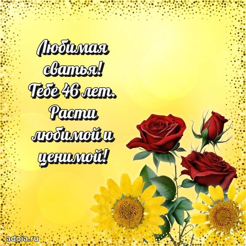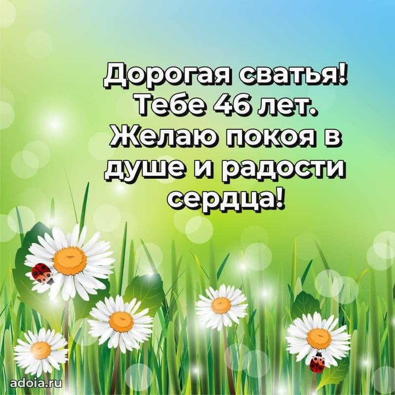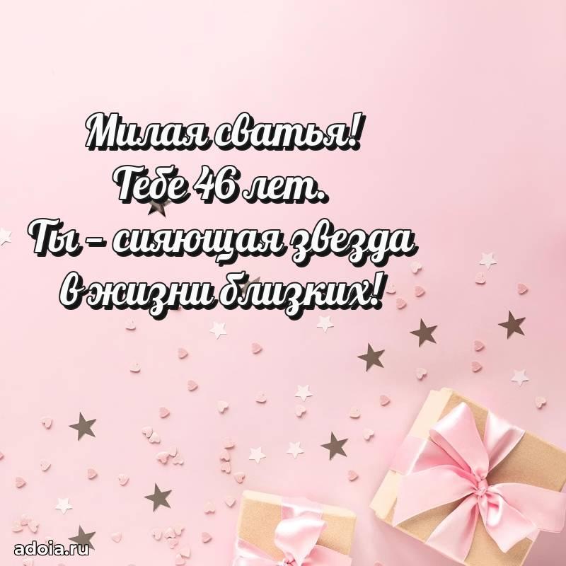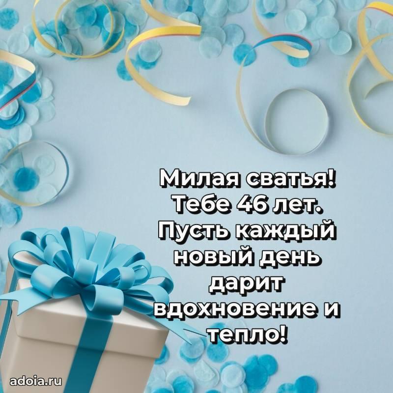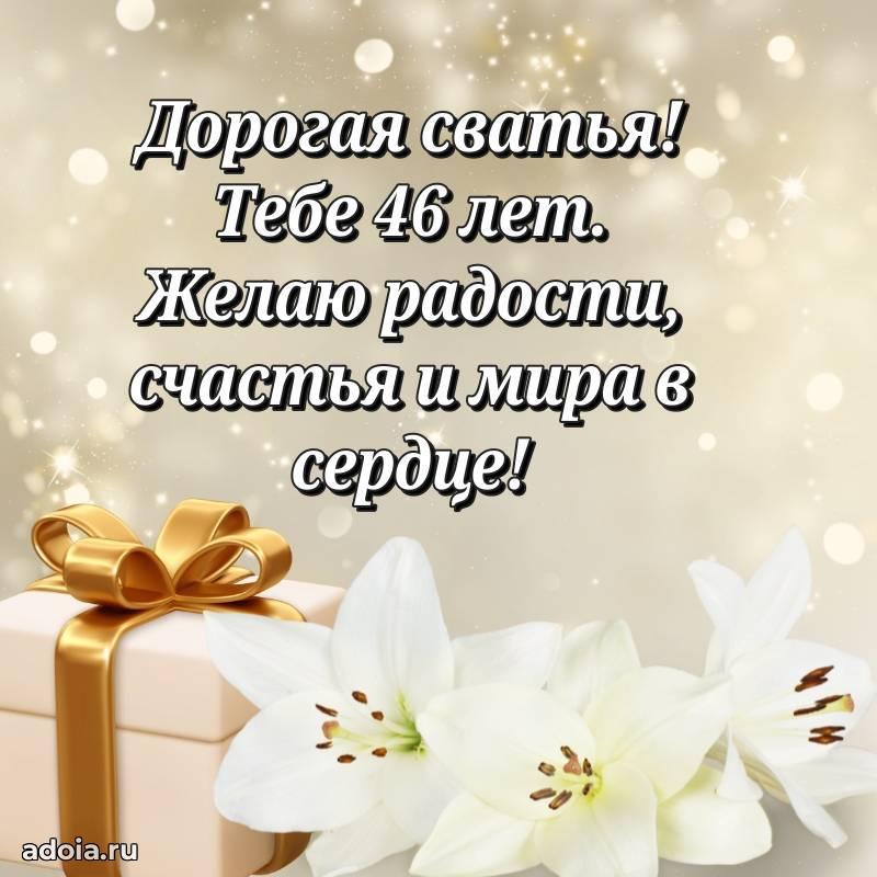 В поисках красивых и современных открыток? Вы попали по адресу! Здесь вы найдете картинки с днем рождения Сватье на 46 лет! Все картинки в высоком качестве, которые можно скачать или отправить через WhatsApp бесплатно. Также вы найдете много прикольных и мерцающих гифок и анимаций, которые поднимут настроение! Все открытки содержат поздравления в стихах и прозе.