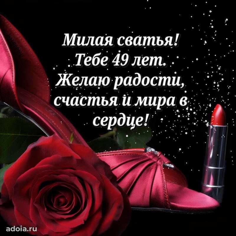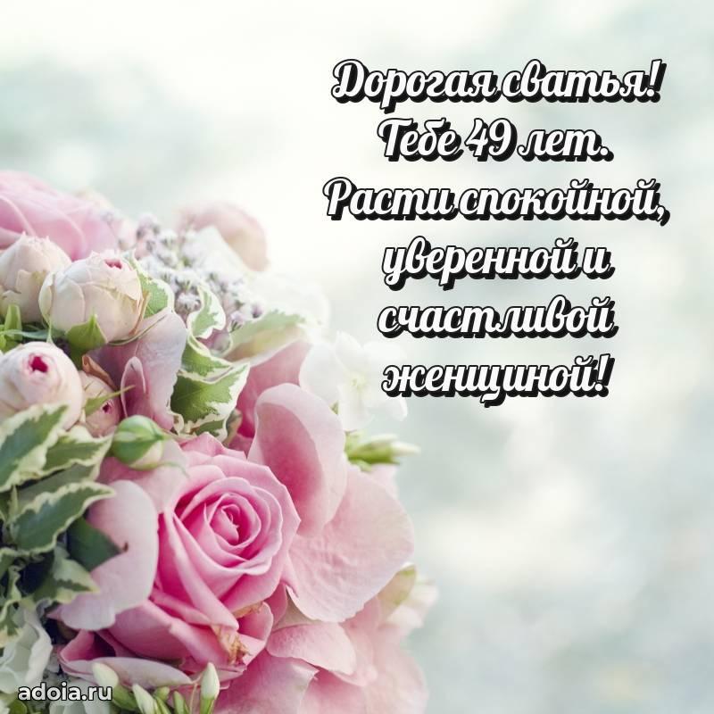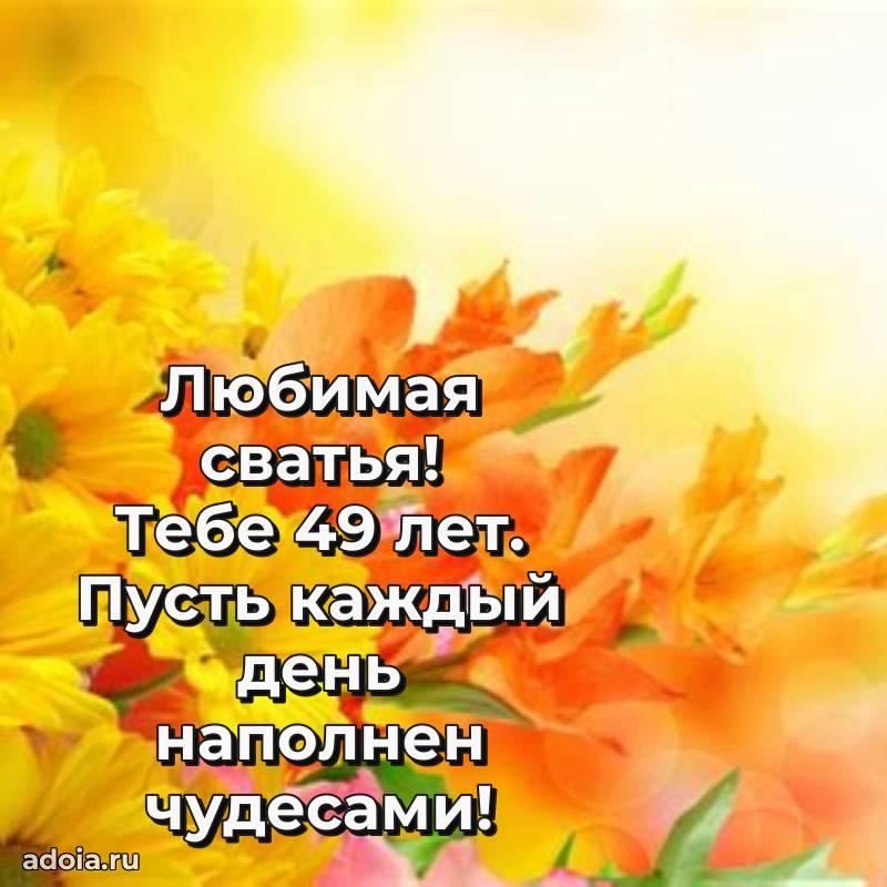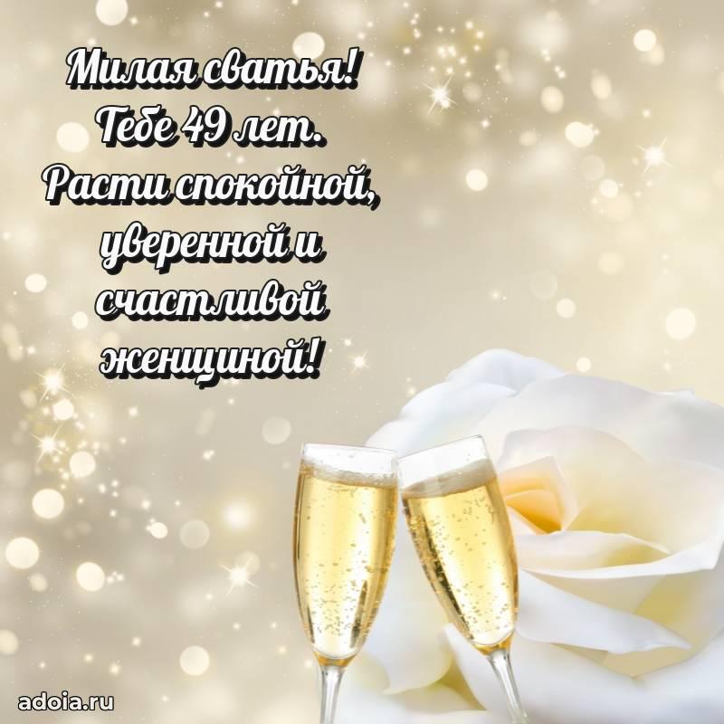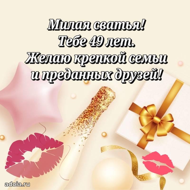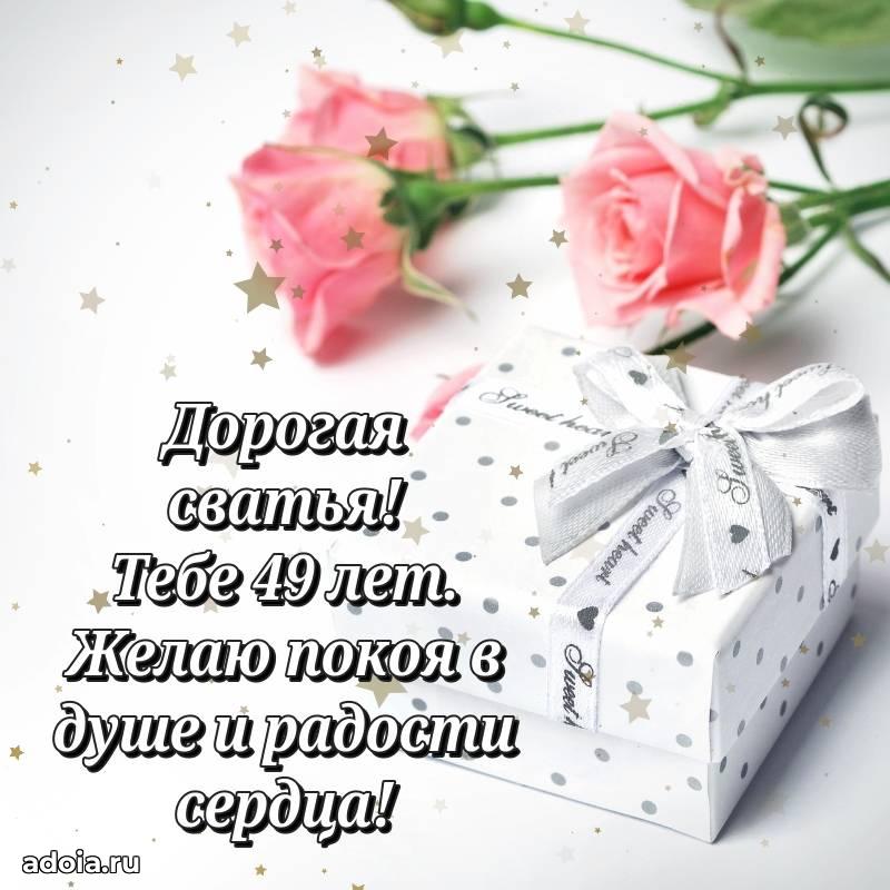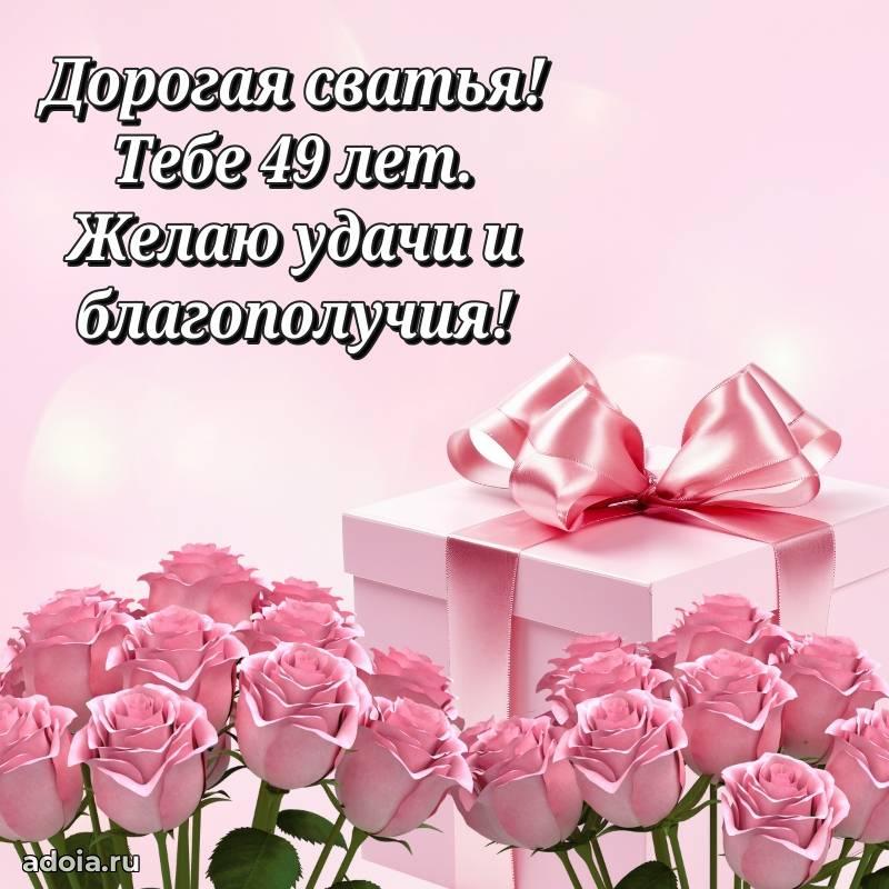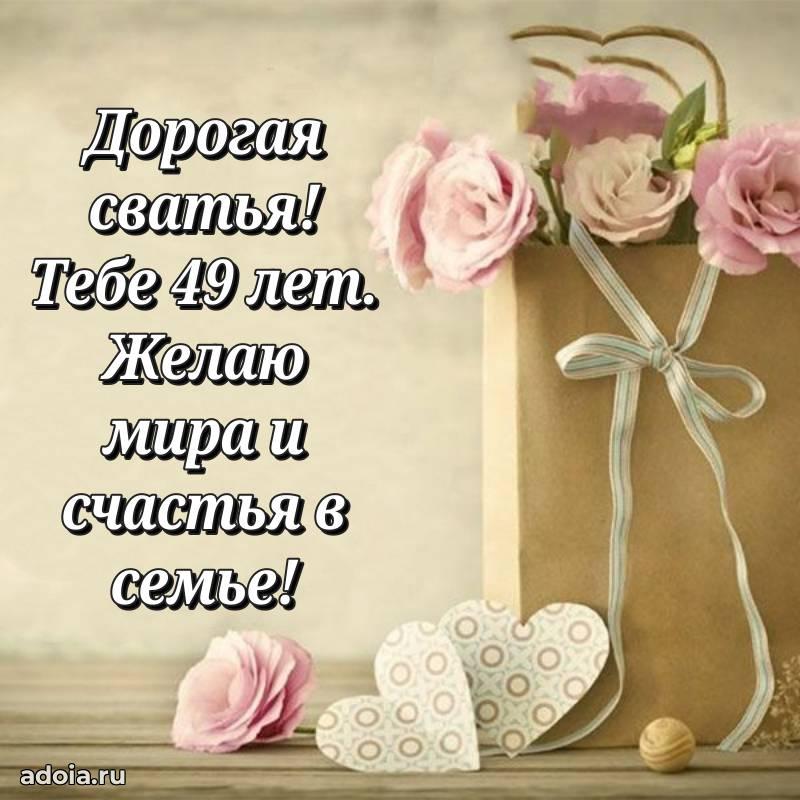 В поисках красивых и современных открыток? Вы попали по адресу! Здесь вы найдете картинки с днем рождения Сватье на 49 лет! Все картинки в высоком качестве, которые можно скачать или отправить через WhatsApp бесплатно. Также вы найдете много прикольных и мерцающих гифок и анимаций, которые поднимут настроение! Все открытки содержат поздравления в стихах и прозе.