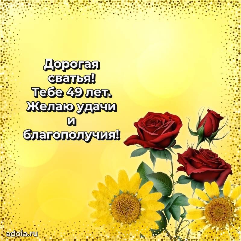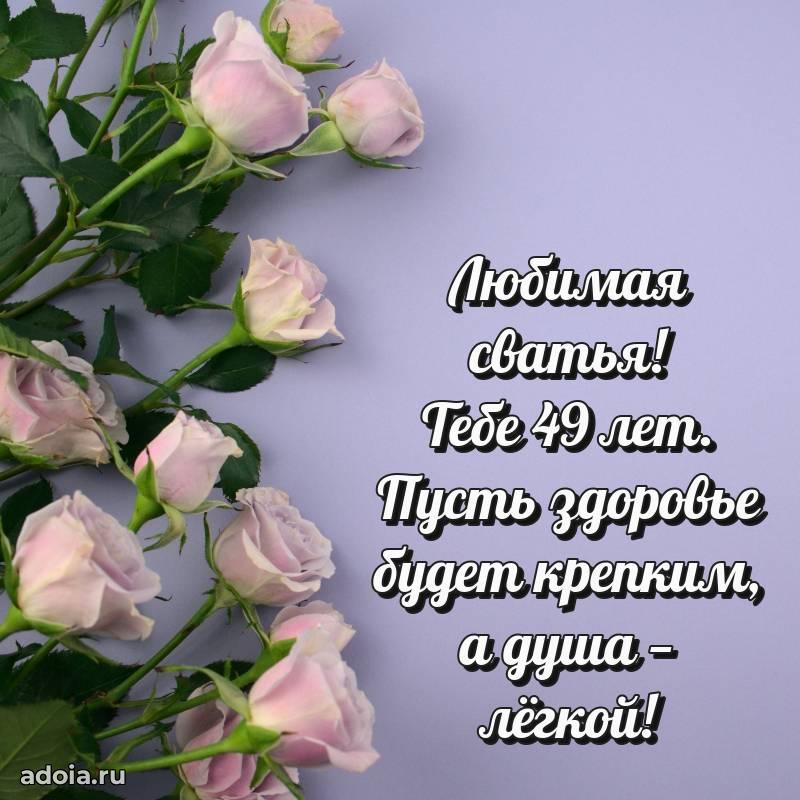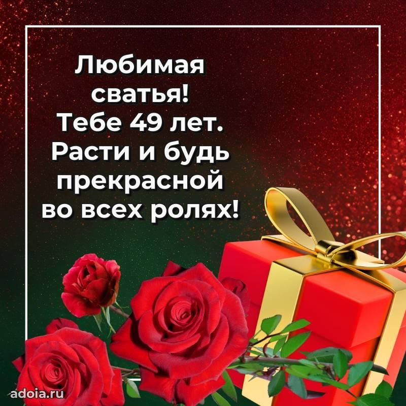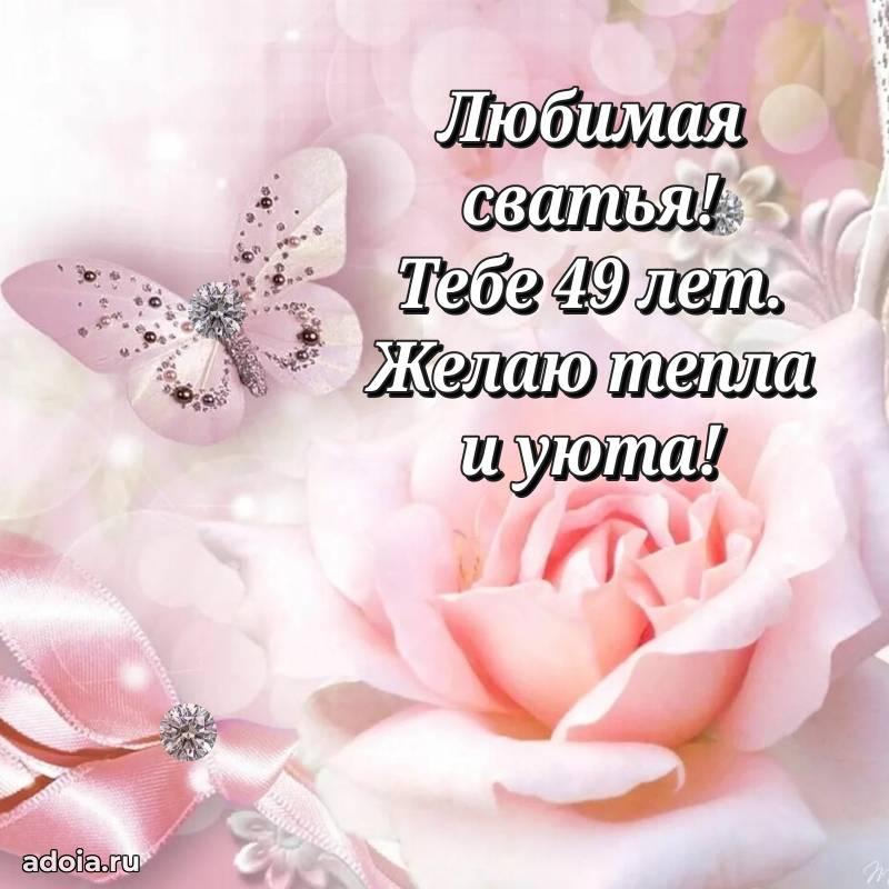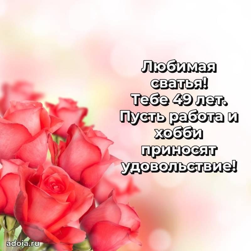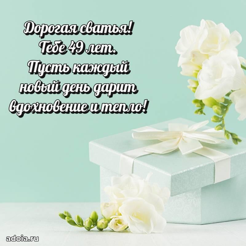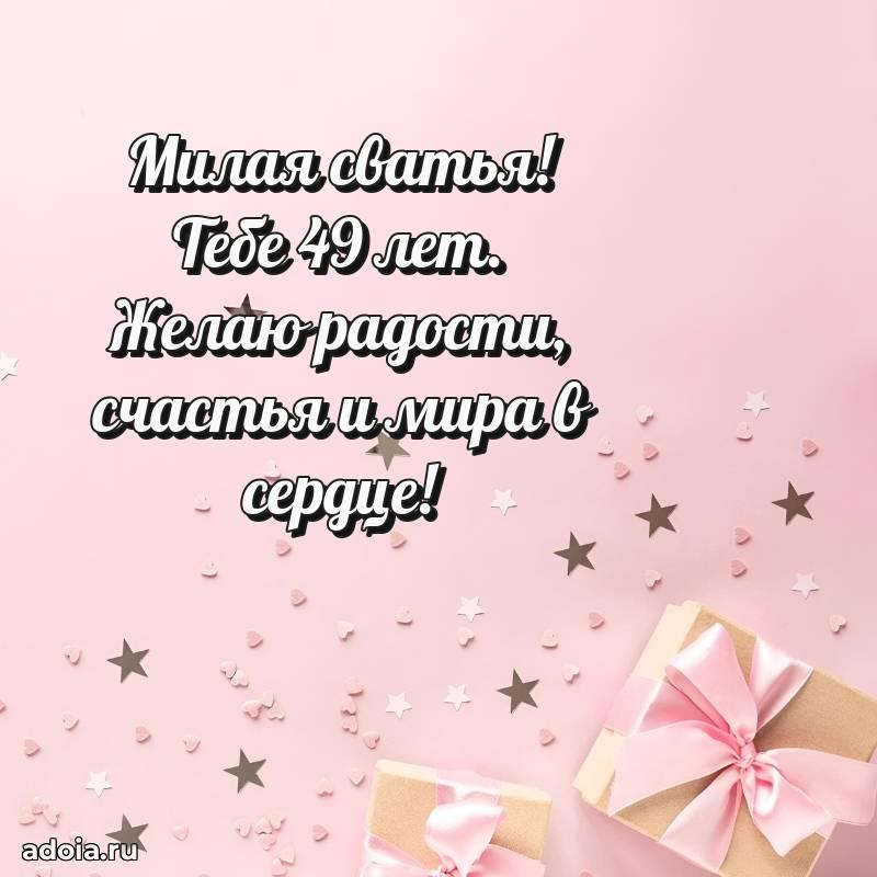 В поисках красивых и современных открыток? Вы попали по адресу! Здесь вы найдете картинки с днем рождения Сватье на 49 лет! Все картинки в высоком качестве, которые можно скачать или отправить через WhatsApp бесплатно. Также вы найдете много прикольных и мерцающих гифок и анимаций, которые поднимут настроение! Все открытки содержат поздравления в стихах и прозе.