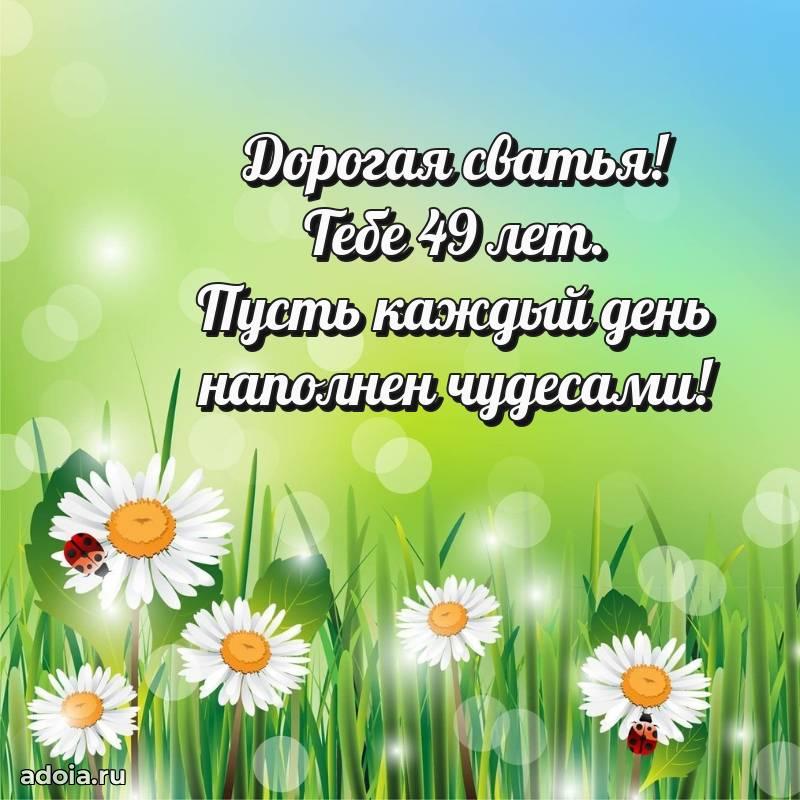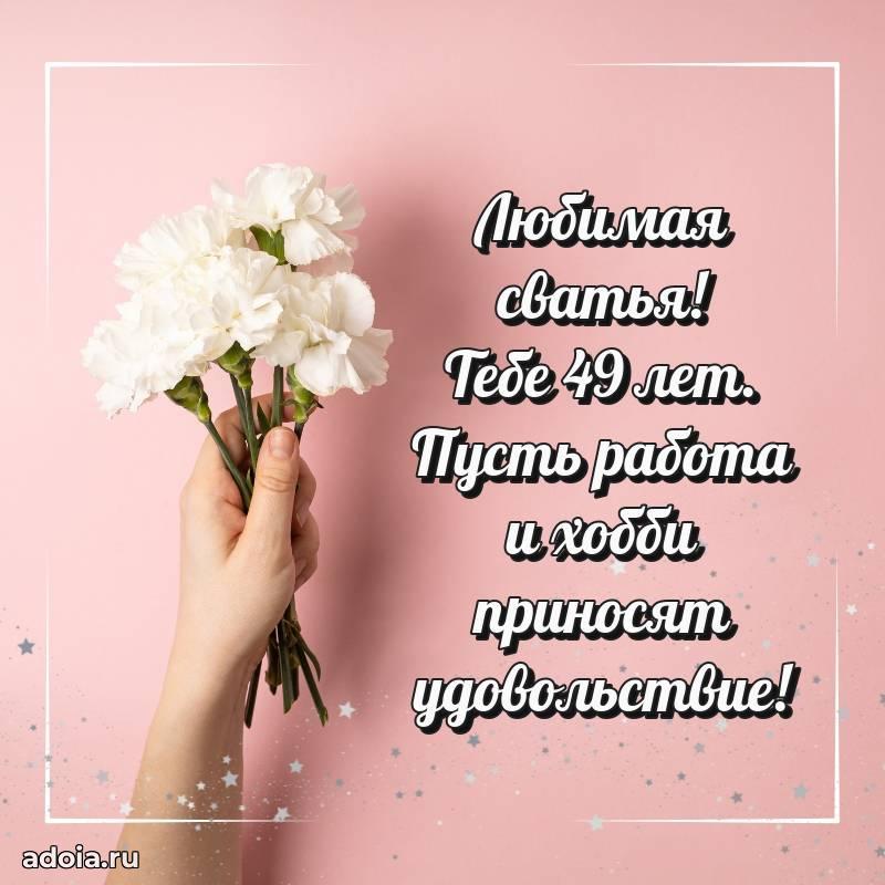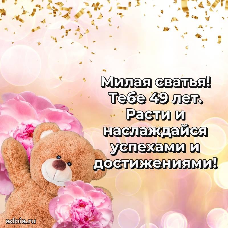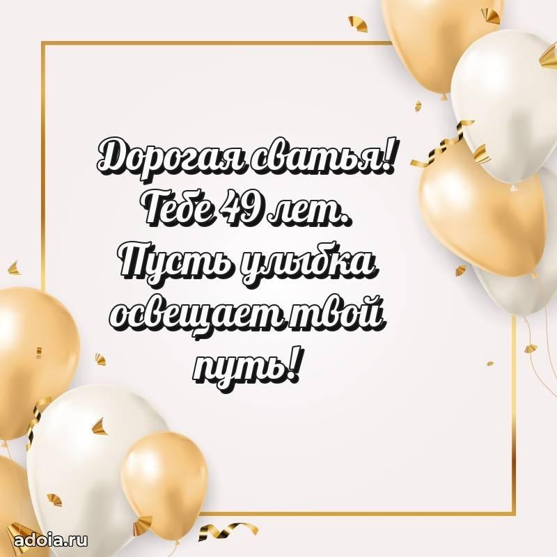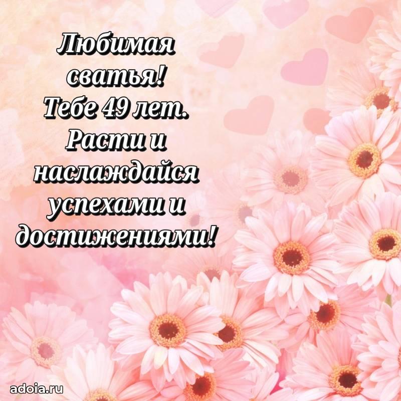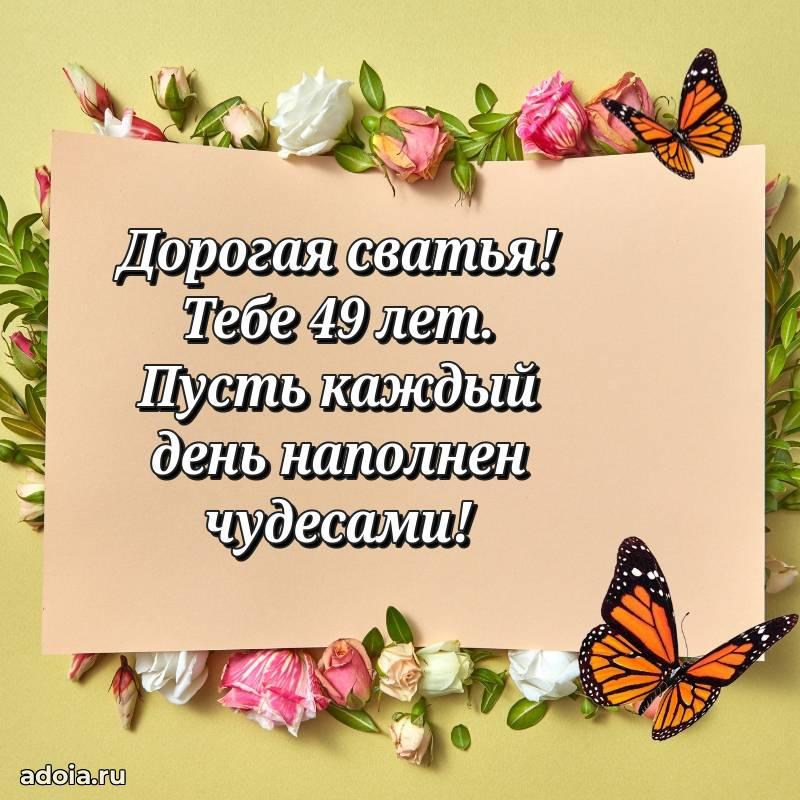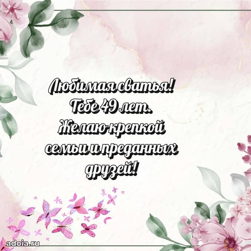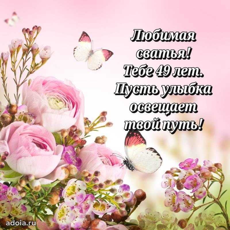 В поисках красивых и современных открыток? Вы попали по адресу! Здесь вы найдете картинки с днем рождения Сватье на 49 лет! Все картинки в высоком качестве, которые можно скачать или отправить через WhatsApp бесплатно. Также вы найдете много прикольных и мерцающих гифок и анимаций, которые поднимут настроение! Все открытки содержат поздравления в стихах и прозе.