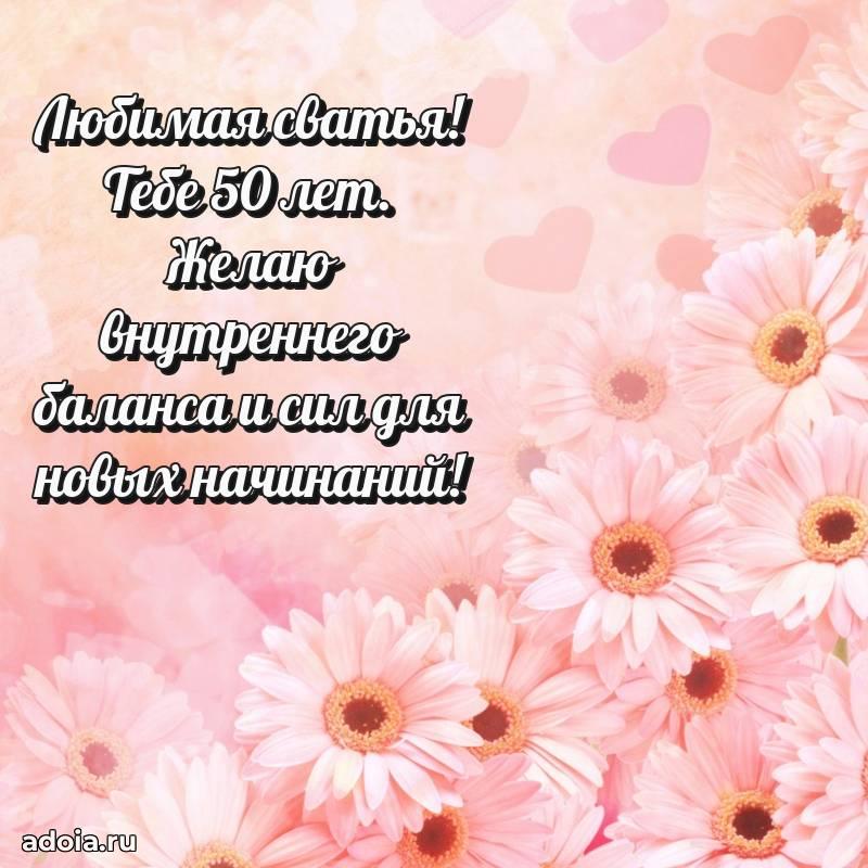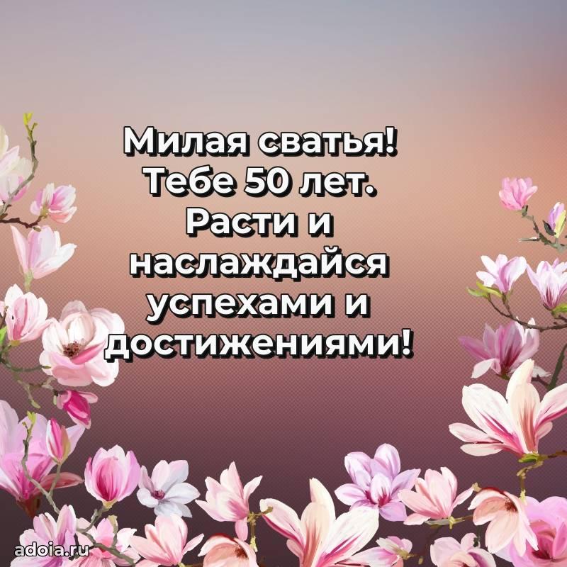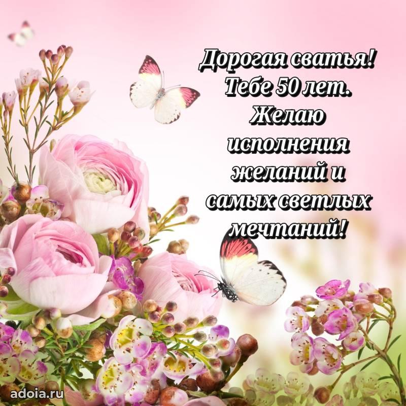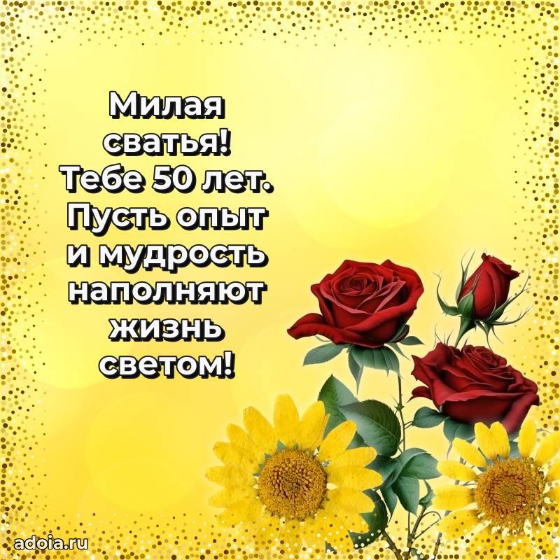 В поисках красивых и современных открыток? Вы попали по адресу! Здесь вы найдете картинки с днем рождения Сватье на 50 лет! Все картинки в высоком качестве, которые можно скачать или отправить через WhatsApp бесплатно. Также вы найдете много прикольных и мерцающих гифок и анимаций, которые поднимут настроение! Все открытки содержат поздравления в стихах и прозе.