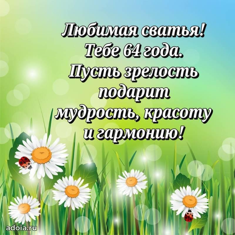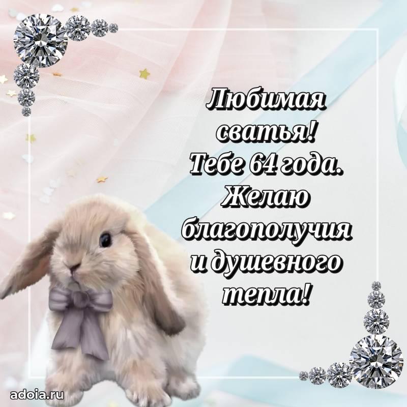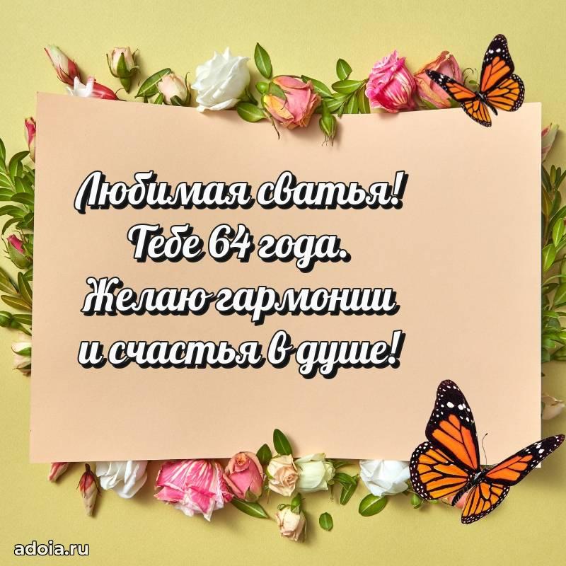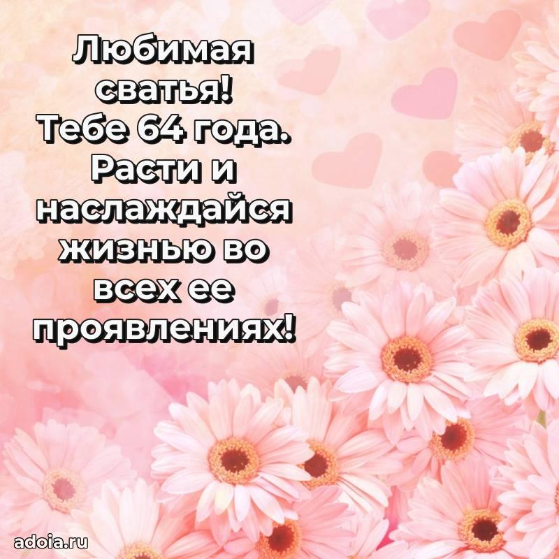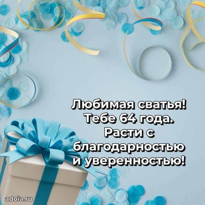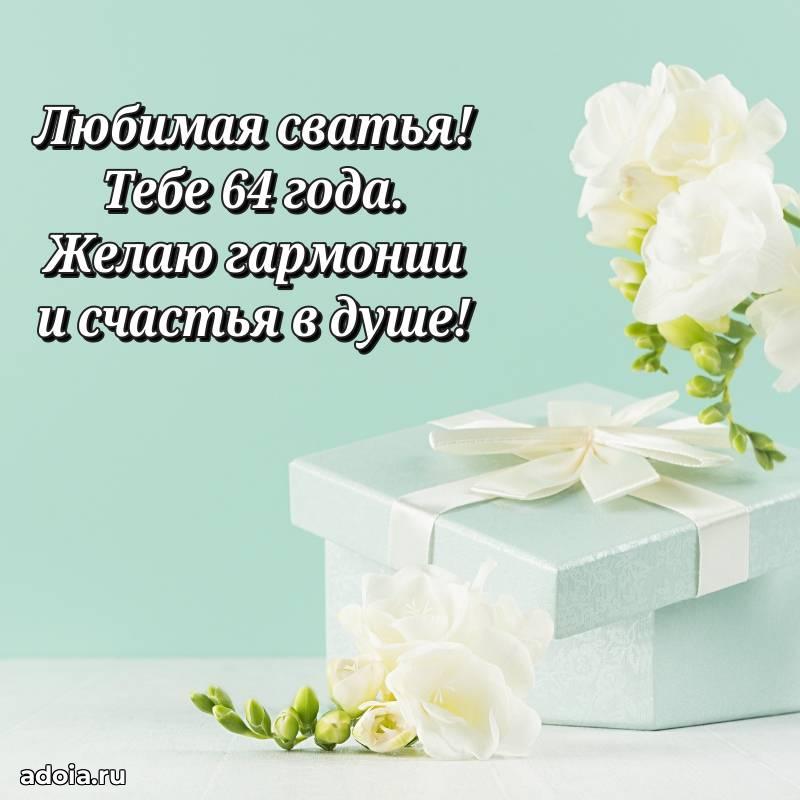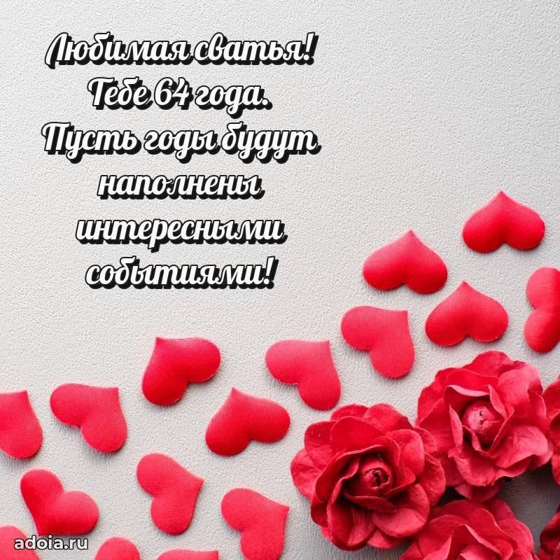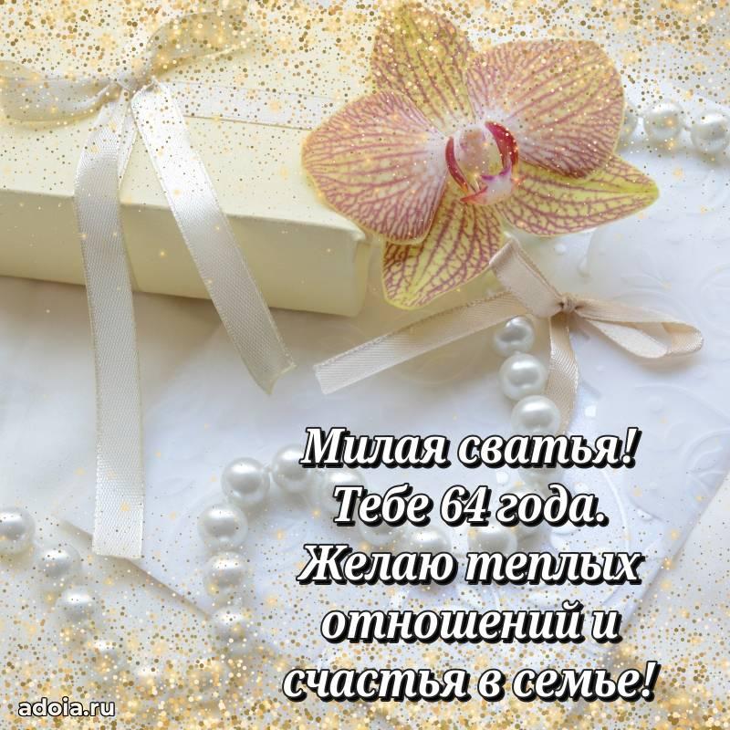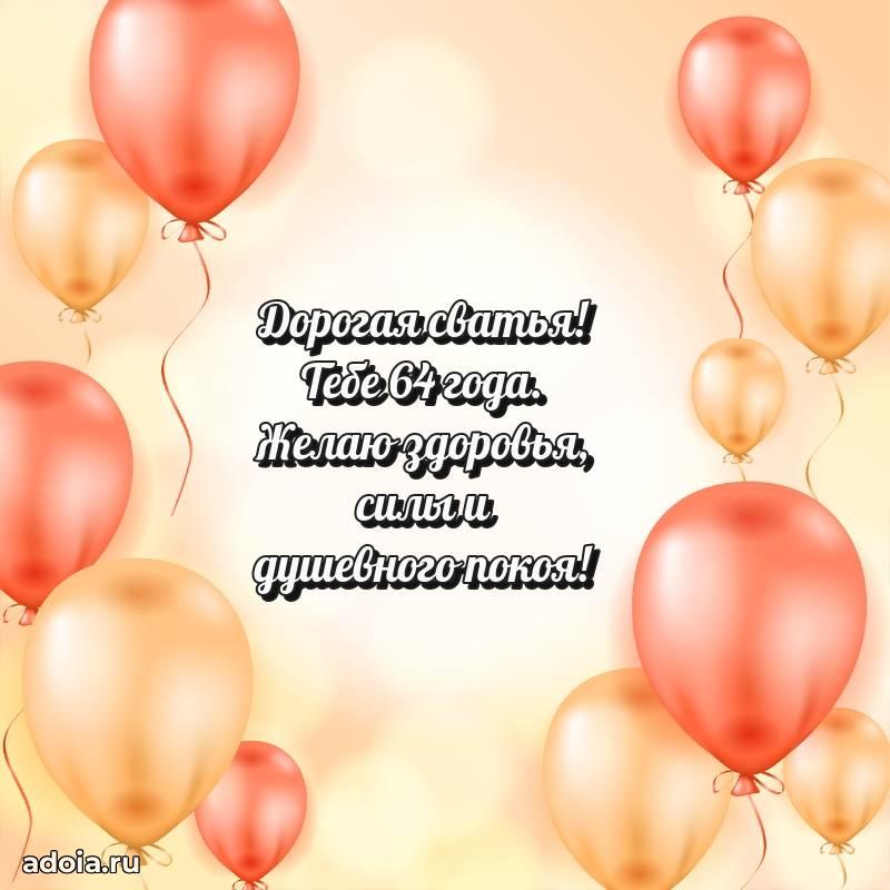 В поисках красивых и современных открыток? Вы попали по адресу! Здесь вы найдете картинки с днем рождения Сватье на 64 года! Все картинки в высоком качестве, которые можно скачать или отправить через WhatsApp бесплатно. Также вы найдете много прикольных и мерцающих гифок и анимаций, которые поднимут настроение! Все открытки содержат поздравления в стихах и прозе.