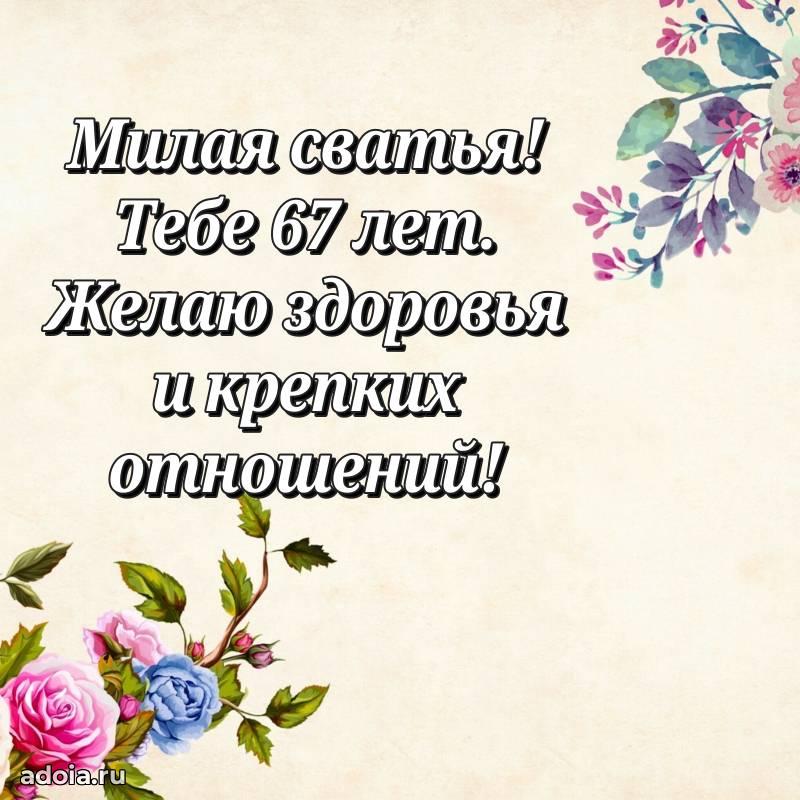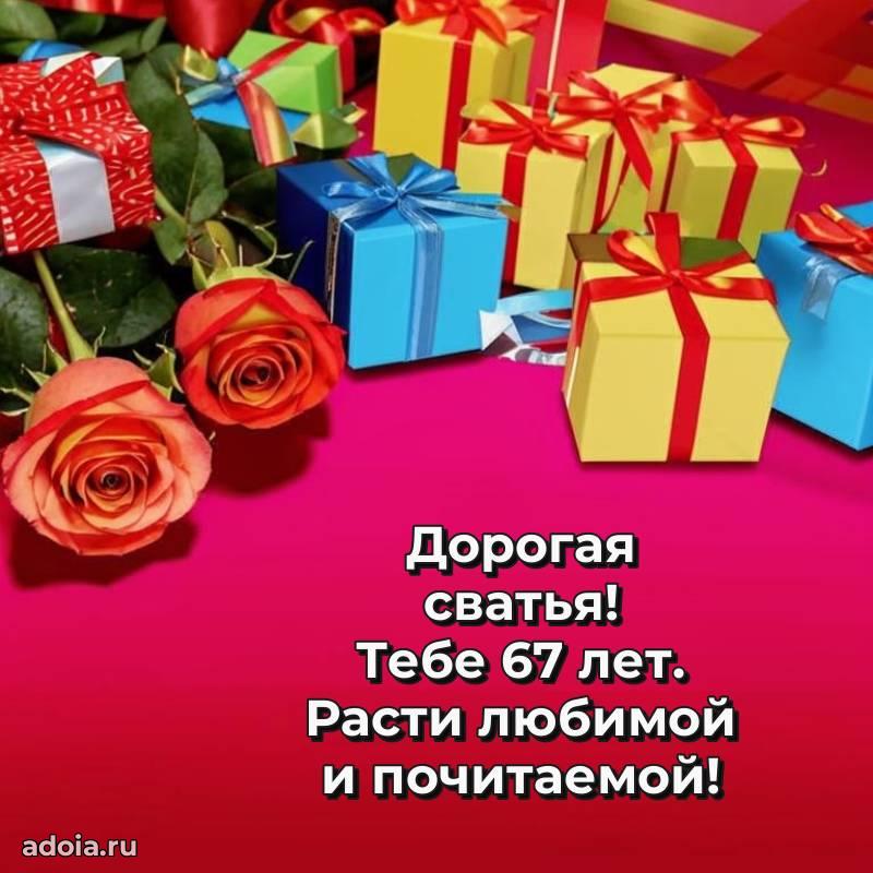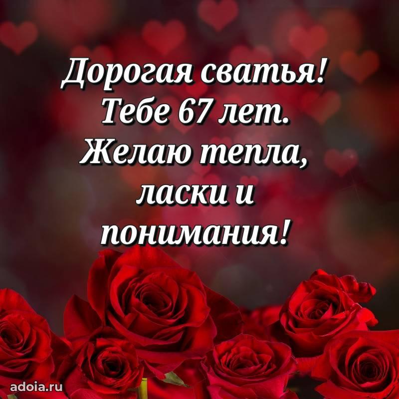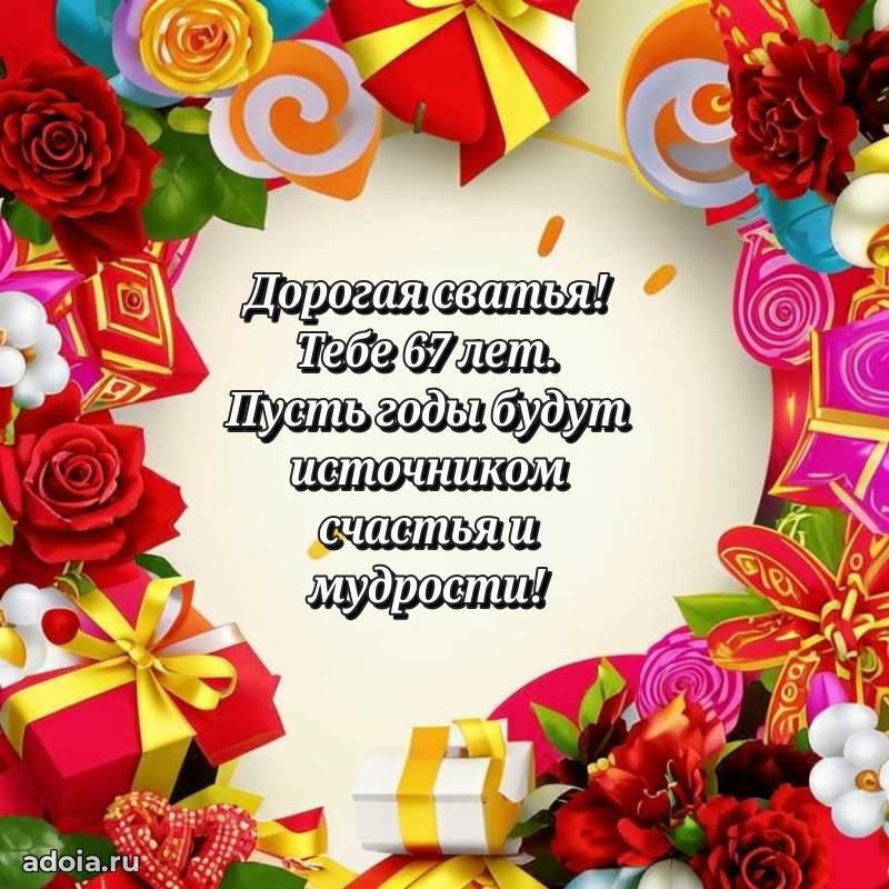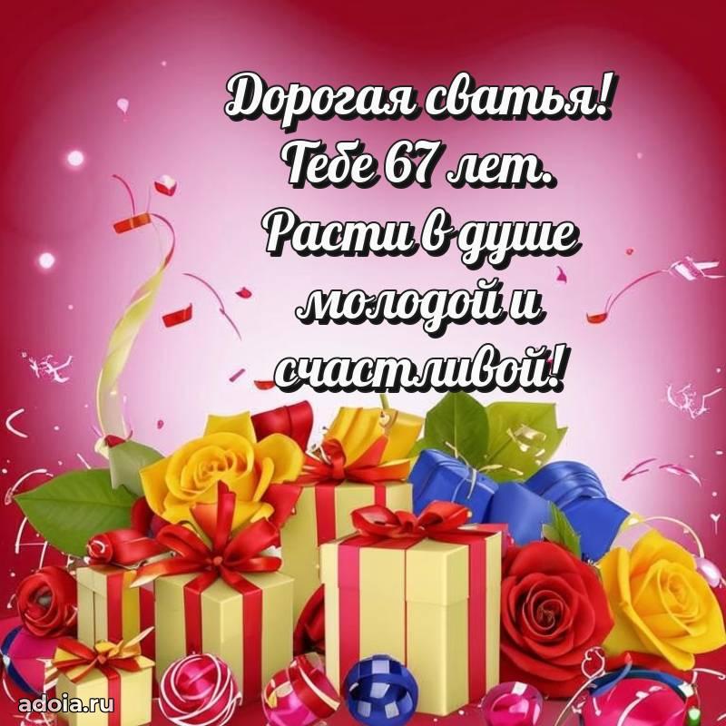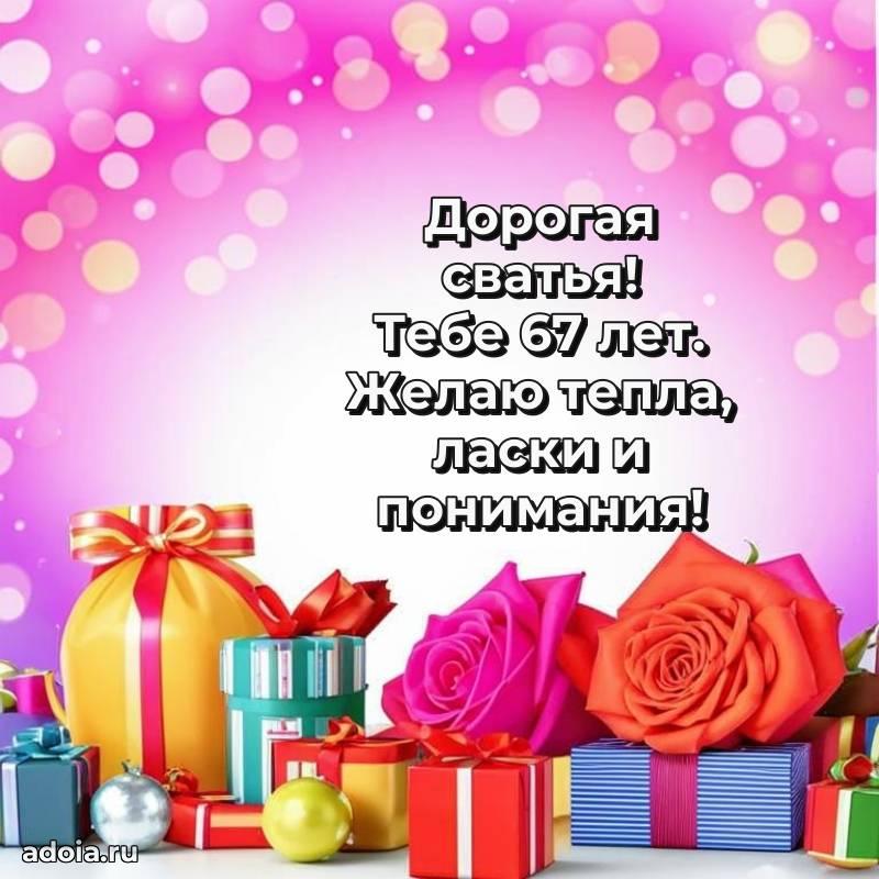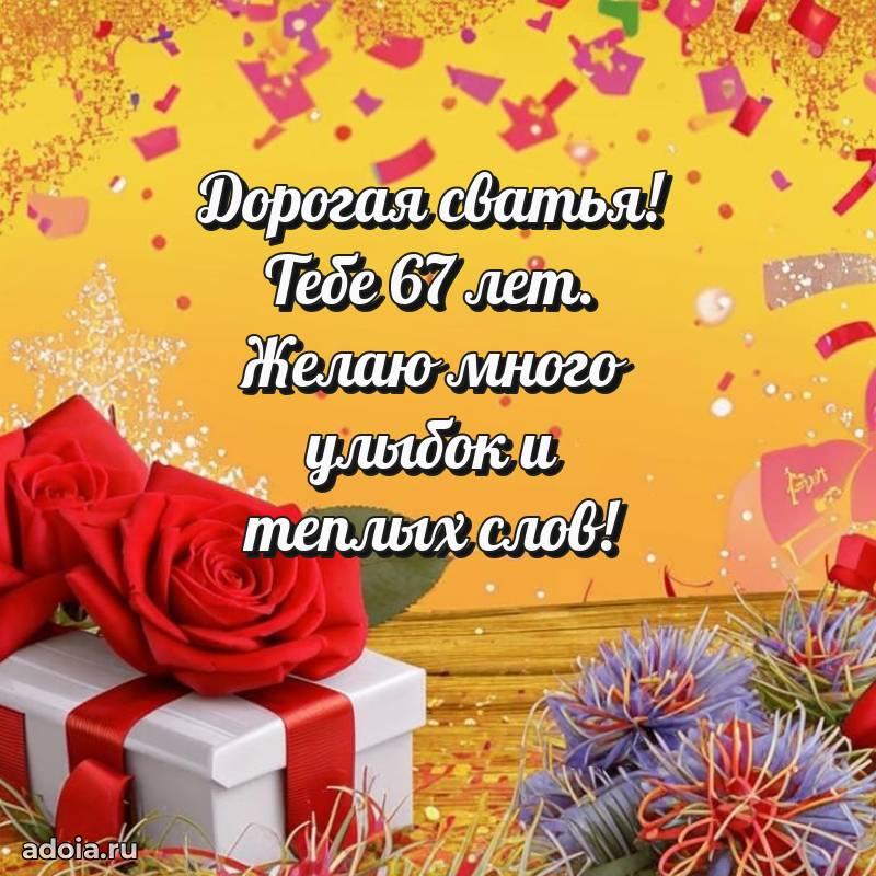 В поисках красивых и современных открыток? Вы попали по адресу! Здесь вы найдете картинки с днем рождения Сватье на 67 лет! Все картинки в высоком качестве, которые можно скачать или отправить через WhatsApp бесплатно. Также вы найдете много прикольных и мерцающих гифок и анимаций, которые поднимут настроение! Все открытки содержат поздравления в стихах и прозе.