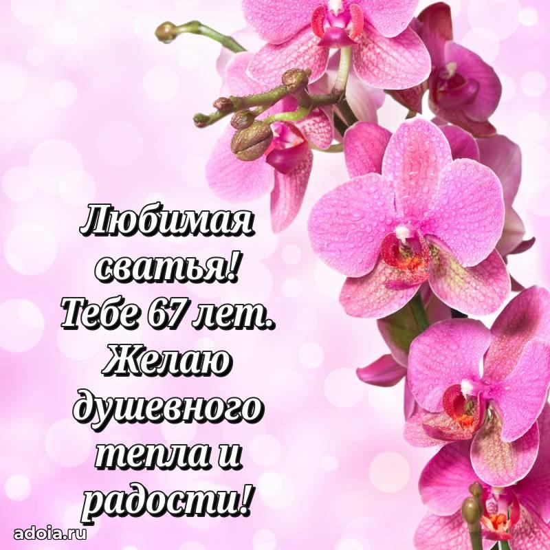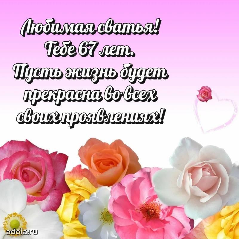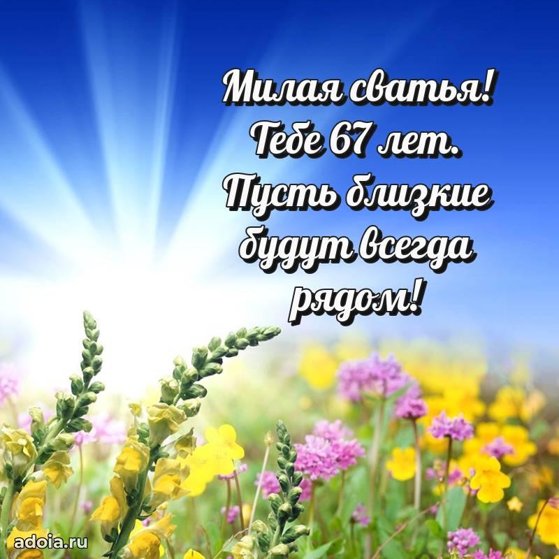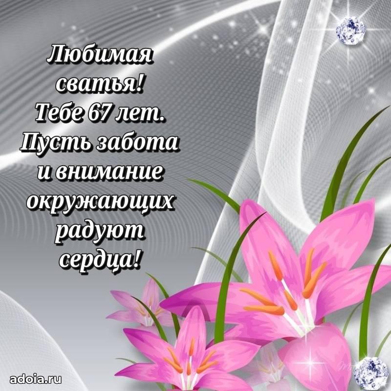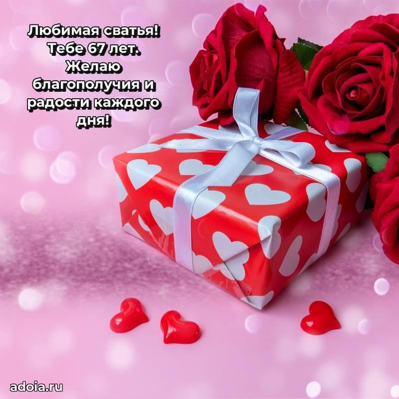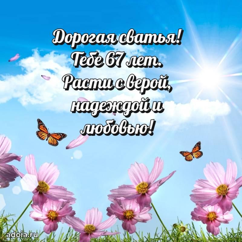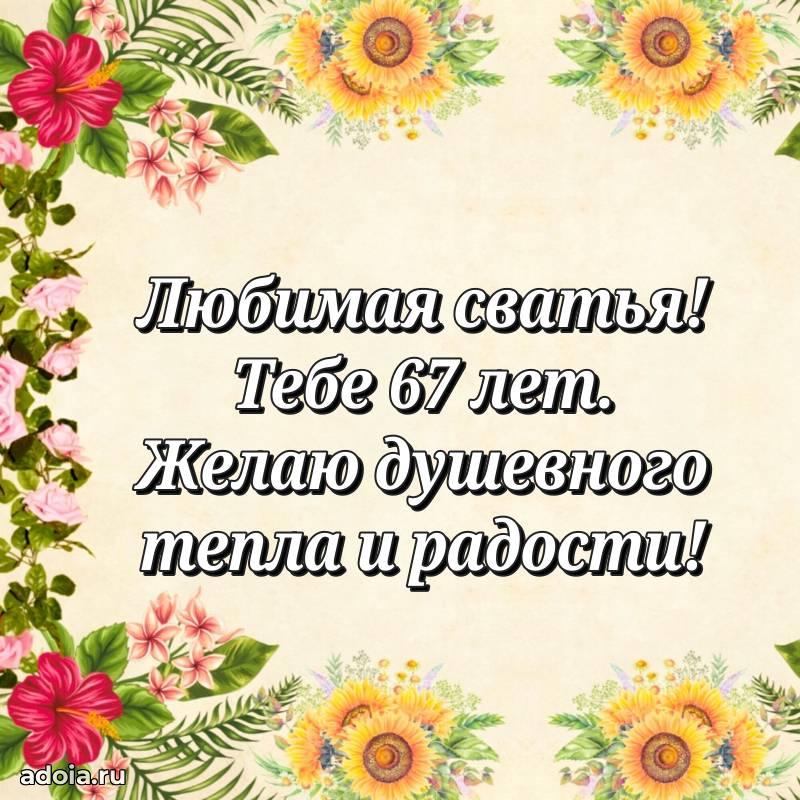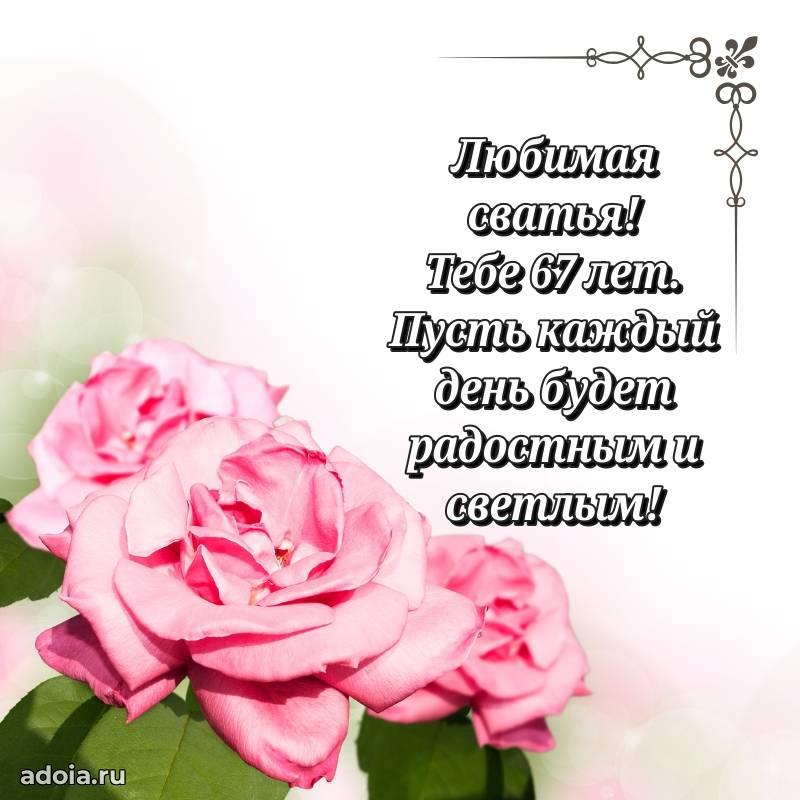 В поисках красивых и современных открыток? Вы попали по адресу! Здесь вы найдете картинки с днем рождения Сватье на 67 лет! Все картинки в высоком качестве, которые можно скачать или отправить через WhatsApp бесплатно. Также вы найдете много прикольных и мерцающих гифок и анимаций, которые поднимут настроение! Все открытки содержат поздравления в стихах и прозе.