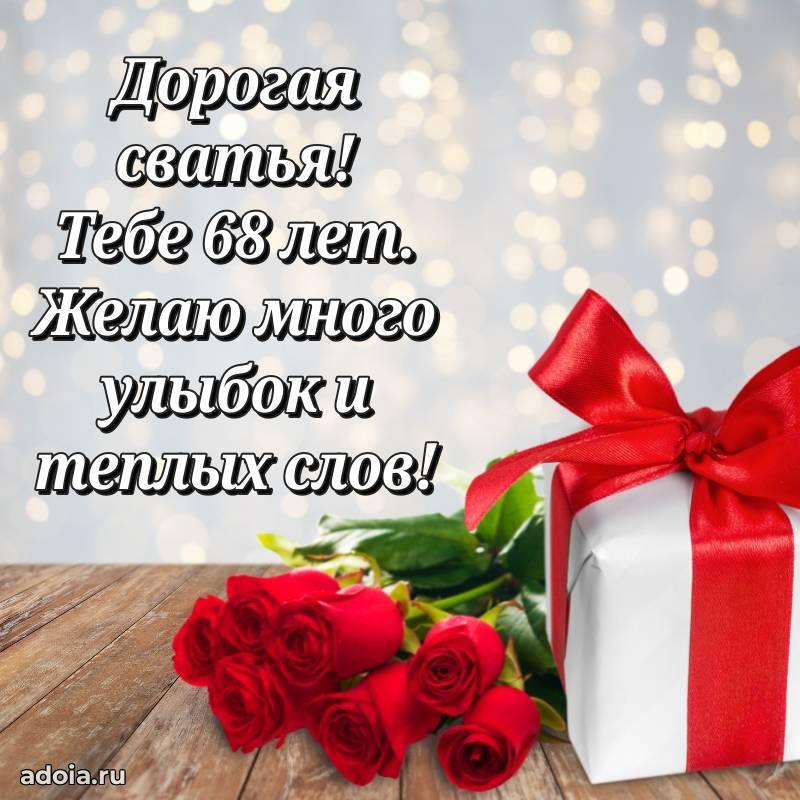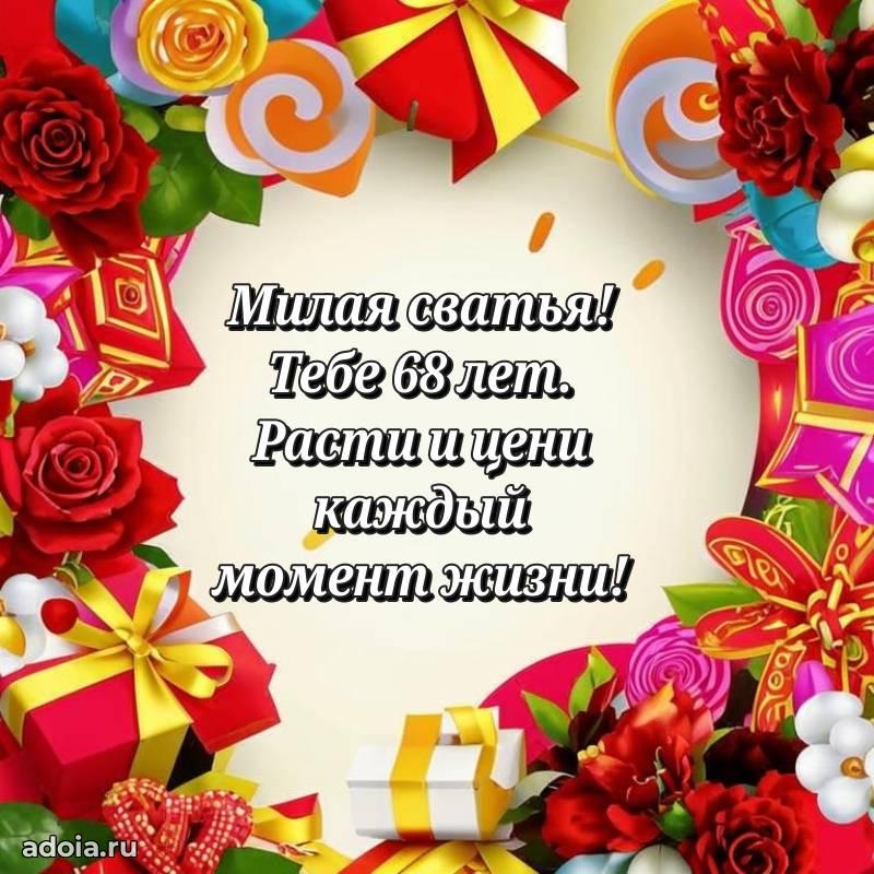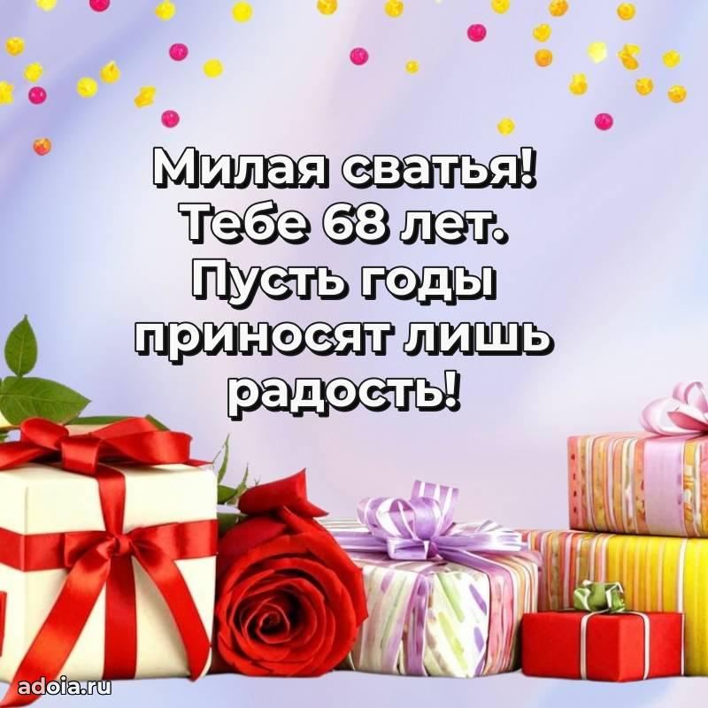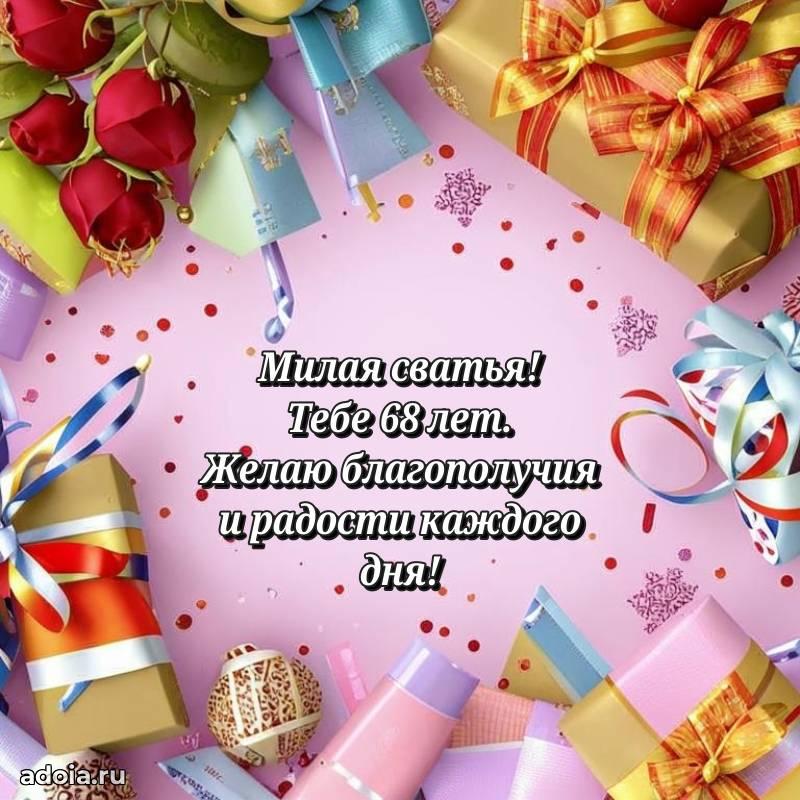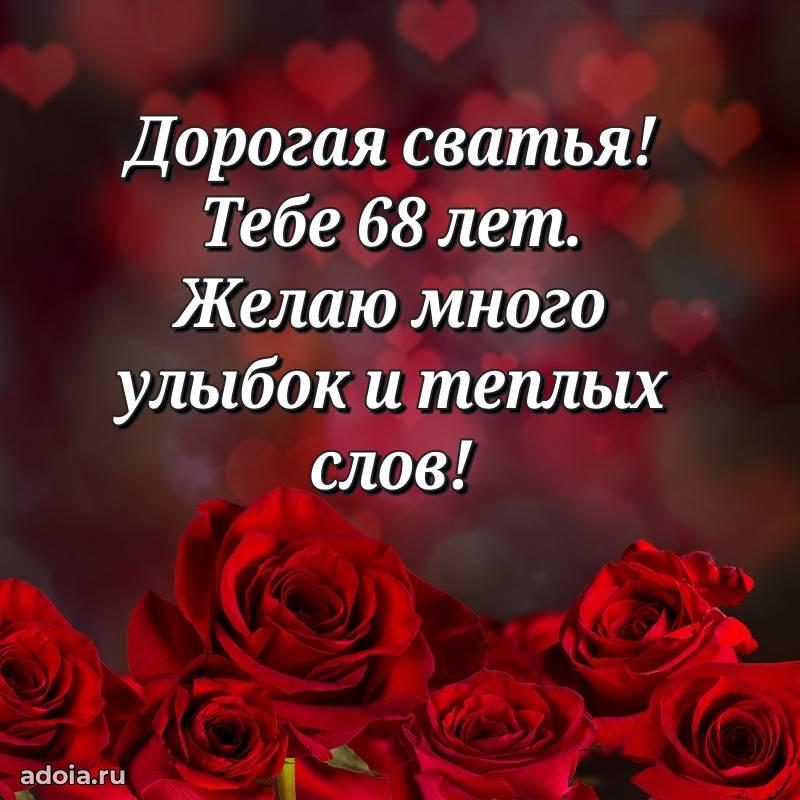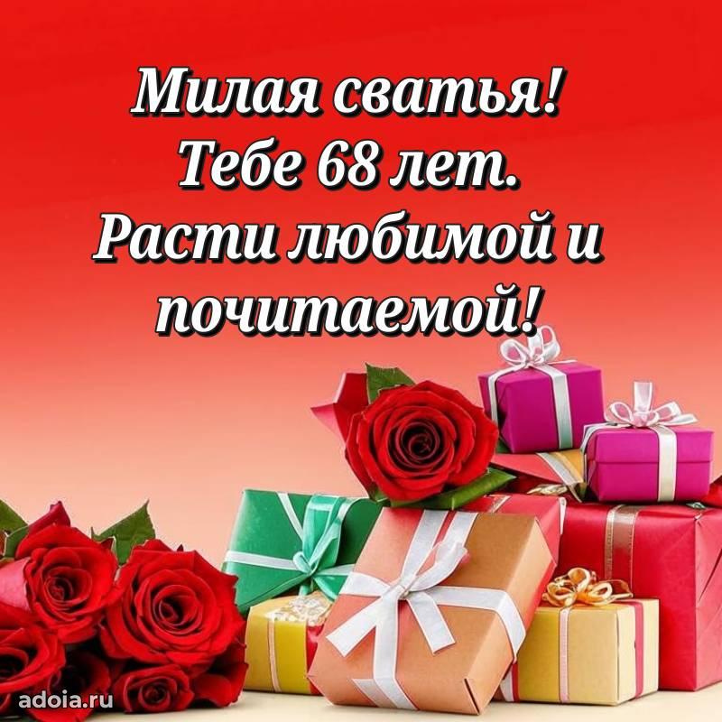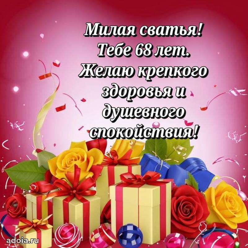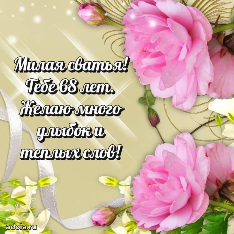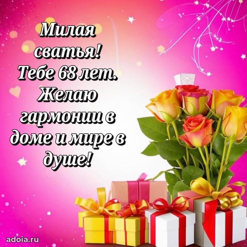 В поисках красивых и современных открыток? Вы попали по адресу! Здесь вы найдете картинки с днем рождения Сватье на 68 лет! Все картинки в высоком качестве, которые можно скачать или отправить через WhatsApp бесплатно. Также вы найдете много прикольных и мерцающих гифок и анимаций, которые поднимут настроение! Все открытки содержат поздравления в стихах и прозе.