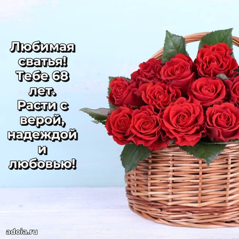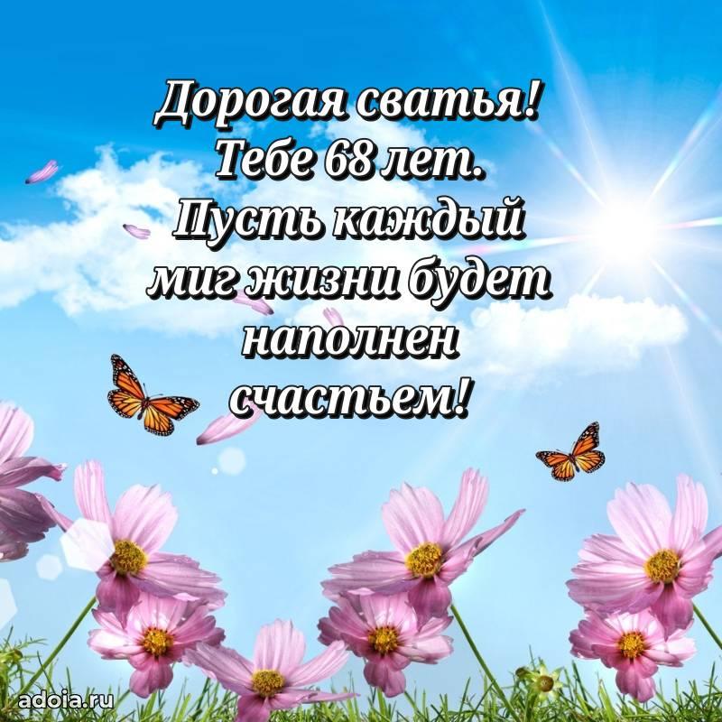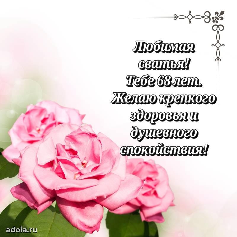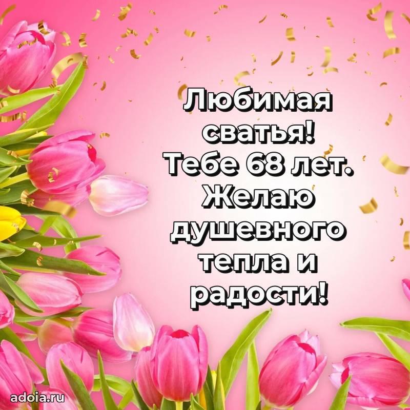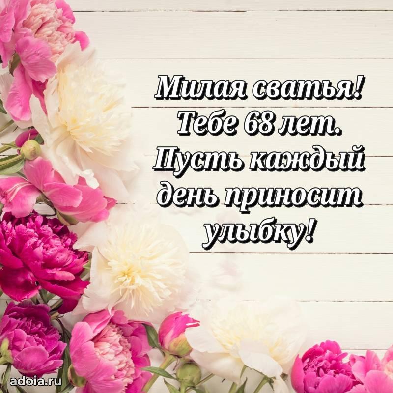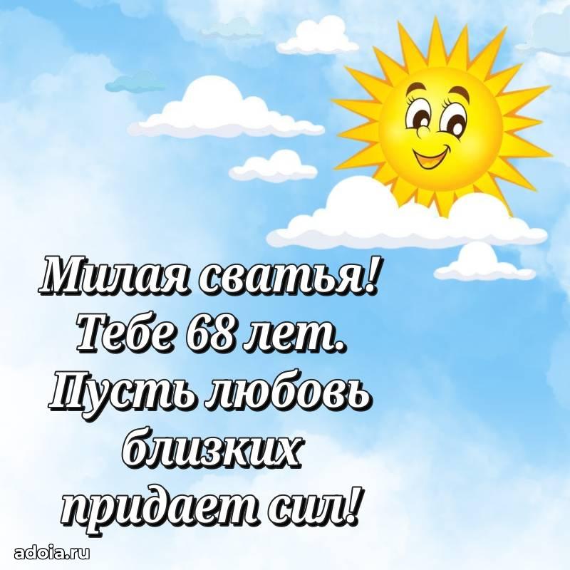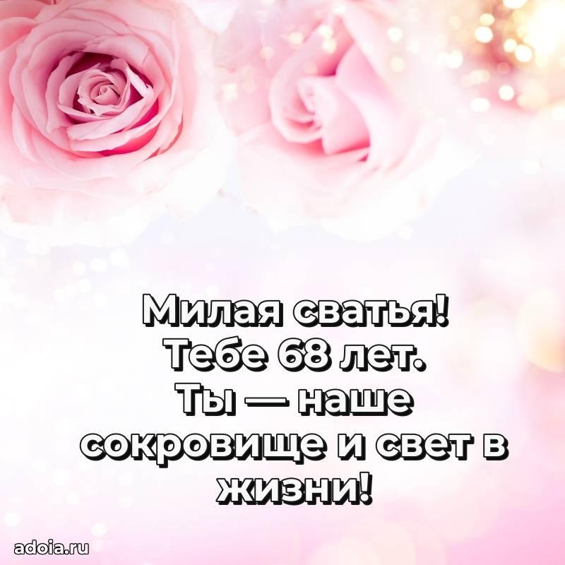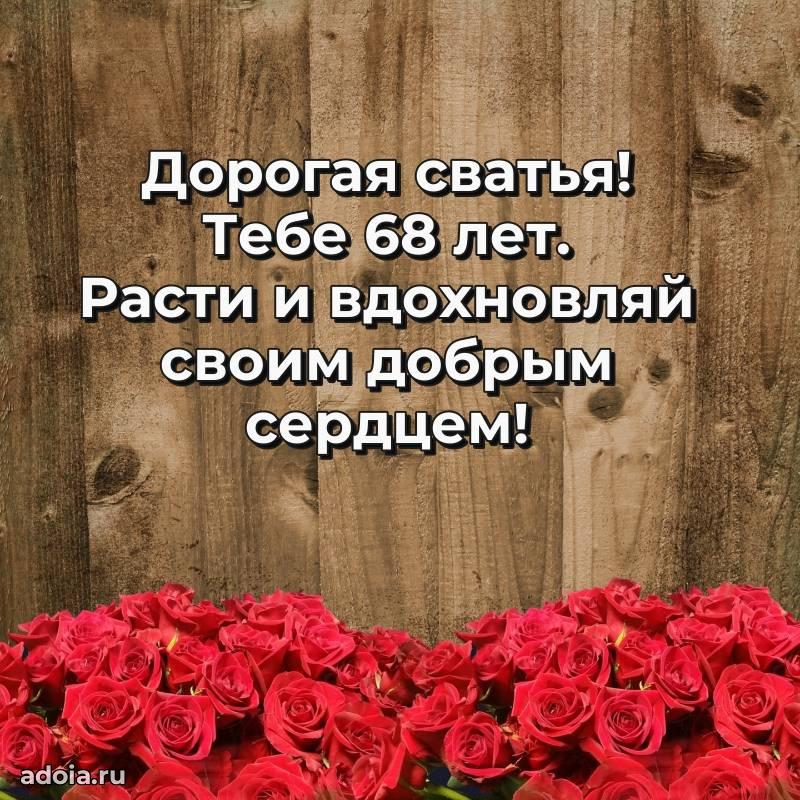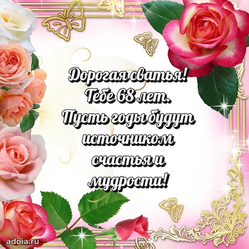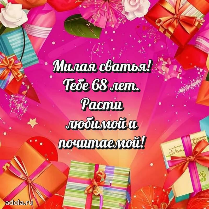 В поисках красивых и современных открыток? Вы попали по адресу! Здесь вы найдете картинки с днем рождения Сватье на 68 лет! Все картинки в высоком качестве, которые можно скачать или отправить через WhatsApp бесплатно. Также вы найдете много прикольных и мерцающих гифок и анимаций, которые поднимут настроение! Все открытки содержат поздравления в стихах и прозе.