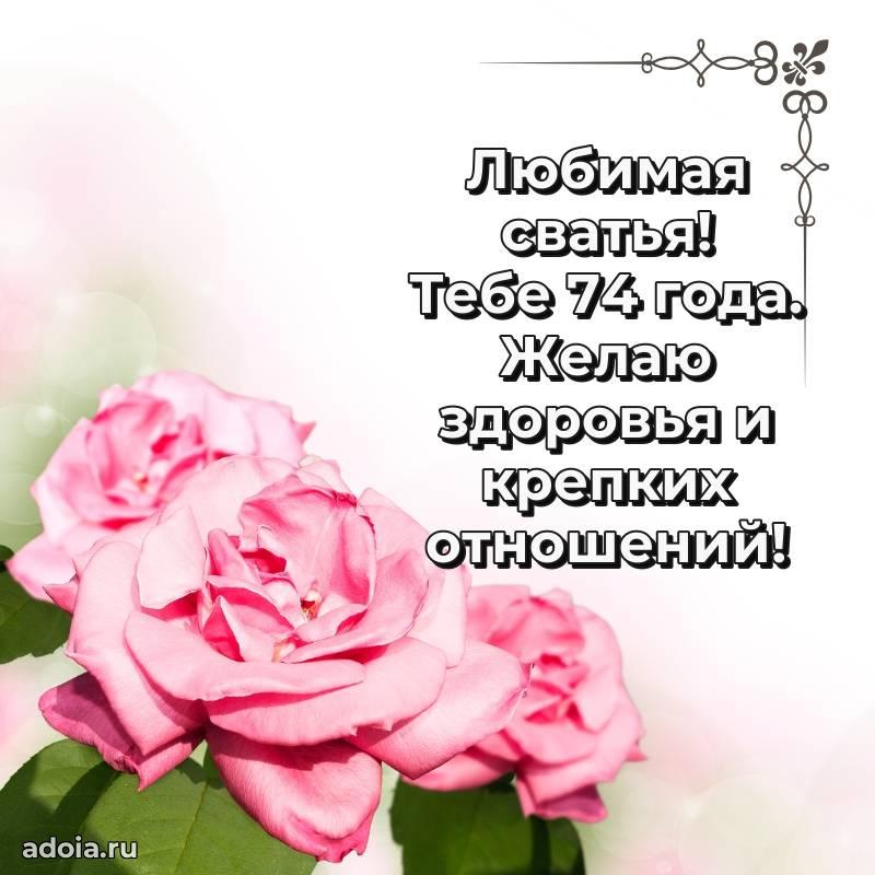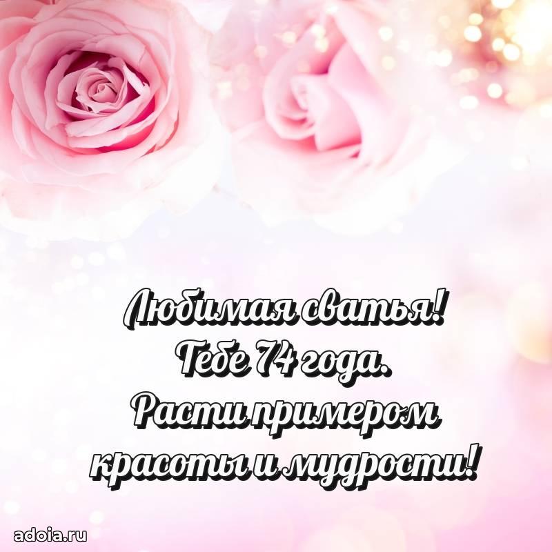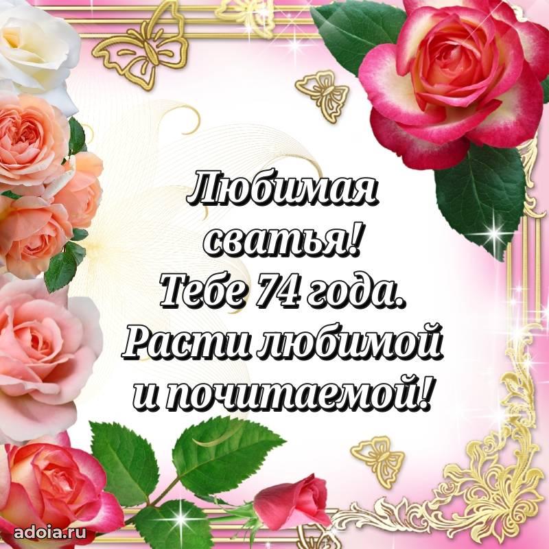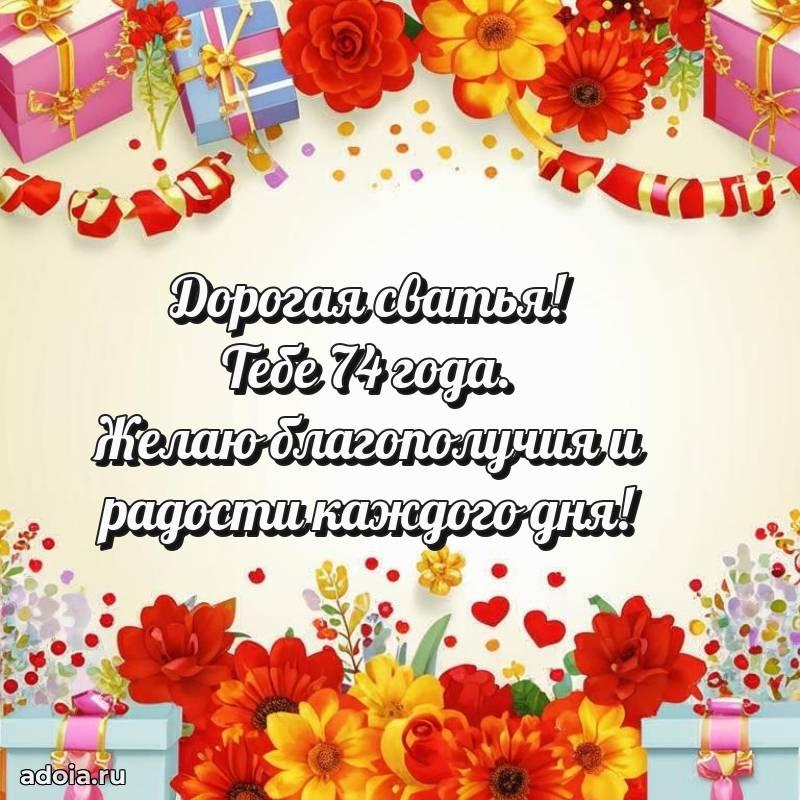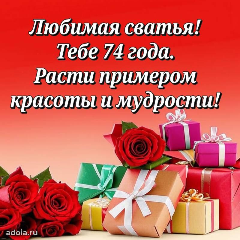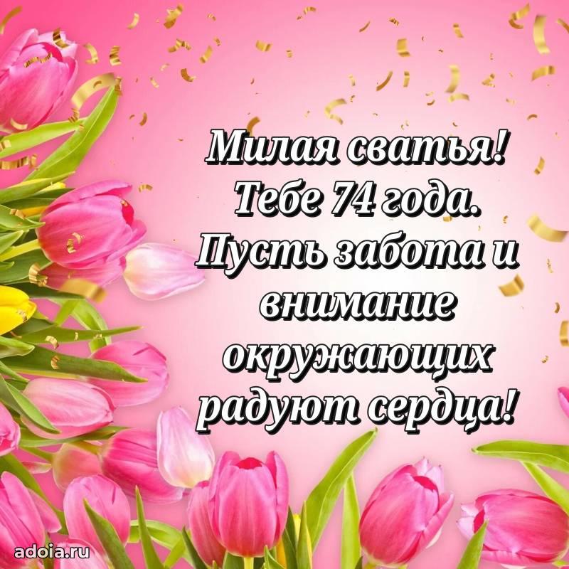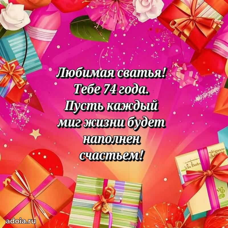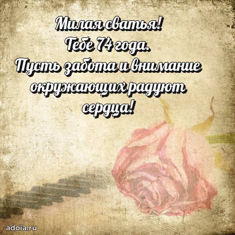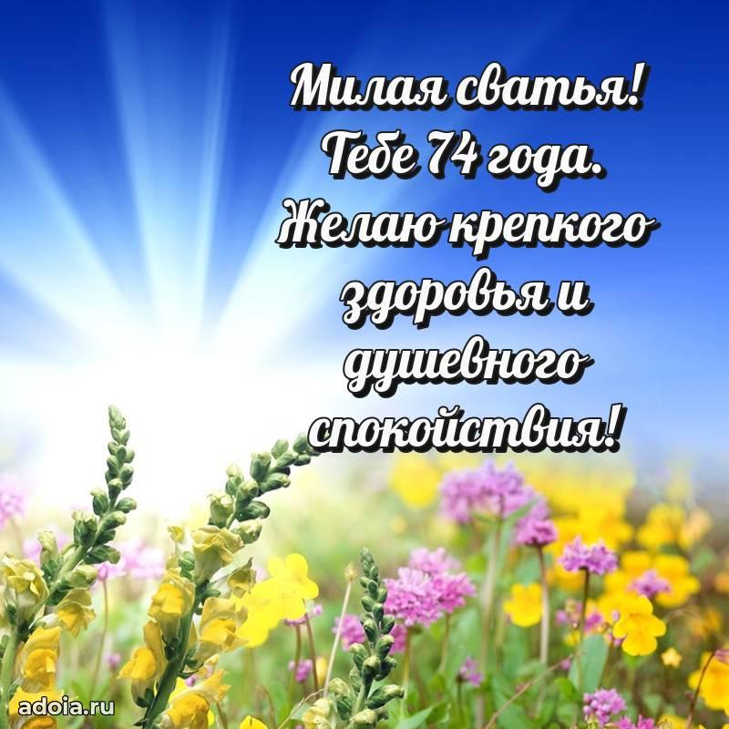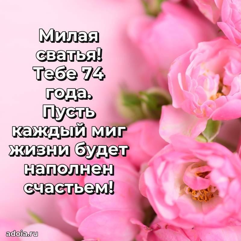 В поисках красивых и современных открыток? Вы попали по адресу! Здесь вы найдете картинки с днем рождения Сватье на 74 года! Все картинки в высоком качестве, которые можно скачать или отправить через WhatsApp бесплатно. Также вы найдете много прикольных и мерцающих гифок и анимаций, которые поднимут настроение! Все открытки содержат поздравления в стихах и прозе.
