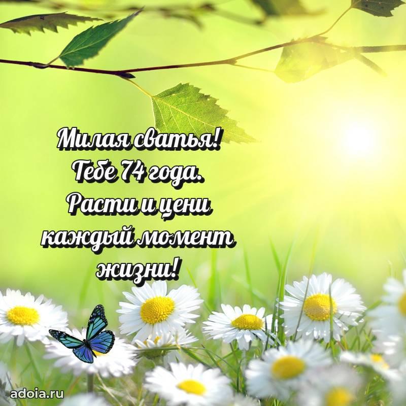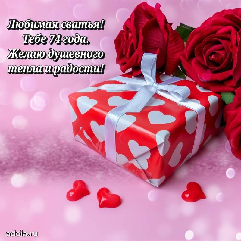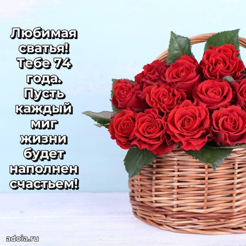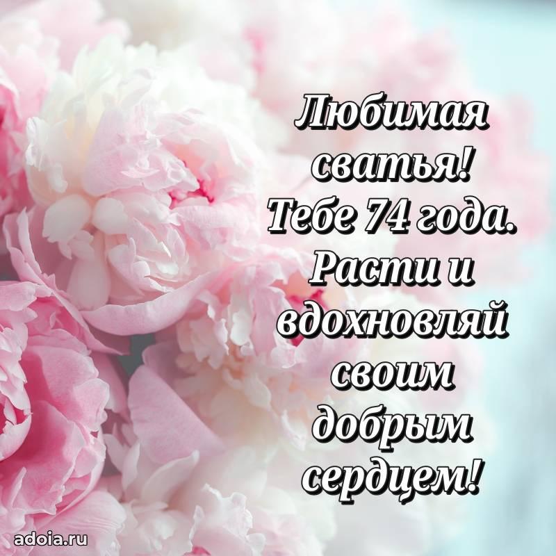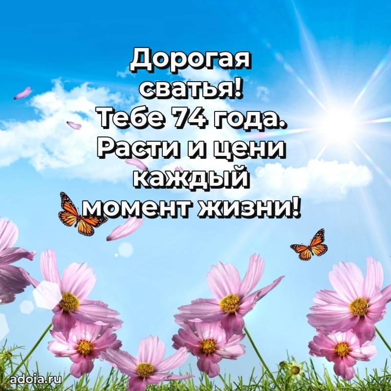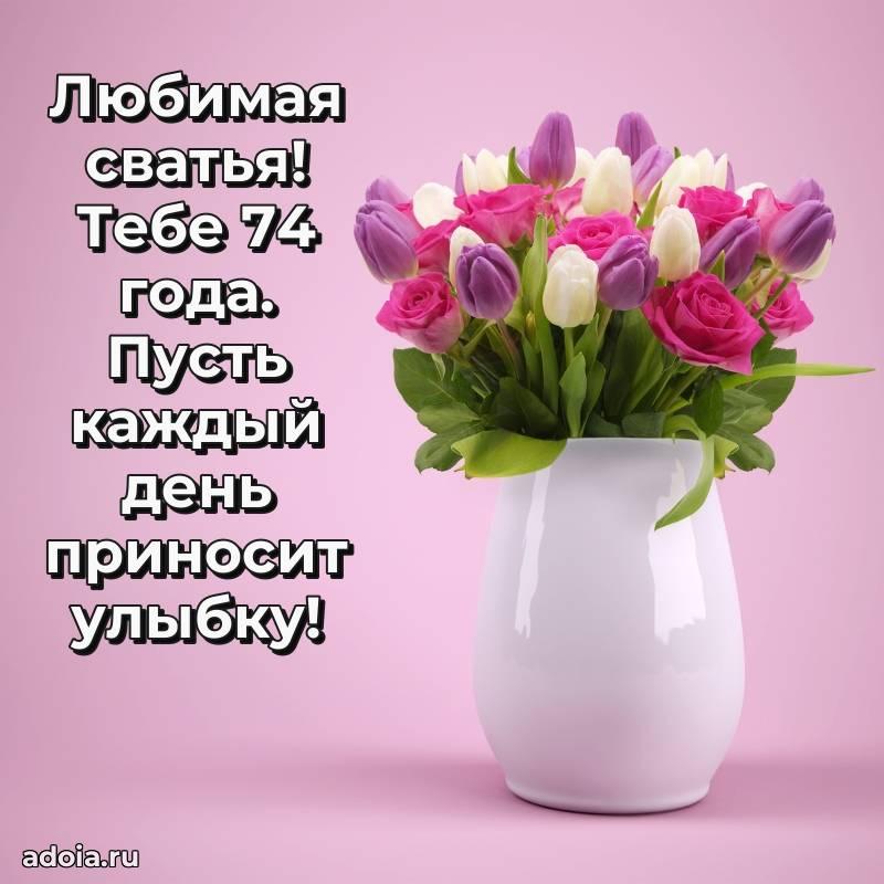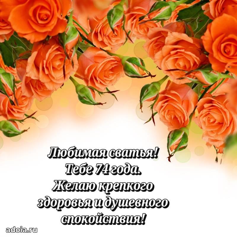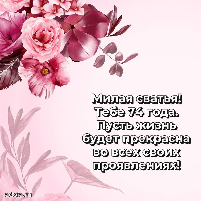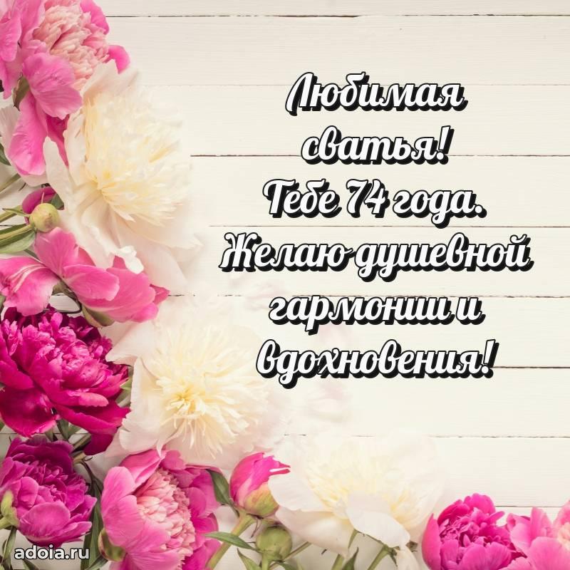 В поисках красивых и современных открыток? Вы попали по адресу! Здесь вы найдете картинки с днем рождения Сватье на 74 года! Все картинки в высоком качестве, которые можно скачать или отправить через WhatsApp бесплатно. Также вы найдете много прикольных и мерцающих гифок и анимаций, которые поднимут настроение! Все открытки содержат поздравления в стихах и прозе.