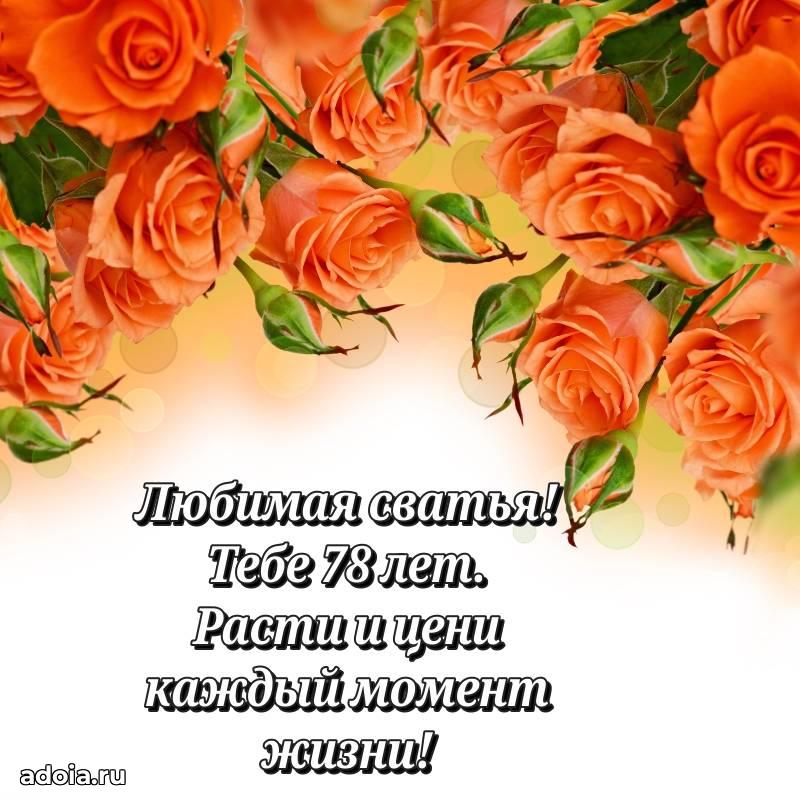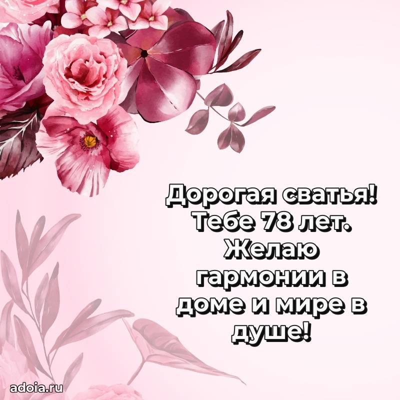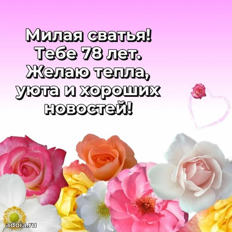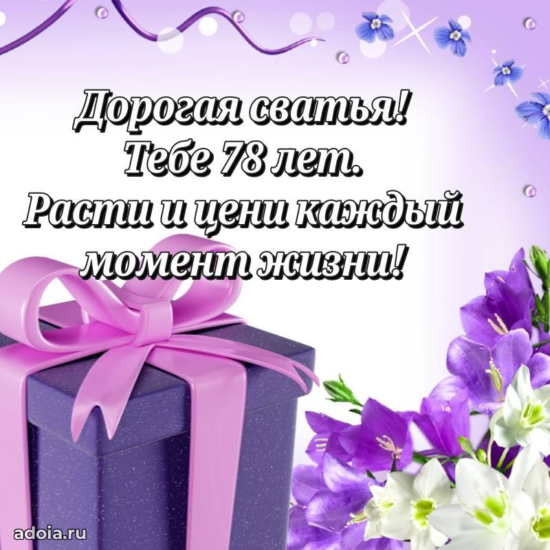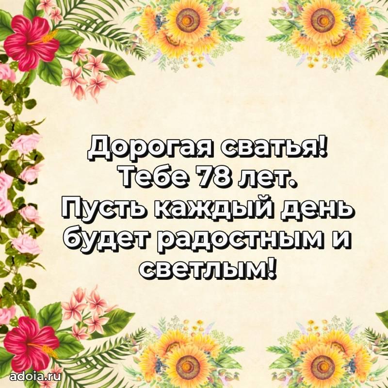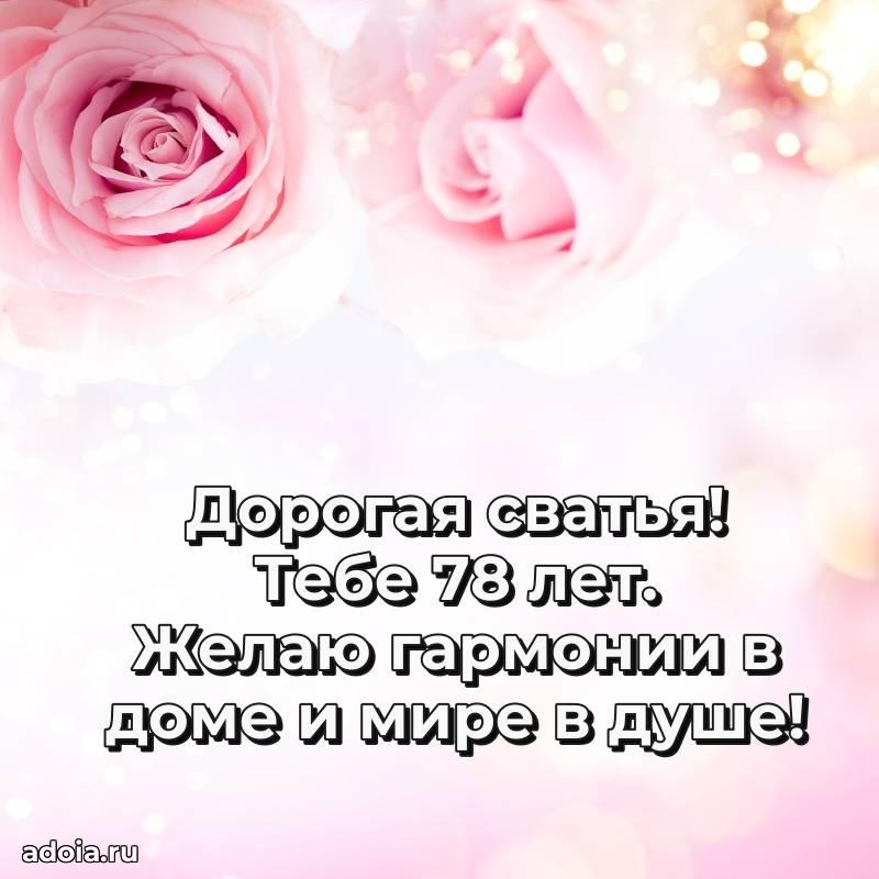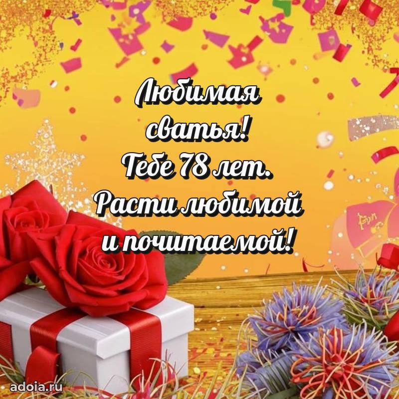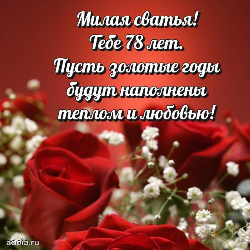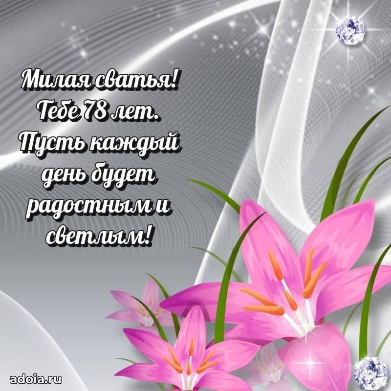В поисках красивых и современных открыток? Вы попали по адресу! Здесь вы найдете картинки с днем рождения Сватье на 78 лет! Все картинки в высоком качестве, которые можно скачать или отправить через WhatsApp бесплатно. Также вы найдете много прикольных и мерцающих гифок и анимаций, которые поднимут настроение! Все открытки содержат поздравления в стихах и прозе.