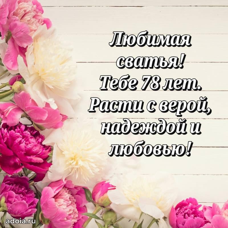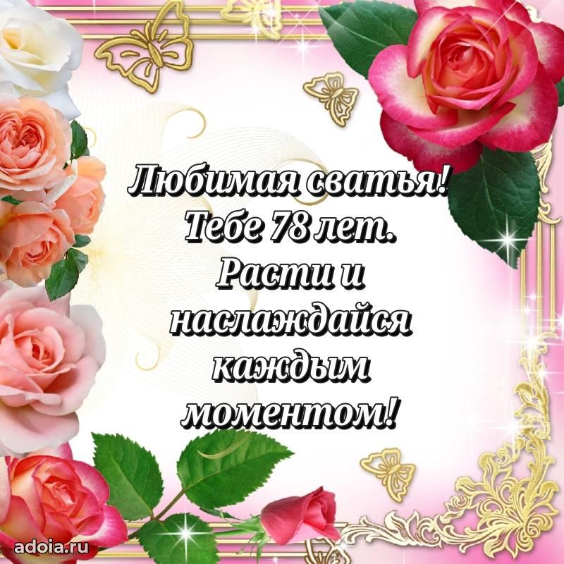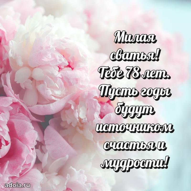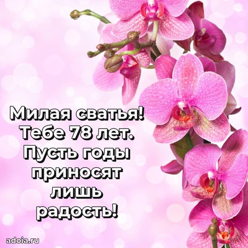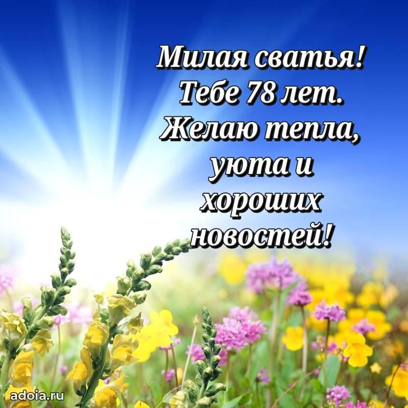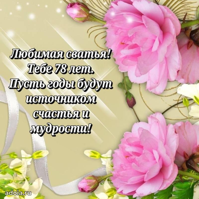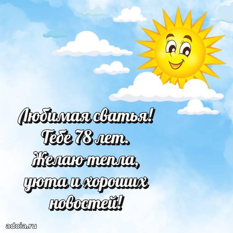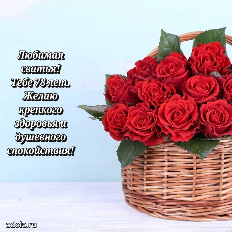 В поисках красивых и современных открыток? Вы попали по адресу! Здесь вы найдете картинки с днем рождения Сватье на 78 лет! Все картинки в высоком качестве, которые можно скачать или отправить через WhatsApp бесплатно. Также вы найдете много прикольных и мерцающих гифок и анимаций, которые поднимут настроение! Все открытки содержат поздравления в стихах и прозе.