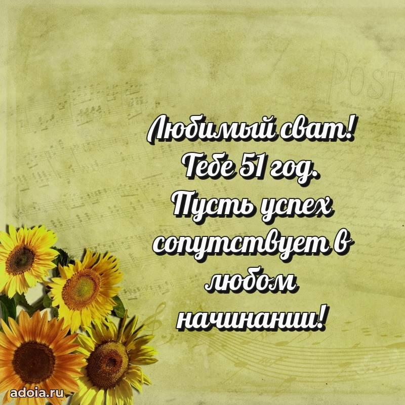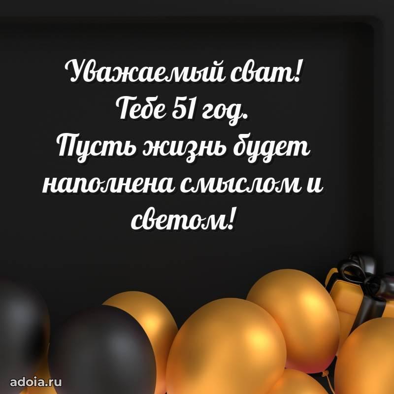 В поисках красивых и современных открыток? Вы попали по адресу! Здесь вы найдете картинки с днем рождения Свату на 51 год! Все картинки в высоком качестве, которые можно скачать или отправить через WhatsApp бесплатно. Также вы найдете много прикольных и мерцающих гифок и анимаций, которые поднимут настроение! Все открытки содержат поздравления в стихах и прозе.