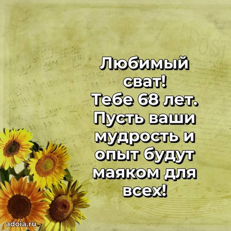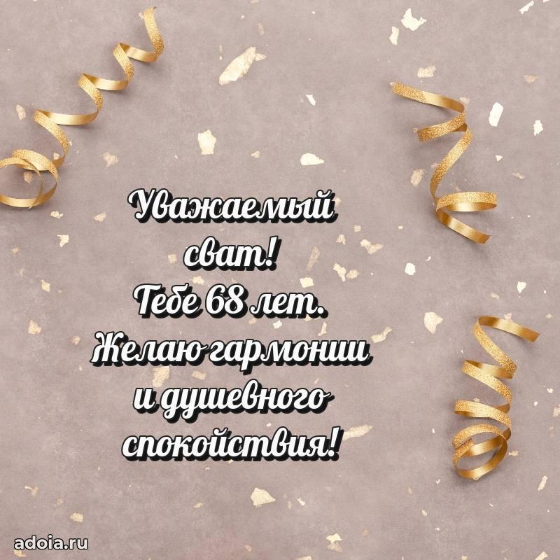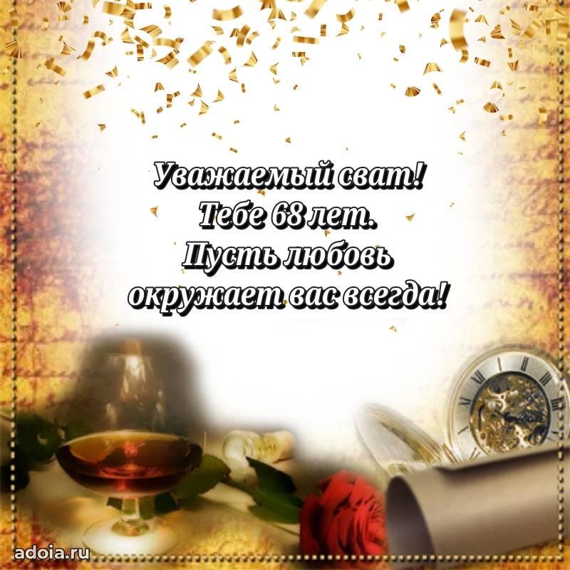 В поисках красивых и современных открыток? Вы попали по адресу! Здесь вы найдете картинки с днем рождения Свату на 68 лет! Все картинки в высоком качестве, которые можно скачать или отправить через WhatsApp бесплатно. Также вы найдете много прикольных и мерцающих гифок и анимаций, которые поднимут настроение! Все открытки содержат поздравления в стихах и прозе.