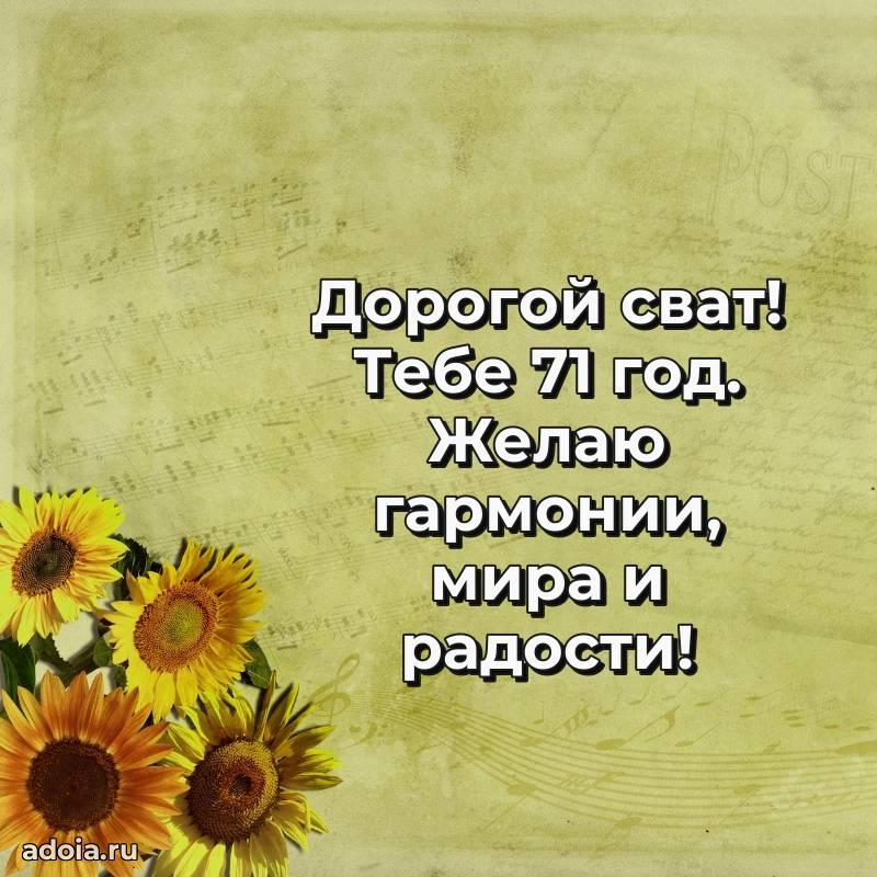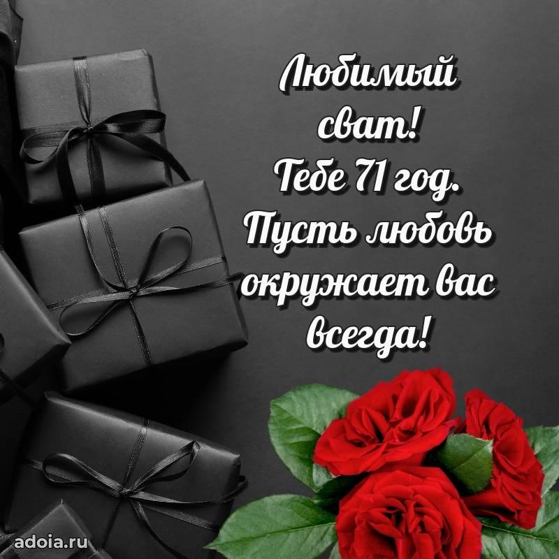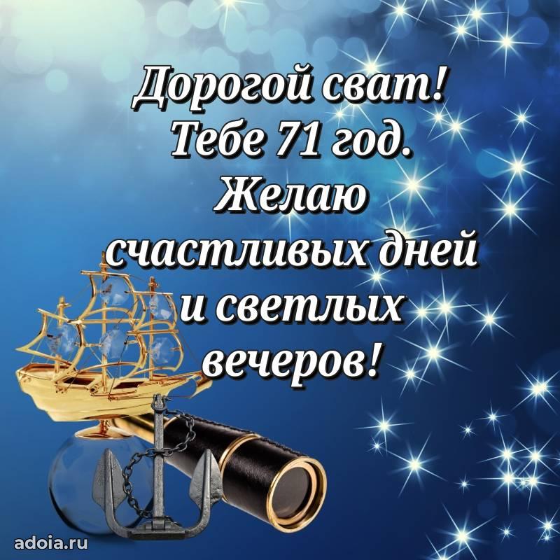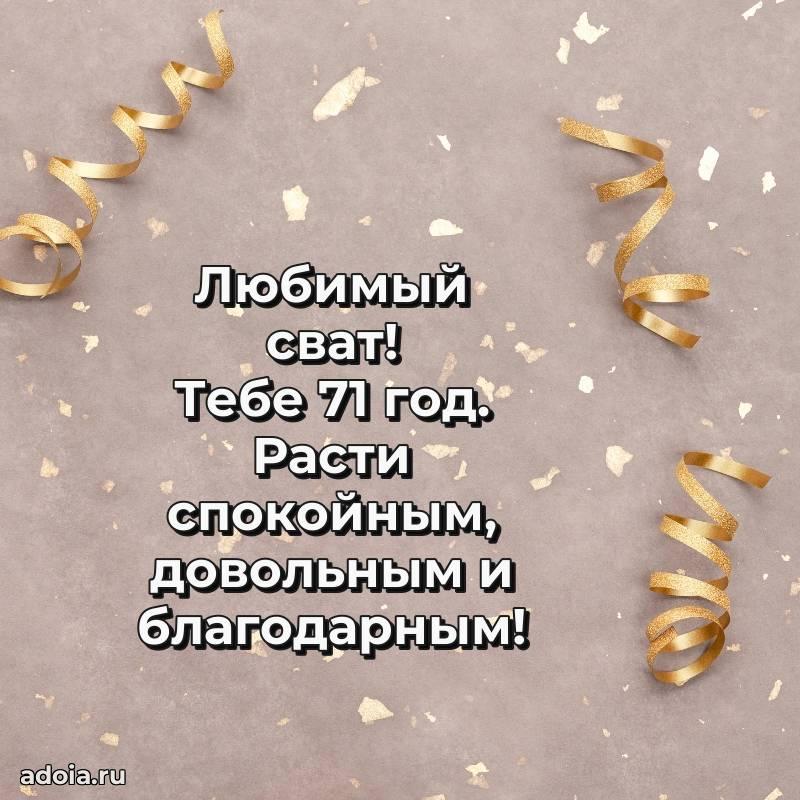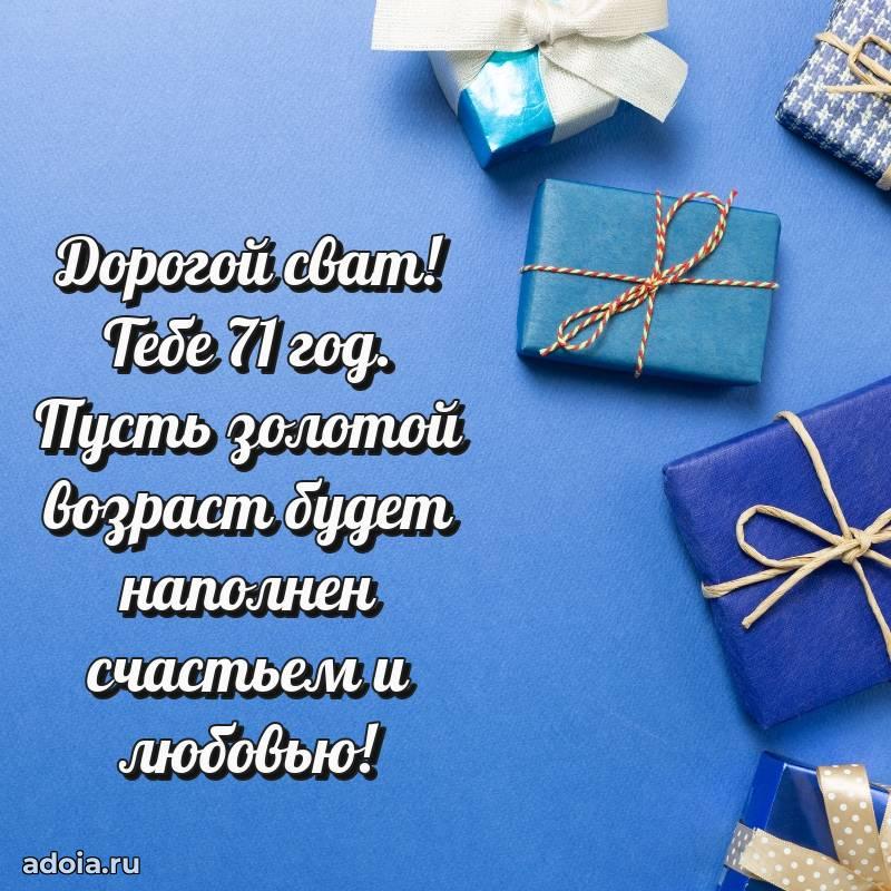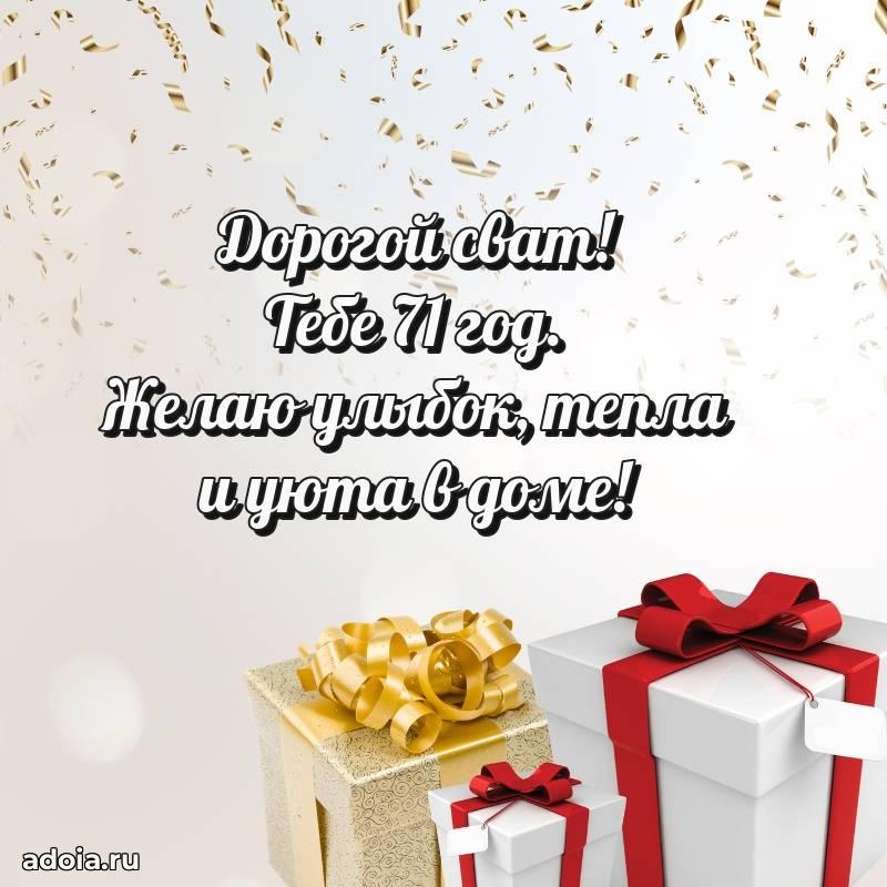 В поисках красивых и современных открыток? Вы попали по адресу! Здесь вы найдете картинки с днем рождения Свату на 71 год! Все картинки в высоком качестве, которые можно скачать или отправить через WhatsApp бесплатно. Также вы найдете много прикольных и мерцающих гифок и анимаций, которые поднимут настроение! Все открытки содержат поздравления в стихах и прозе.
