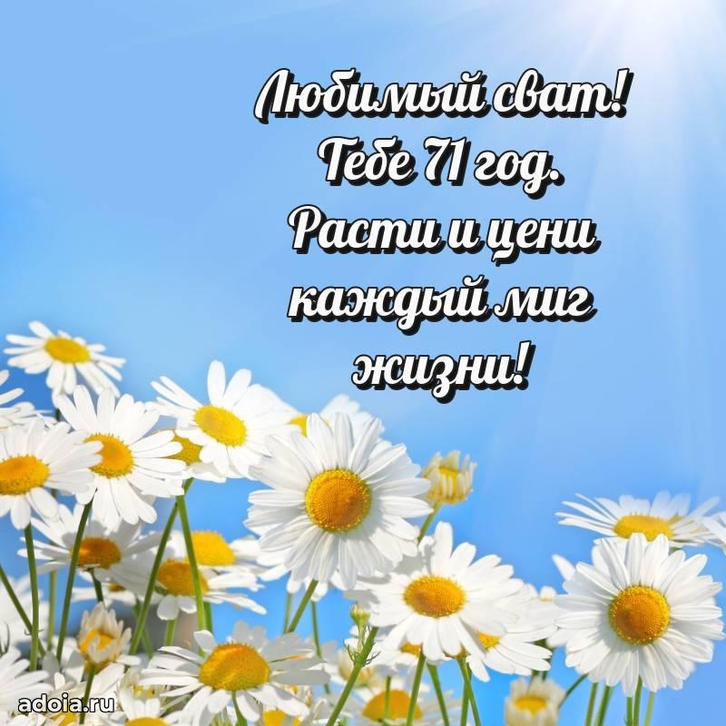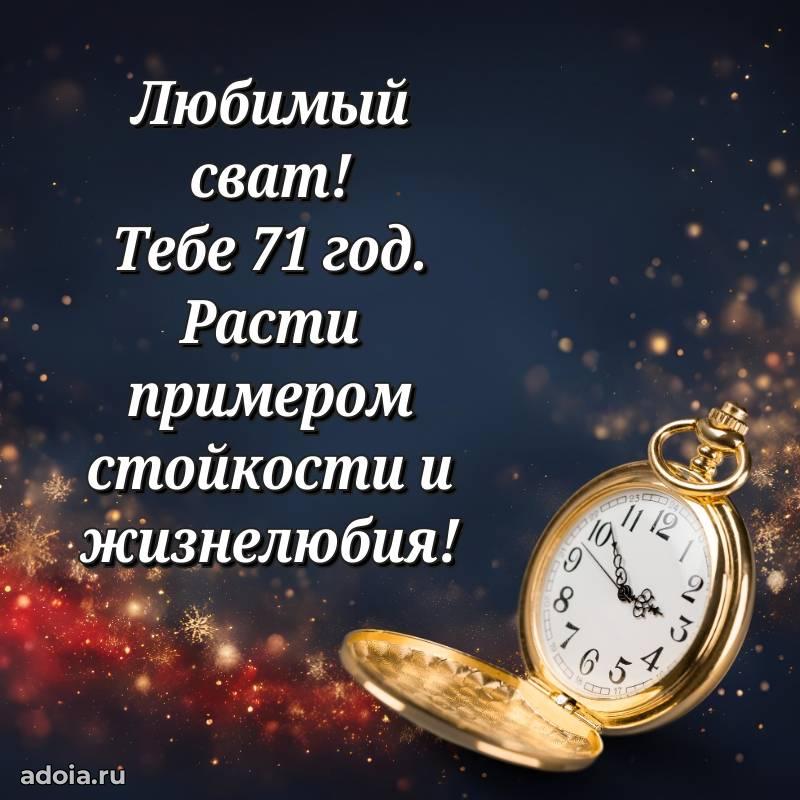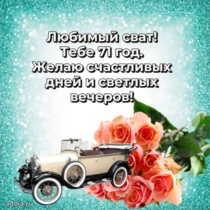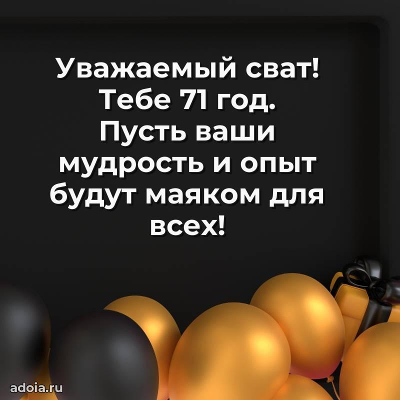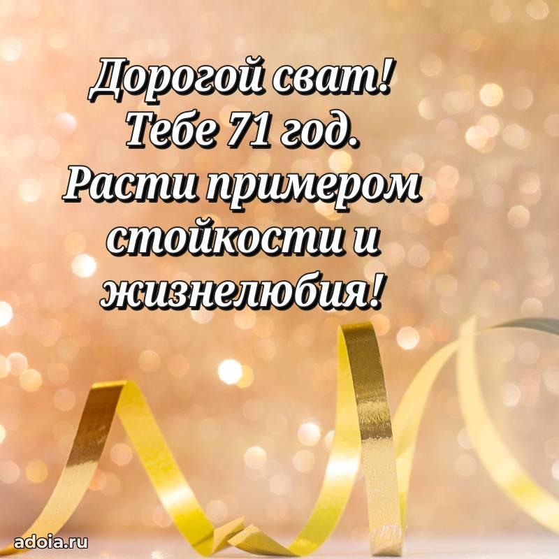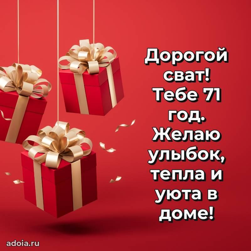 В поисках красивых и современных открыток? Вы попали по адресу! Здесь вы найдете картинки с днем рождения Свату на 71 год! Все картинки в высоком качестве, которые можно скачать или отправить через WhatsApp бесплатно. Также вы найдете много прикольных и мерцающих гифок и анимаций, которые поднимут настроение! Все открытки содержат поздравления в стихах и прозе.