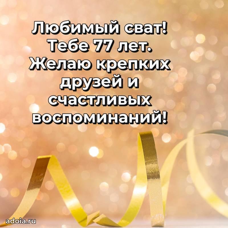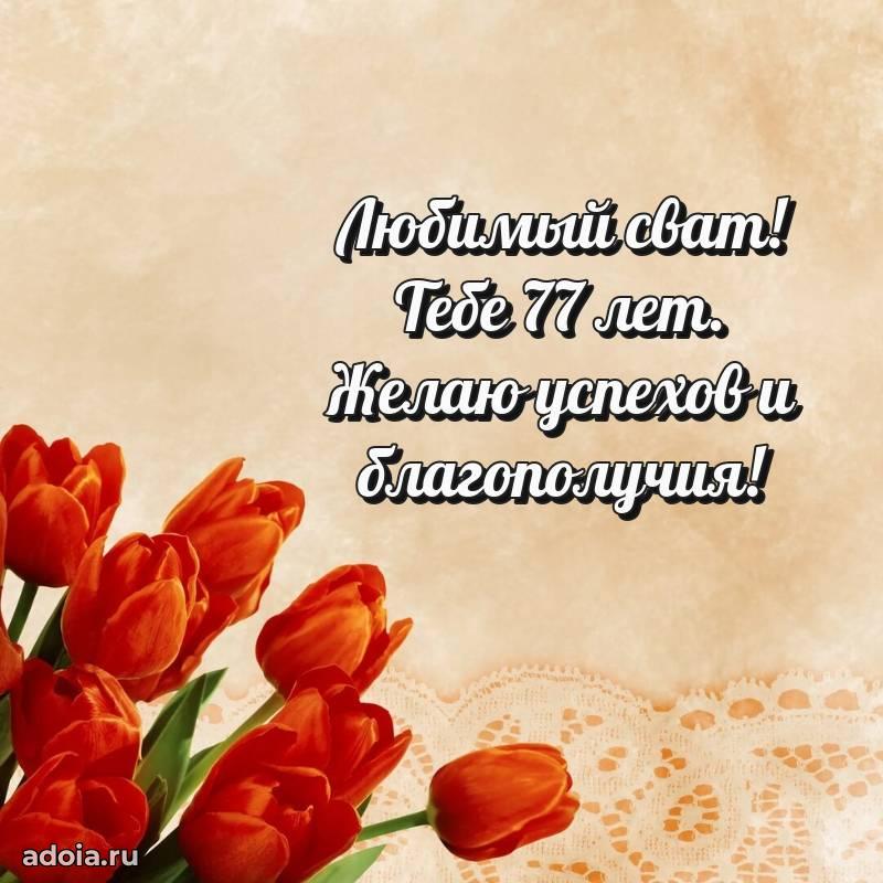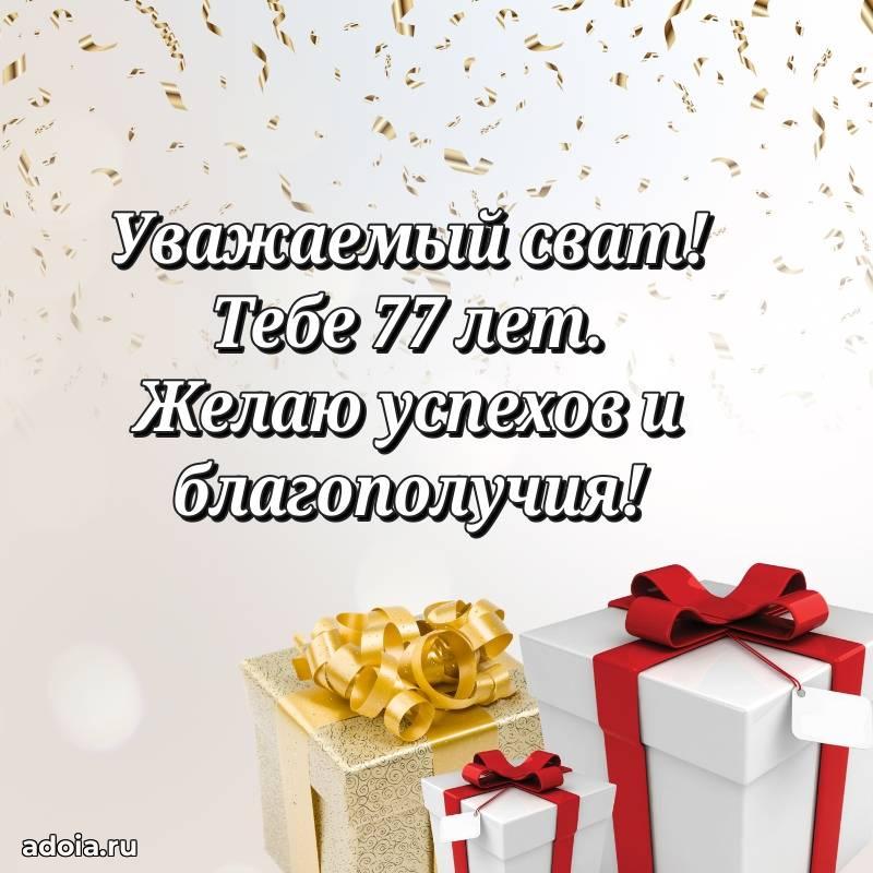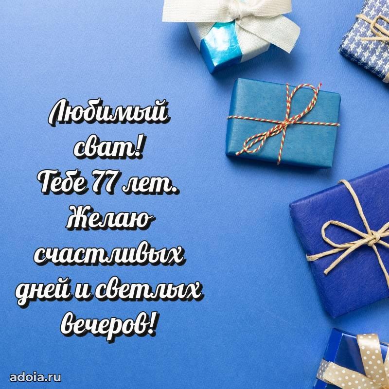 В поисках красивых и современных открыток? Вы попали по адресу! Здесь вы найдете картинки с днем рождения Свату на 77 лет! Все картинки в высоком качестве, которые можно скачать или отправить через WhatsApp бесплатно. Также вы найдете много прикольных и мерцающих гифок и анимаций, которые поднимут настроение! Все открытки содержат поздравления в стихах и прозе.