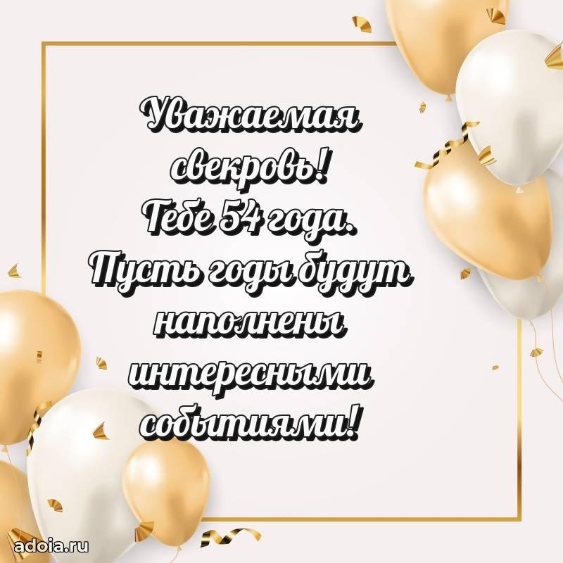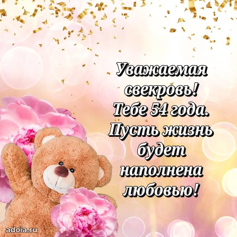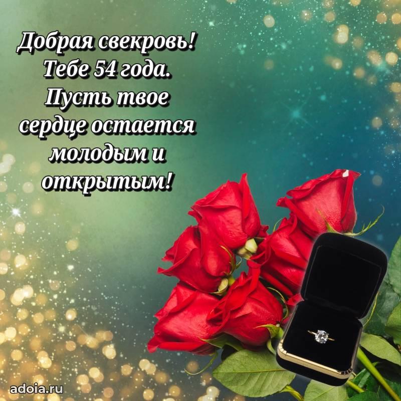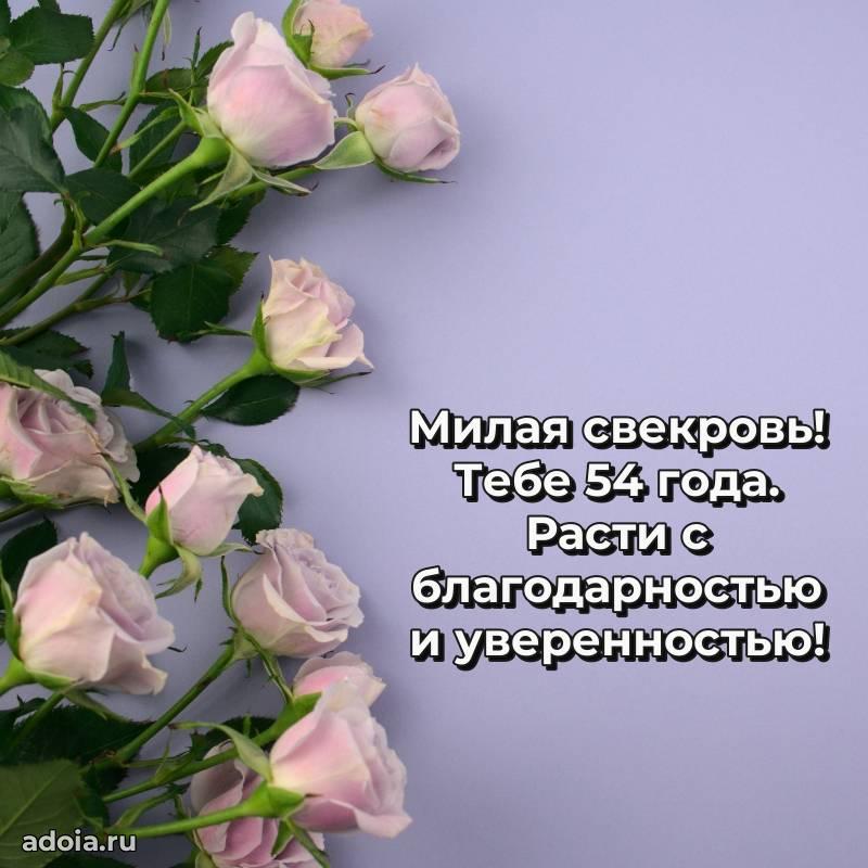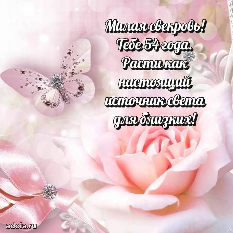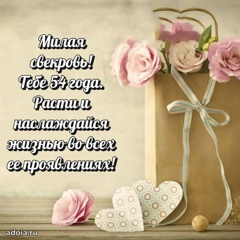 В поисках красивых и современных открыток? Вы попали по адресу! Здесь вы найдете картинки с днем рождения Свекрови на 54 года! Все картинки в высоком качестве, которые можно скачать или отправить через WhatsApp бесплатно. Также вы найдете много прикольных и мерцающих гифок и анимаций, которые поднимут настроение! Все открытки содержат поздравления в стихах и прозе.