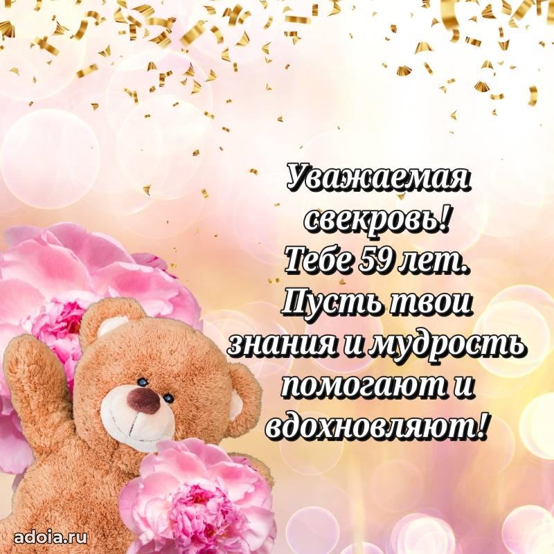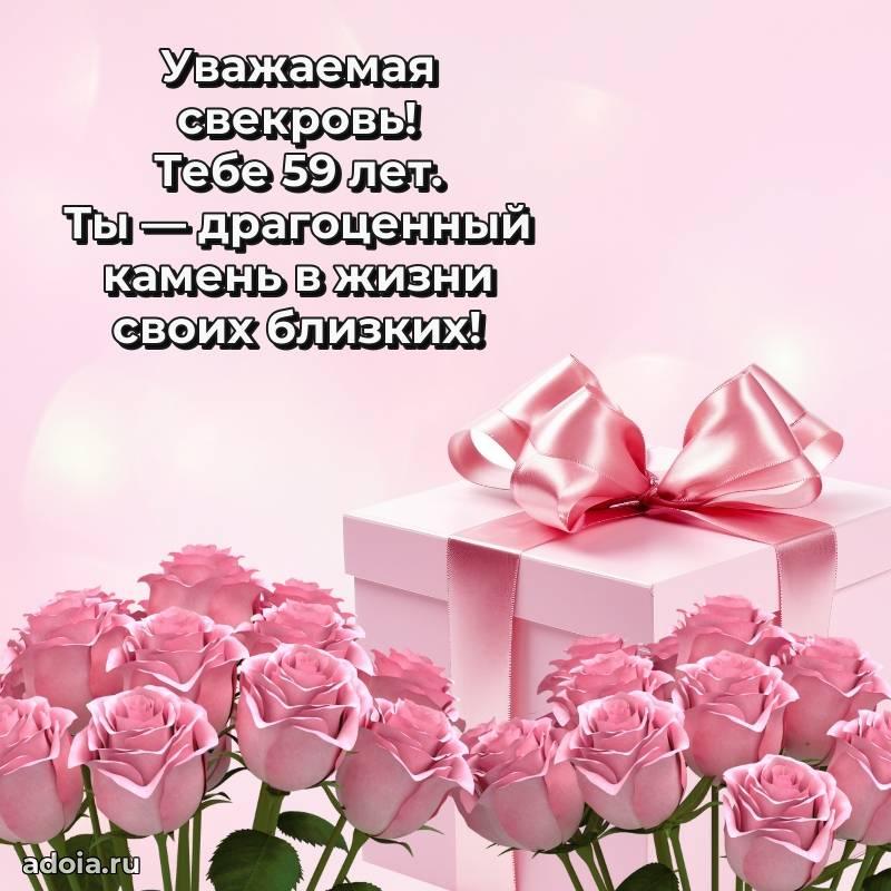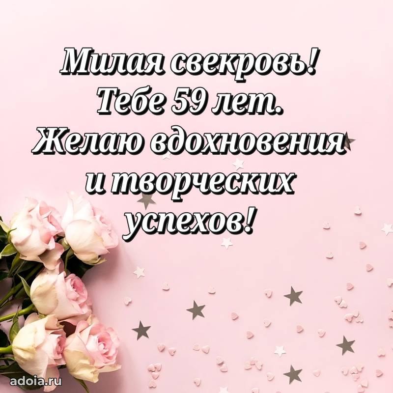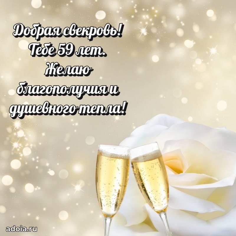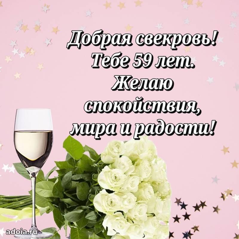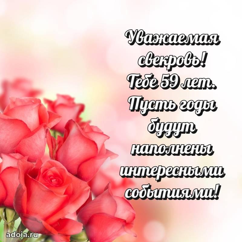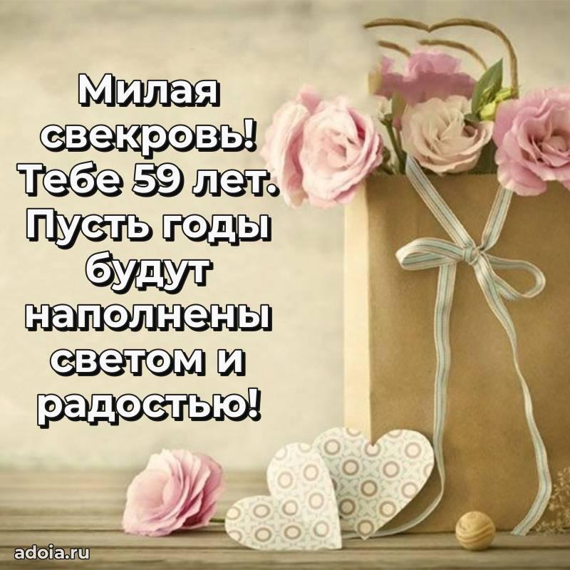 В поисках красивых и современных открыток? Вы попали по адресу! Здесь вы найдете картинки с днем рождения Свекрови на 59 лет! Все картинки в высоком качестве, которые можно скачать или отправить через WhatsApp бесплатно. Также вы найдете много прикольных и мерцающих гифок и анимаций, которые поднимут настроение! Все открытки содержат поздравления в стихах и прозе.