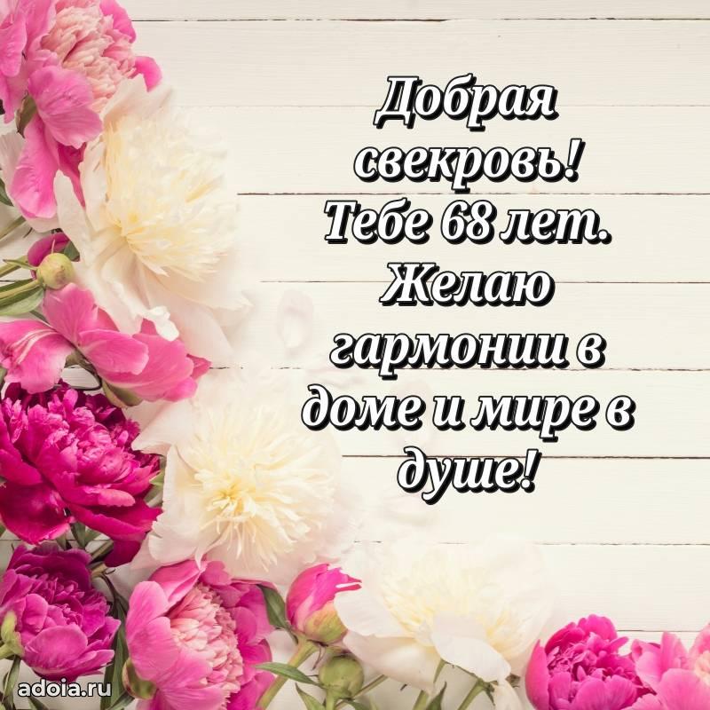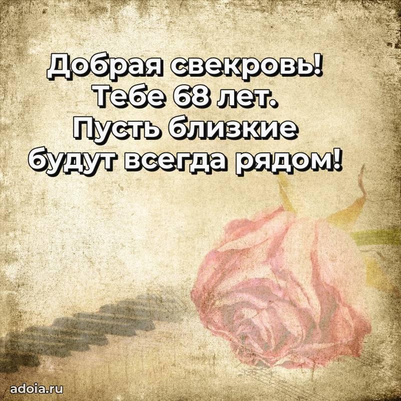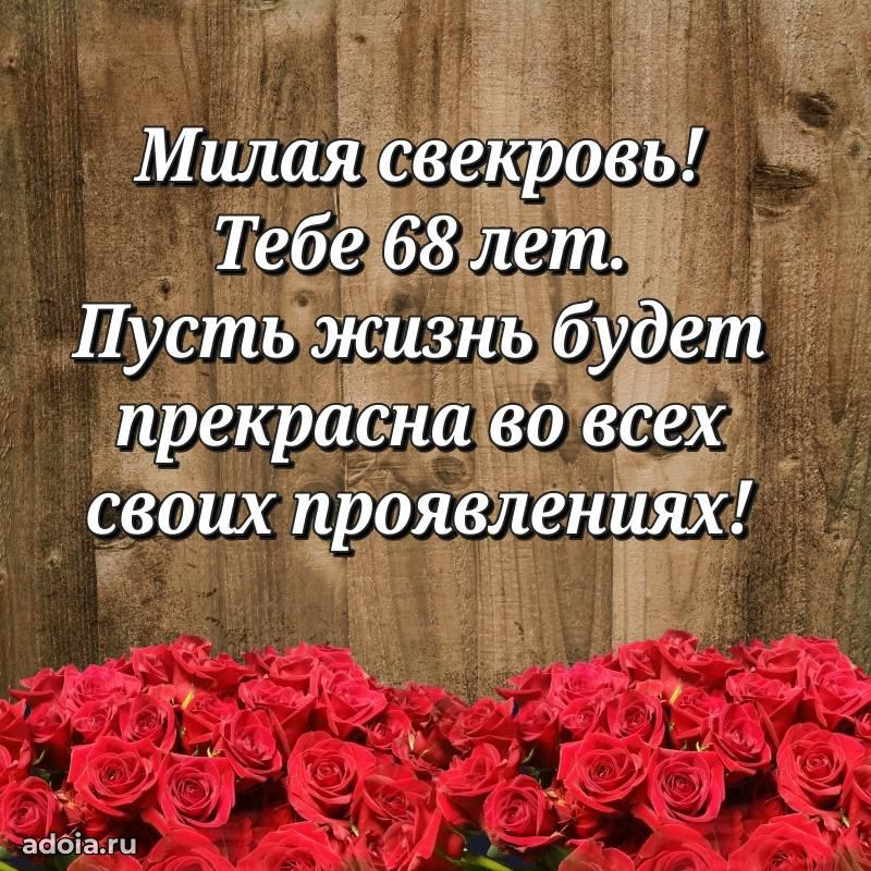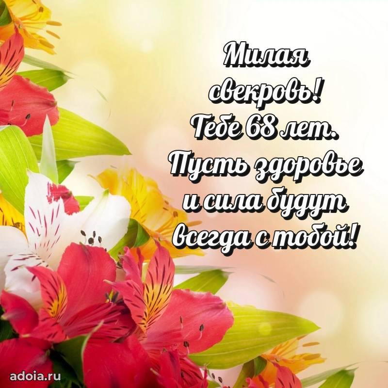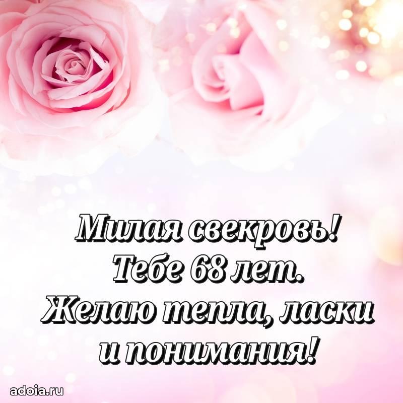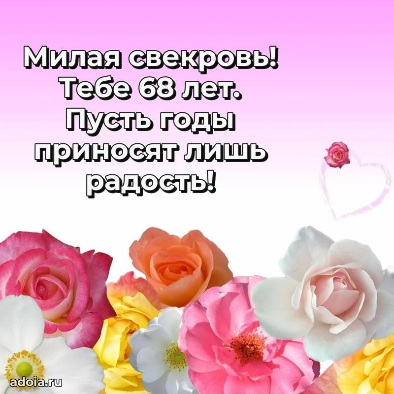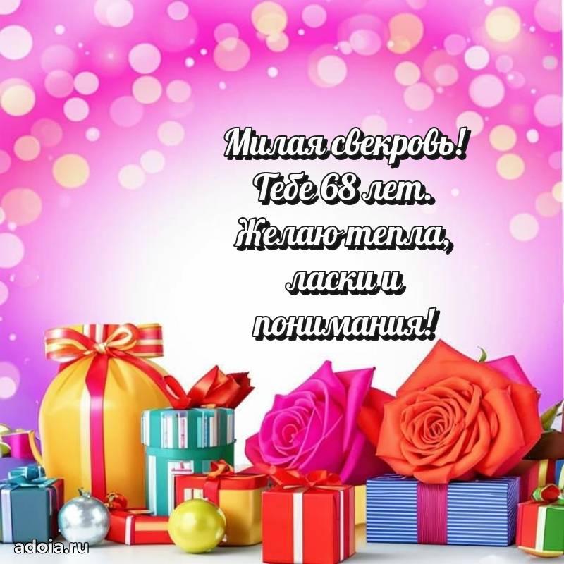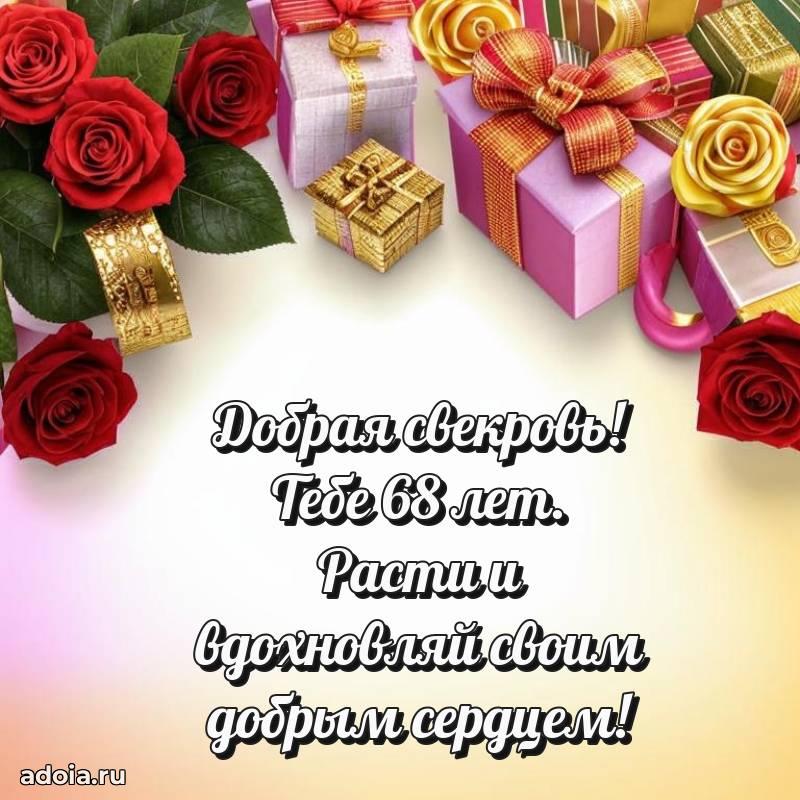 В поисках красивых и современных открыток? Вы попали по адресу! Здесь вы найдете картинки с днем рождения Свекрови на 68 лет! Все картинки в высоком качестве, которые можно скачать или отправить через WhatsApp бесплатно. Также вы найдете много прикольных и мерцающих гифок и анимаций, которые поднимут настроение! Все открытки содержат поздравления в стихах и прозе.
