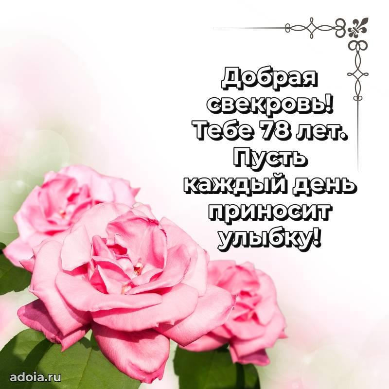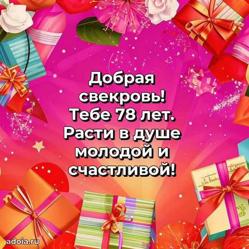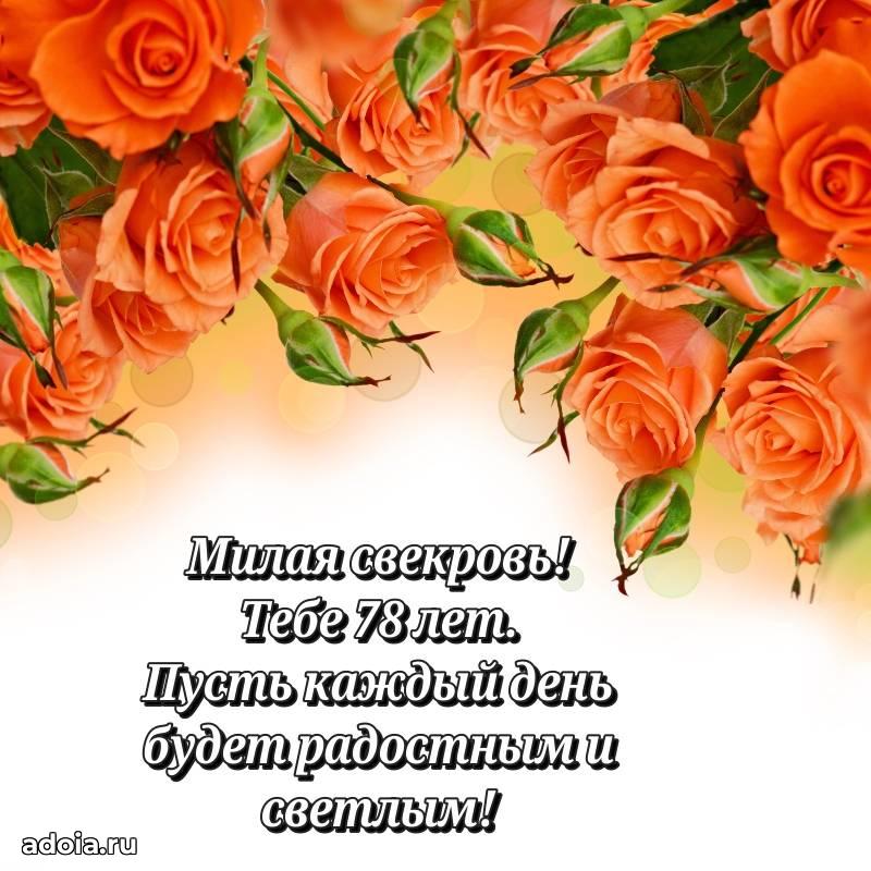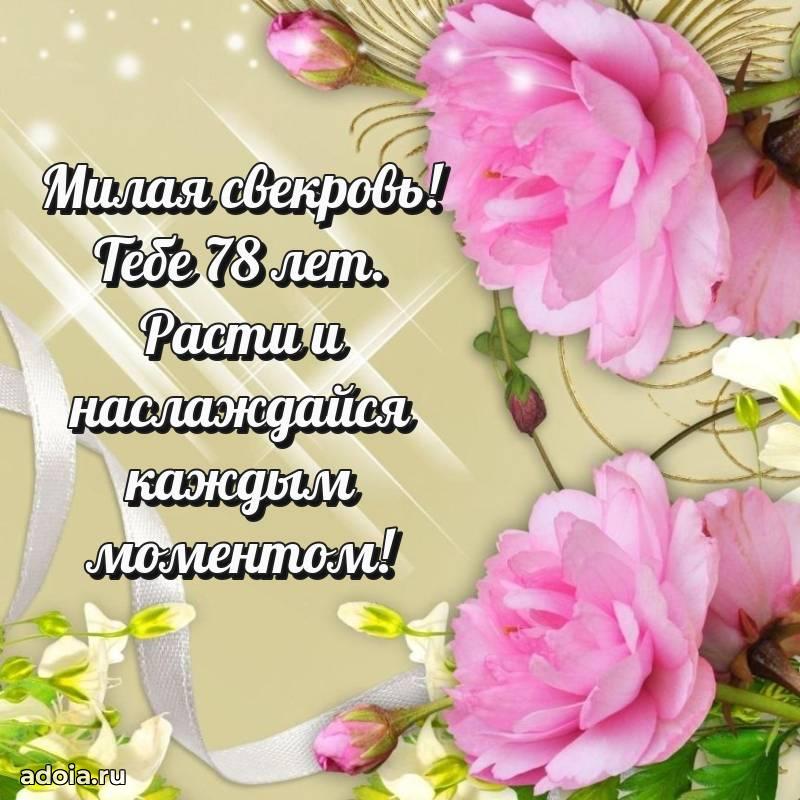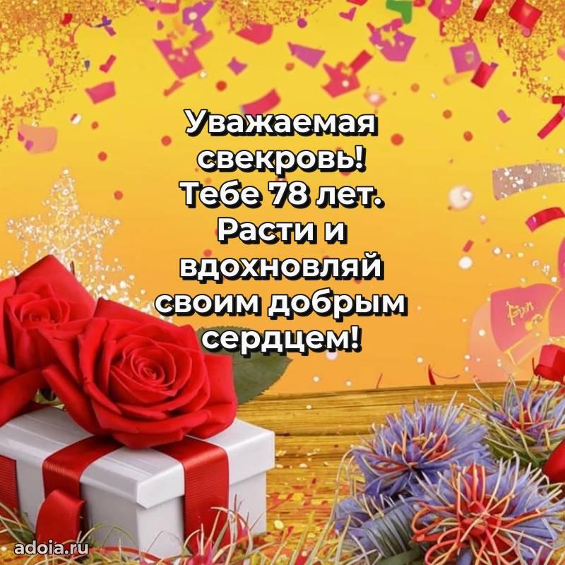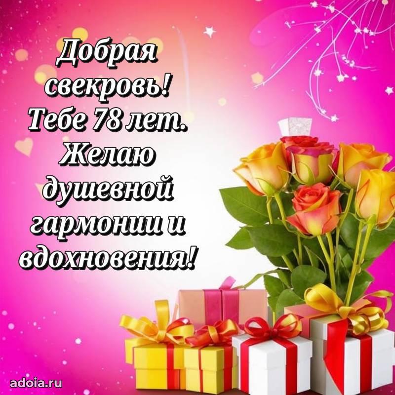 В поисках красивых и современных открыток? Вы попали по адресу! Здесь вы найдете картинки с днем рождения Свекрови на 78 лет! Все картинки в высоком качестве, которые можно скачать или отправить через WhatsApp бесплатно. Также вы найдете много прикольных и мерцающих гифок и анимаций, которые поднимут настроение! Все открытки содержат поздравления в стихах и прозе.