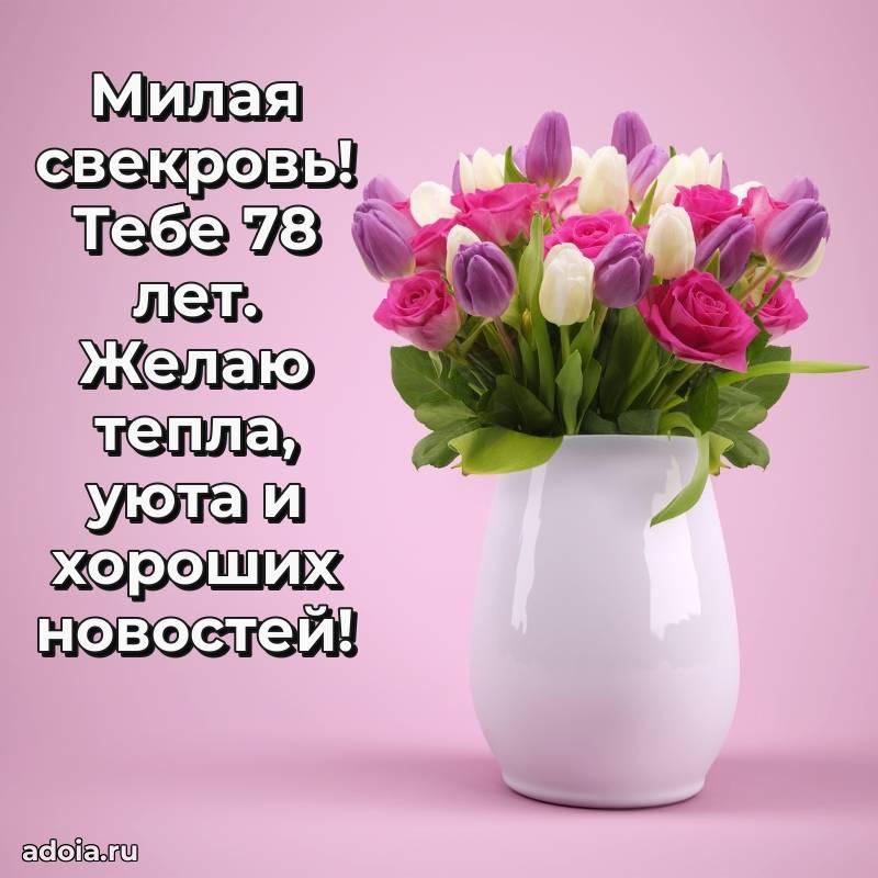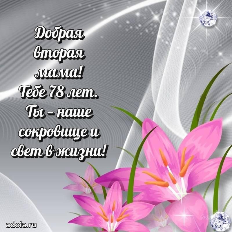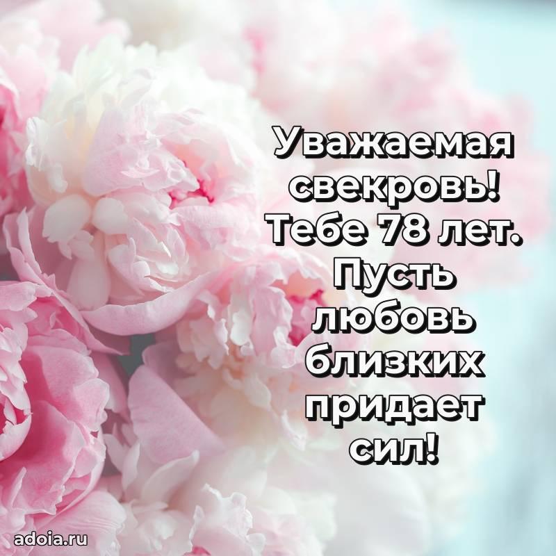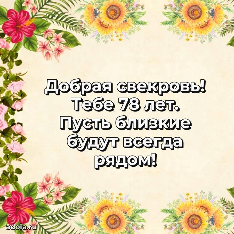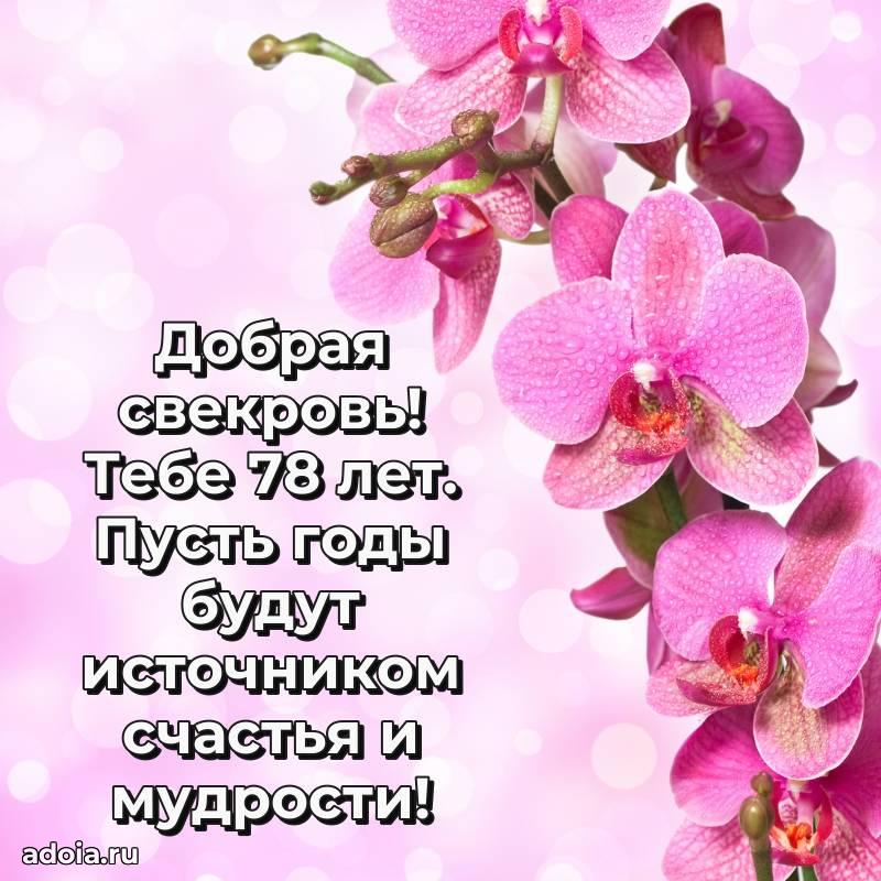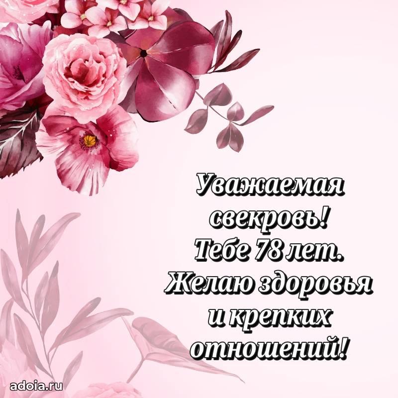 В поисках красивых и современных открыток? Вы попали по адресу! Здесь вы найдете картинки с днем рождения Свекрови на 78 лет! Все картинки в высоком качестве, которые можно скачать или отправить через WhatsApp бесплатно. Также вы найдете много прикольных и мерцающих гифок и анимаций, которые поднимут настроение! Все открытки содержат поздравления в стихах и прозе.
