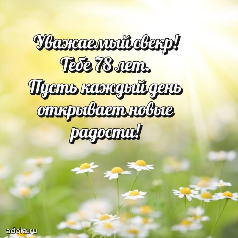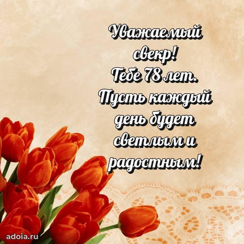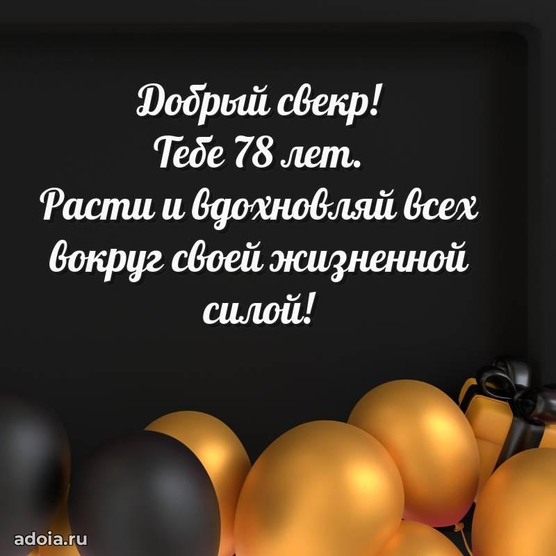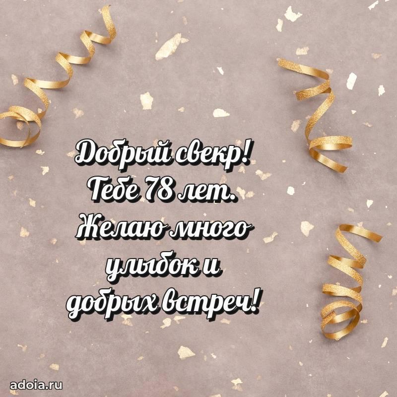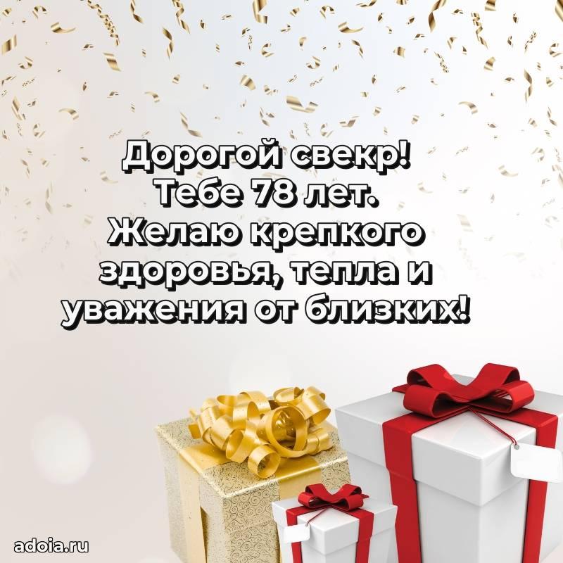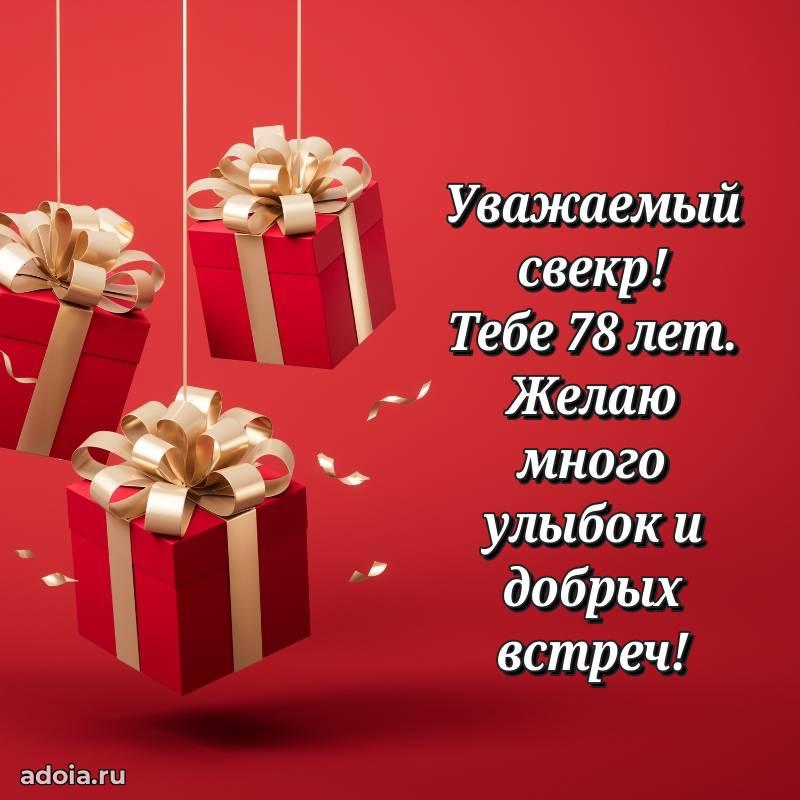 В поисках красивых и современных открыток? Вы попали по адресу! Здесь вы найдете картинки с днем рождения Свекру на 78 лет! Все картинки в высоком качестве, которые можно скачать или отправить через WhatsApp бесплатно. Также вы найдете много прикольных и мерцающих гифок и анимаций, которые поднимут настроение! Все открытки содержат поздравления в стихах и прозе.