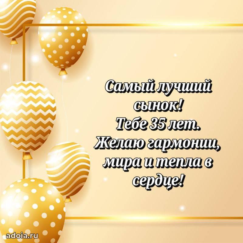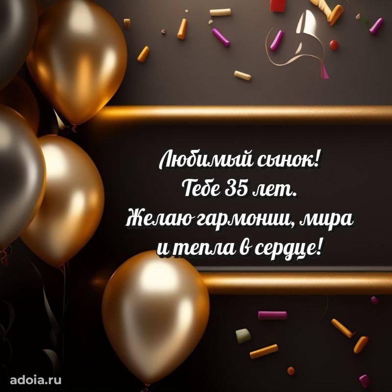 В поисках красивых и современных открыток? Вы попали по адресу! Здесь вы найдете картинки с днем рождения Сыну на 35 лет! Все картинки в высоком качестве, которые можно скачать или отправить через WhatsApp бесплатно. Также вы найдете много прикольных и мерцающих гифок и анимаций, которые поднимут настроение! Все открытки содержат поздравления в стихах и прозе.