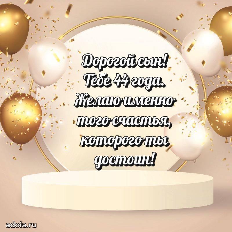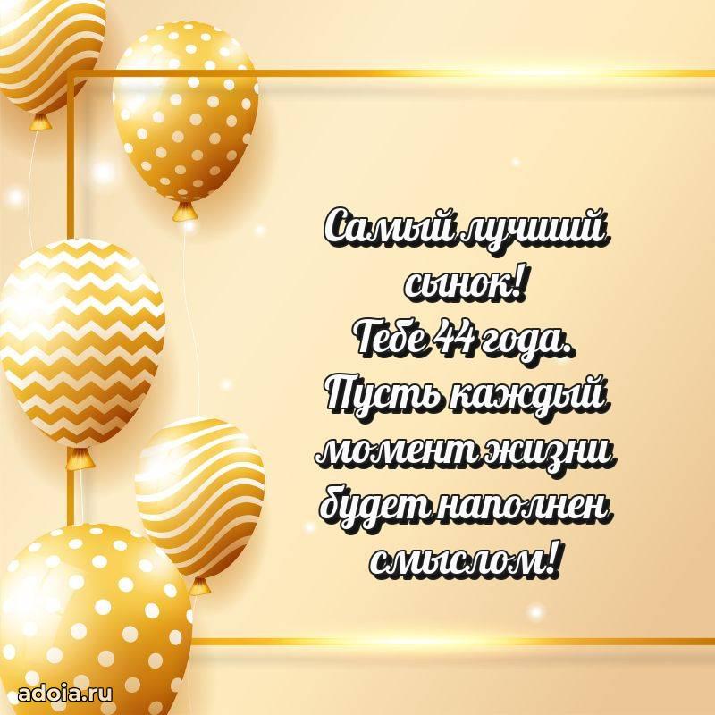 В поисках красивых и современных открыток? Вы попали по адресу! Здесь вы найдете картинки с днем рождения Сыну на 44 года! Все картинки в высоком качестве, которые можно скачать или отправить через WhatsApp бесплатно. Также вы найдете много прикольных и мерцающих гифок и анимаций, которые поднимут настроение! Все открытки содержат поздравления в стихах и прозе.