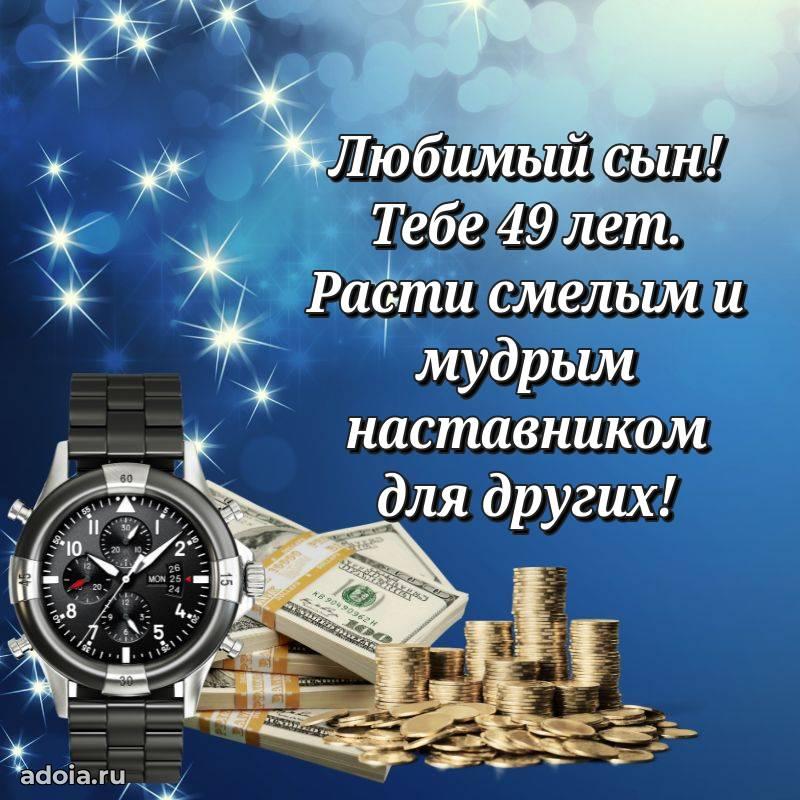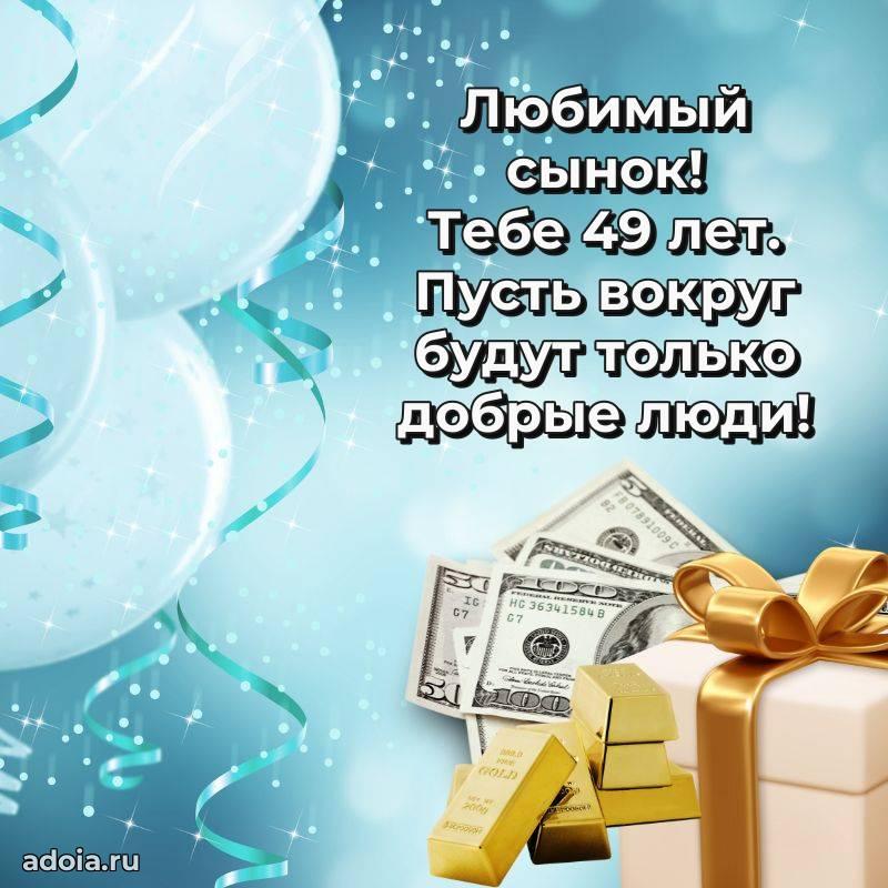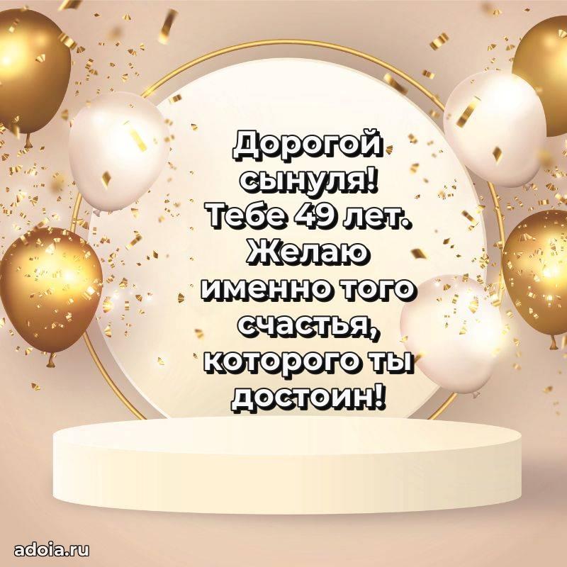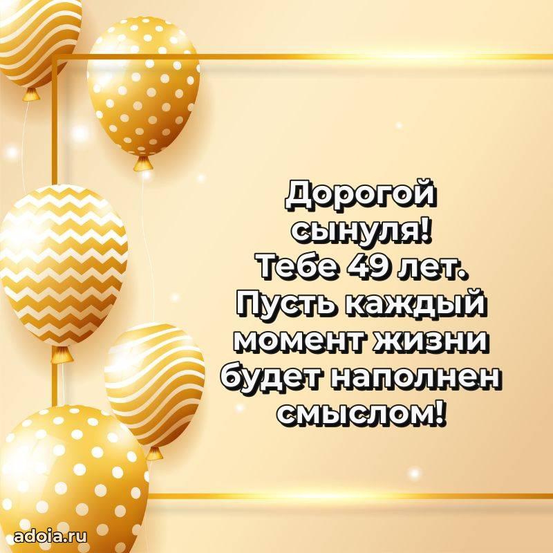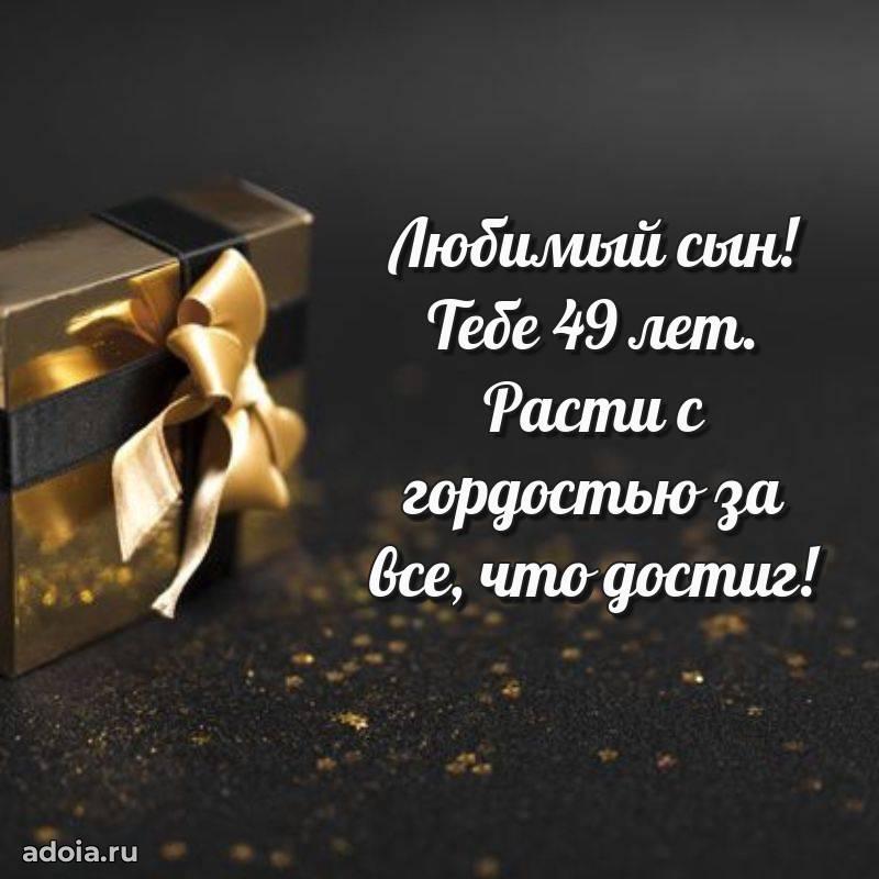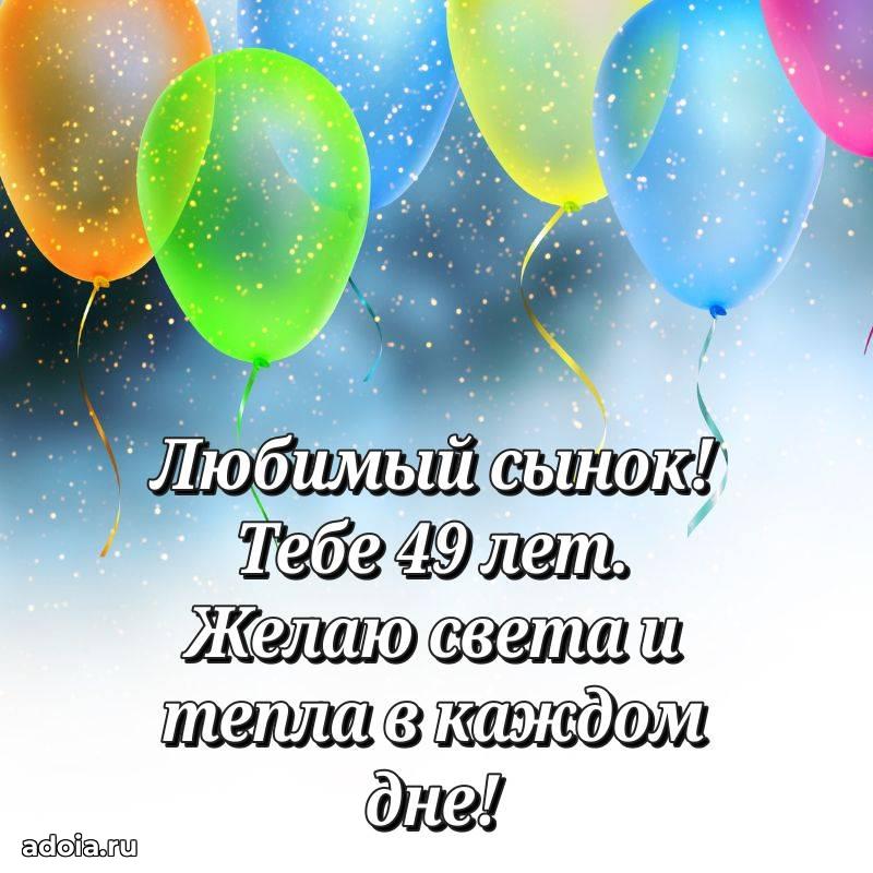 В поисках красивых и современных открыток? Вы попали по адресу! Здесь вы найдете картинки с днем рождения Сыну на 49 лет! Все картинки в высоком качестве, которые можно скачать или отправить через WhatsApp бесплатно. Также вы найдете много прикольных и мерцающих гифок и анимаций, которые поднимут настроение! Все открытки содержат поздравления в стихах и прозе.