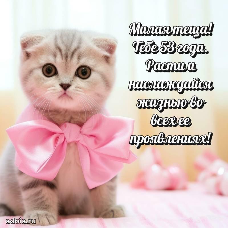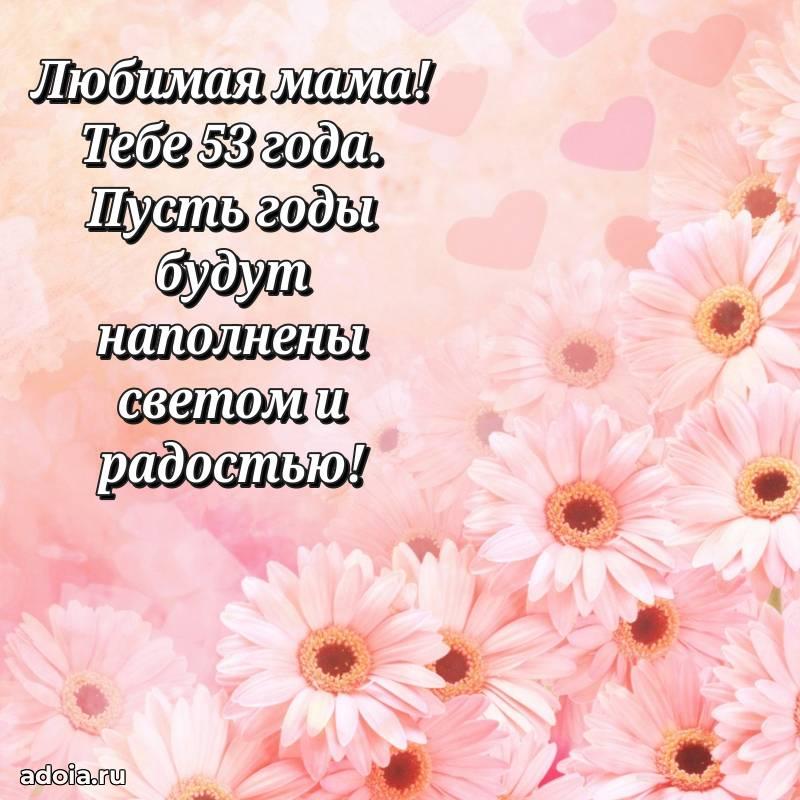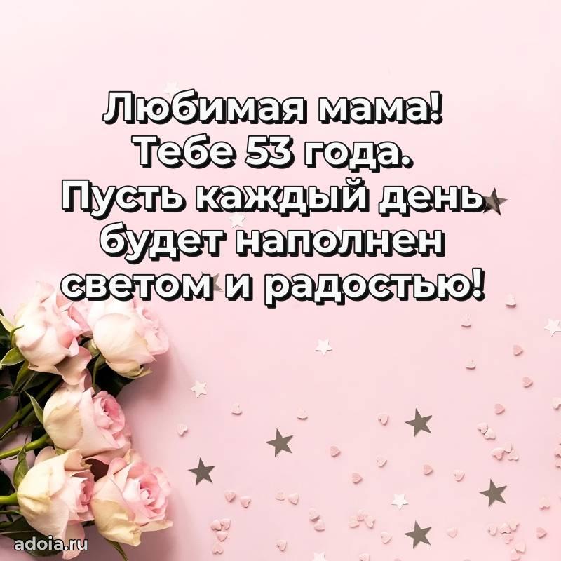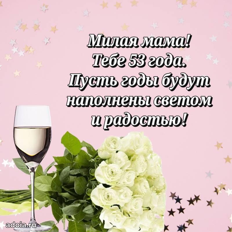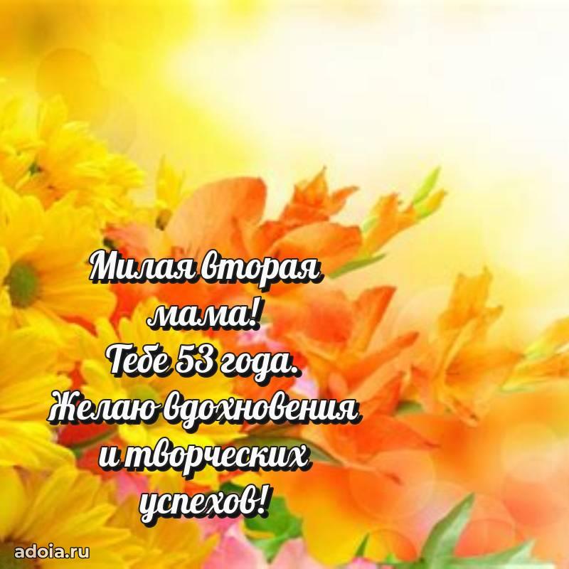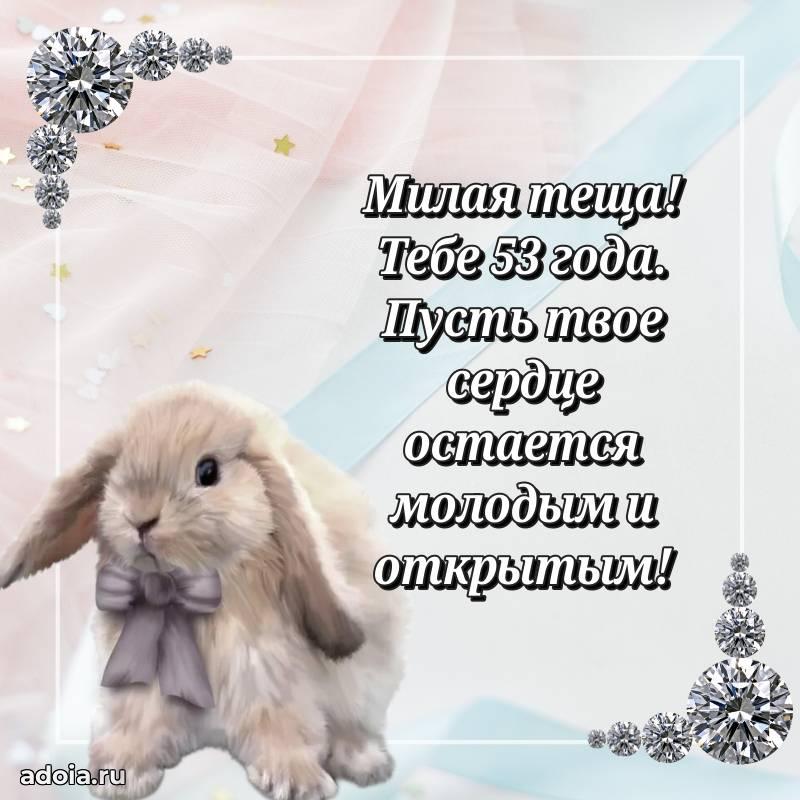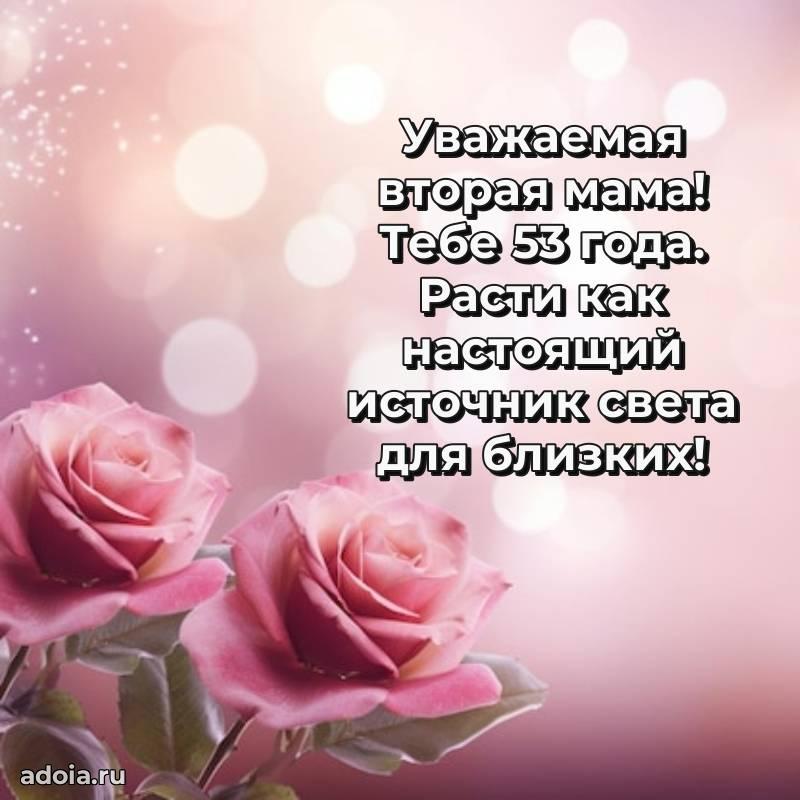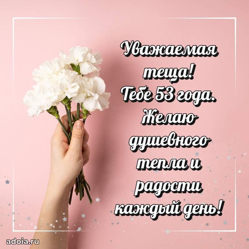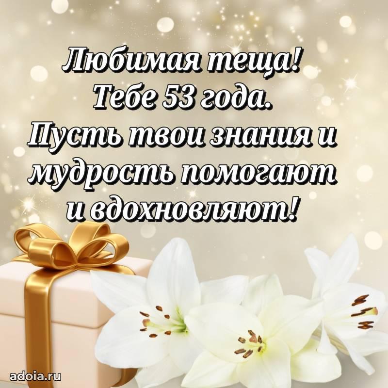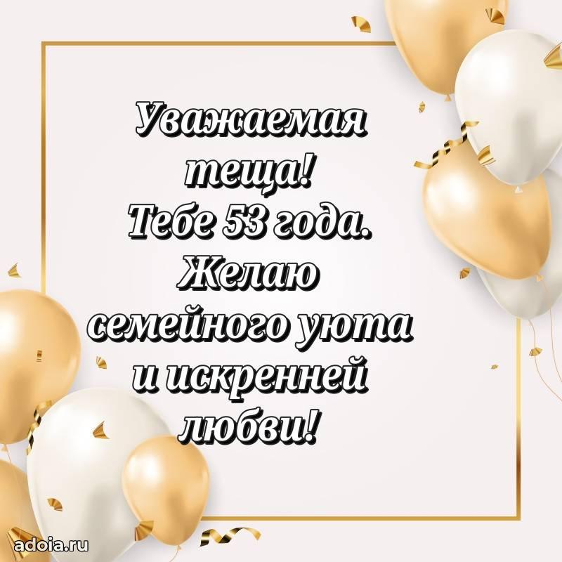 В поисках красивых и современных открыток? Вы попали по адресу! Здесь вы найдете картинки с днем рождения Тещe на 53 года! Все картинки в высоком качестве, которые можно скачать или отправить через WhatsApp бесплатно. Также вы найдете много прикольных и мерцающих гифок и анимаций, которые поднимут настроение! Все открытки содержат поздравления в стихах и прозе.