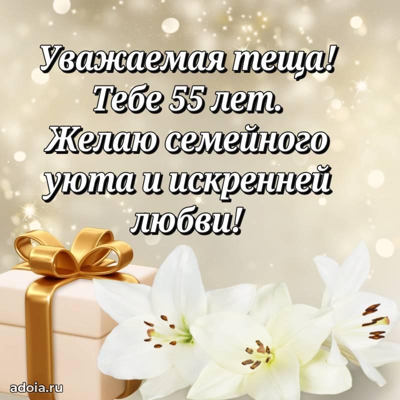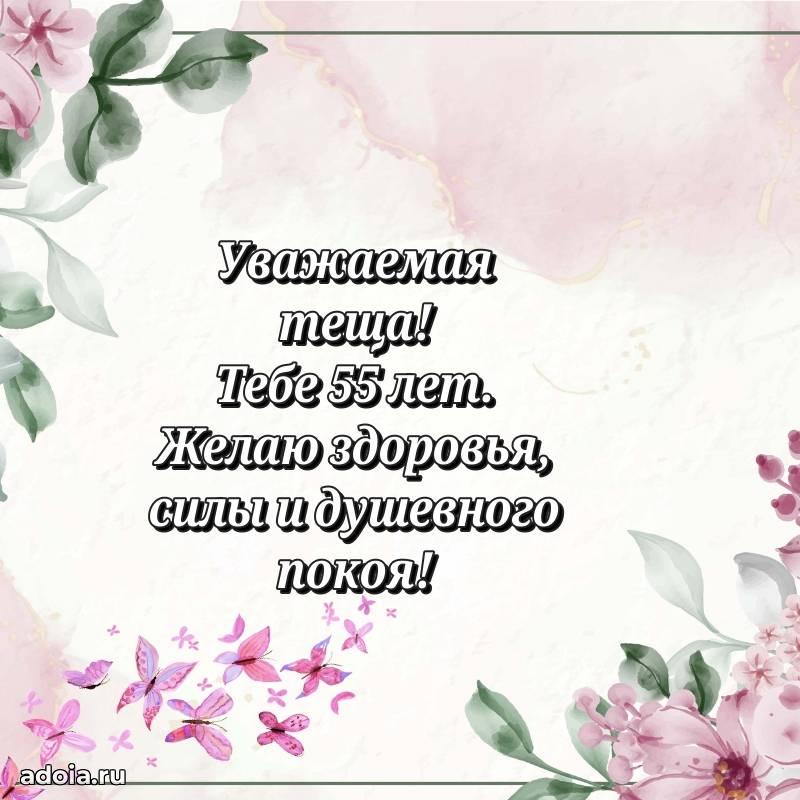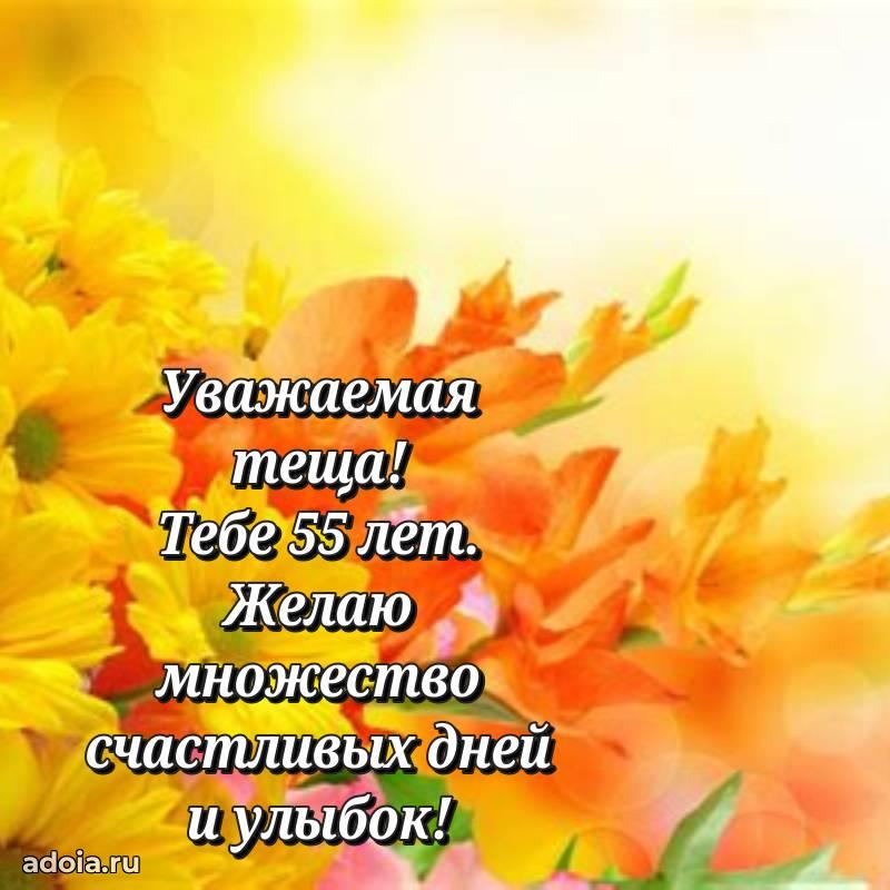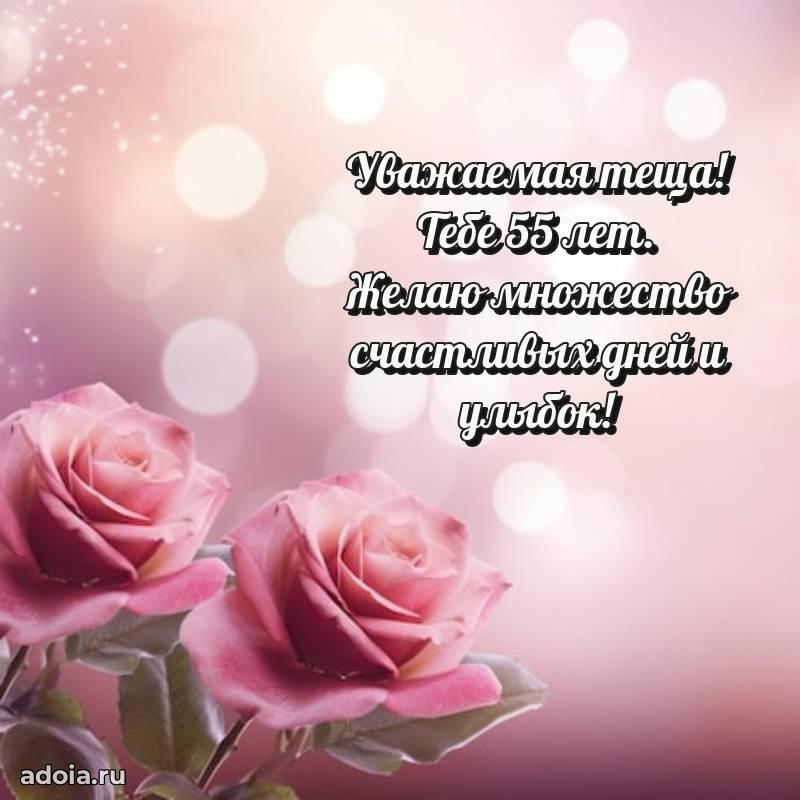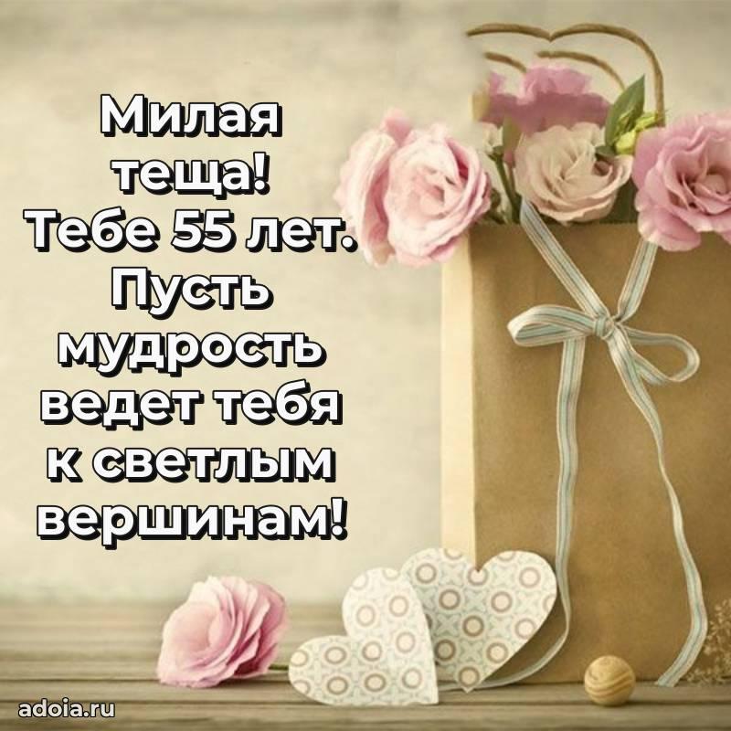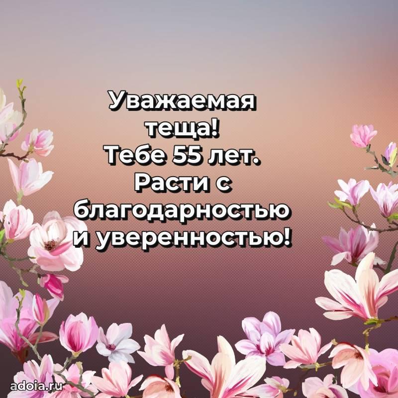 В поисках красивых и современных открыток? Вы попали по адресу! Здесь вы найдете картинки с днем рождения Тещe на 55 лет! Все картинки в высоком качестве, которые можно скачать или отправить через WhatsApp бесплатно. Также вы найдете много прикольных и мерцающих гифок и анимаций, которые поднимут настроение! Все открытки содержат поздравления в стихах и прозе.