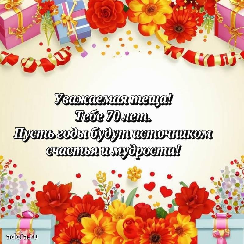 В поисках красивых и современных открыток? Вы попали по адресу! Здесь вы найдете картинки с днем рождения Тещe на 70 лет! Все картинки в высоком качестве, которые можно скачать или отправить через WhatsApp бесплатно. Также вы найдете много прикольных и мерцающих гифок и анимаций, которые поднимут настроение! Все открытки содержат поздравления в стихах и прозе.