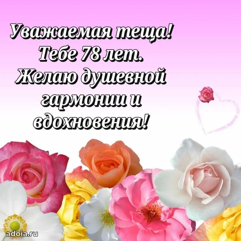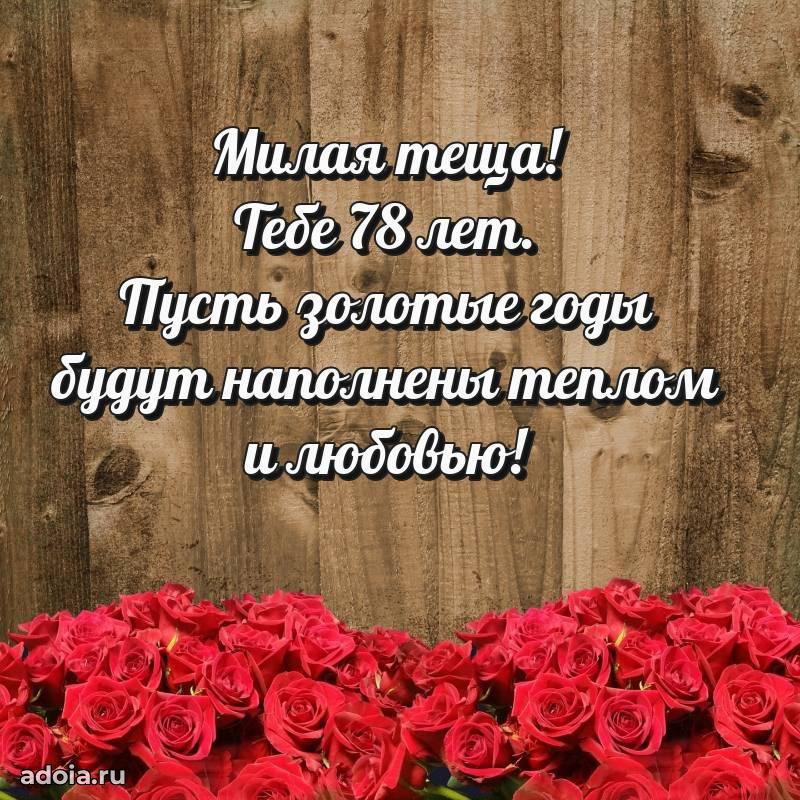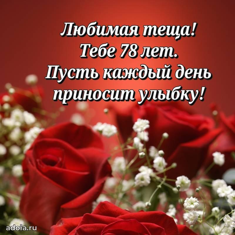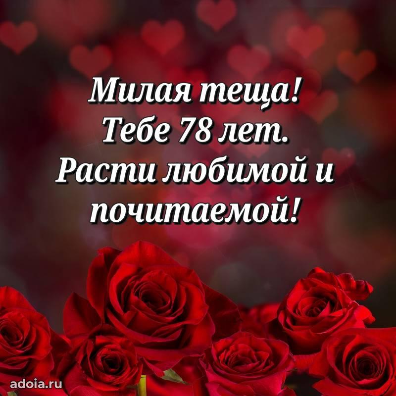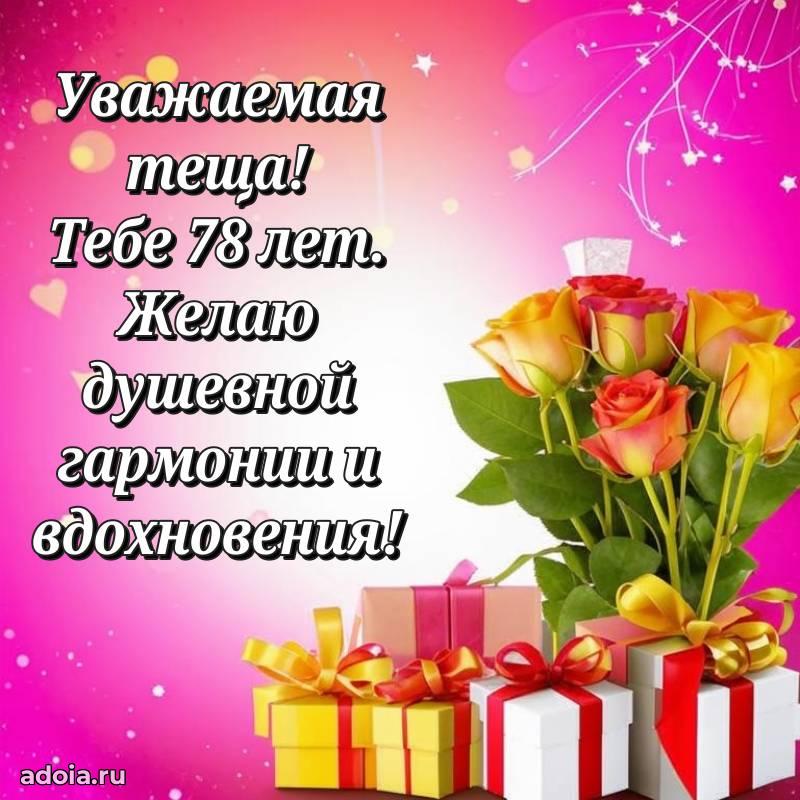 В поисках красивых и современных открыток? Вы попали по адресу! Здесь вы найдете картинки с днем рождения Тещe на 78 лет! Все картинки в высоком качестве, которые можно скачать или отправить через WhatsApp бесплатно. Также вы найдете много прикольных и мерцающих гифок и анимаций, которые поднимут настроение! Все открытки содержат поздравления в стихах и прозе.