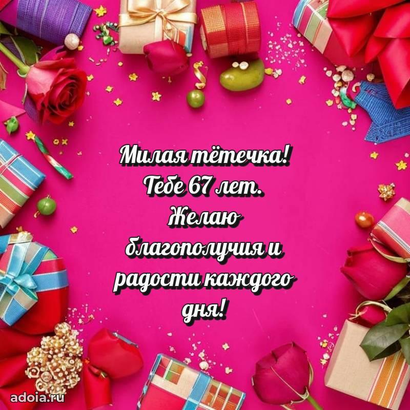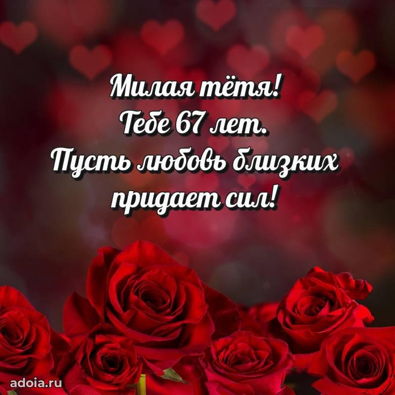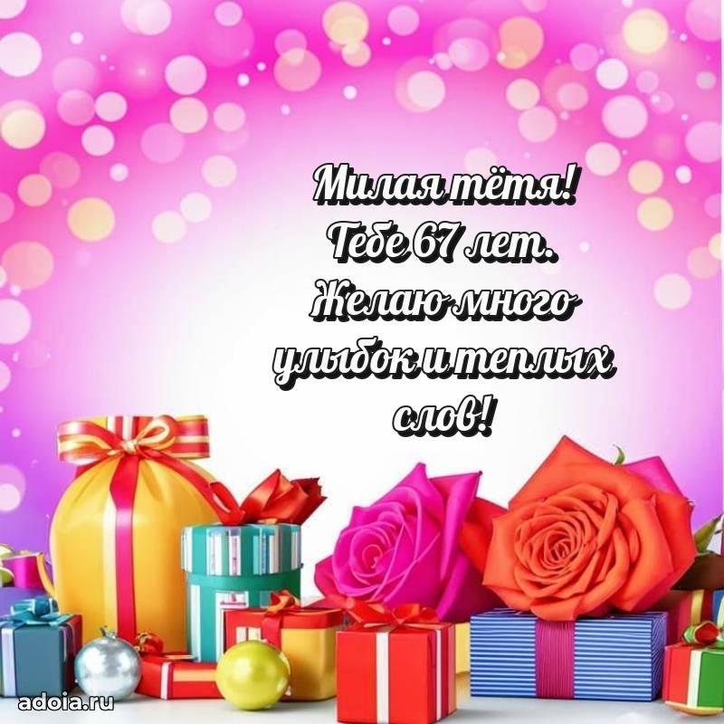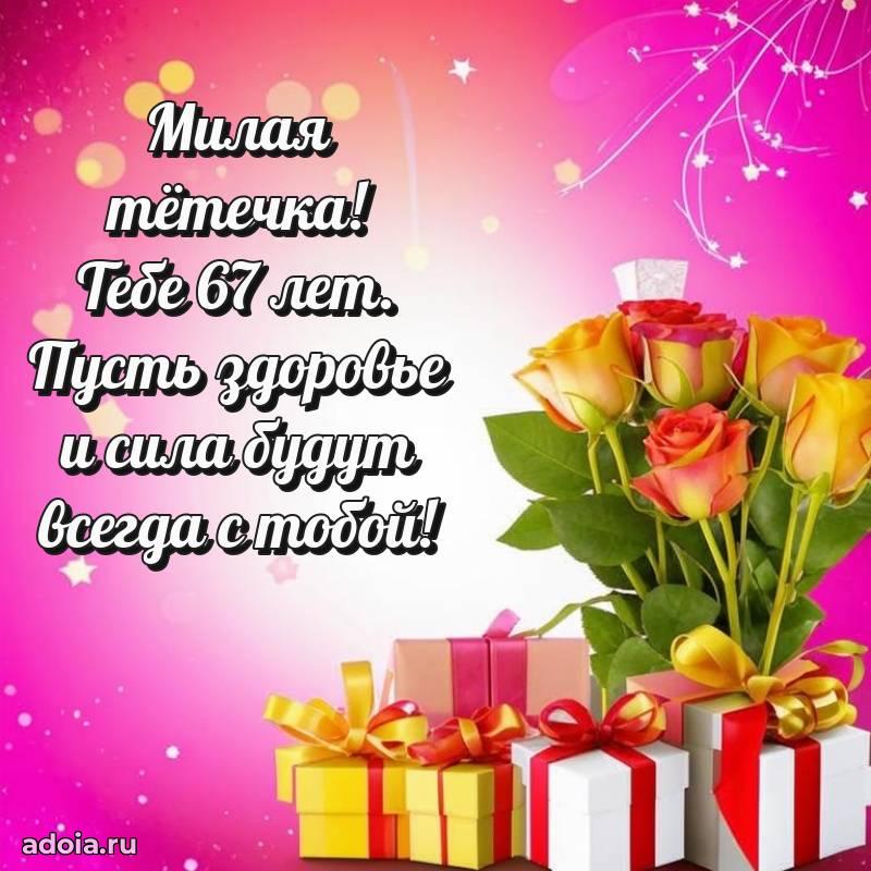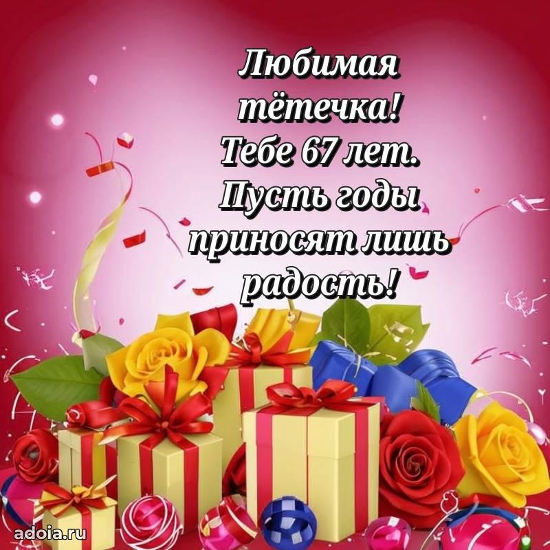 В поисках красивых и современных открыток? Вы попали по адресу! Здесь вы найдете картинки с днем рождения Тете на 67 лет! Все картинки в высоком качестве, которые можно скачать или отправить через WhatsApp бесплатно. Также вы найдете много прикольных и мерцающих гифок и анимаций, которые поднимут настроение! Все открытки содержат поздравления в стихах и прозе.