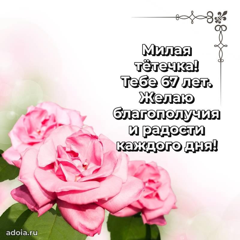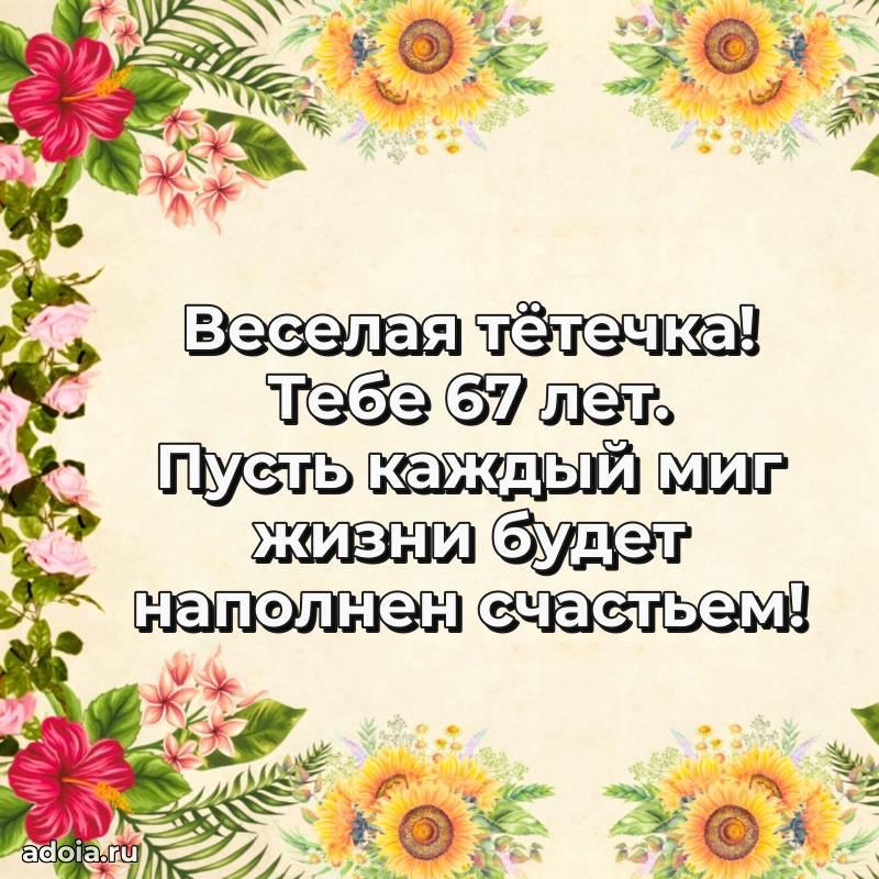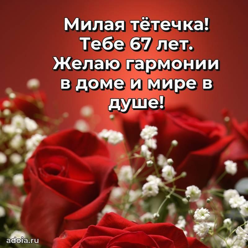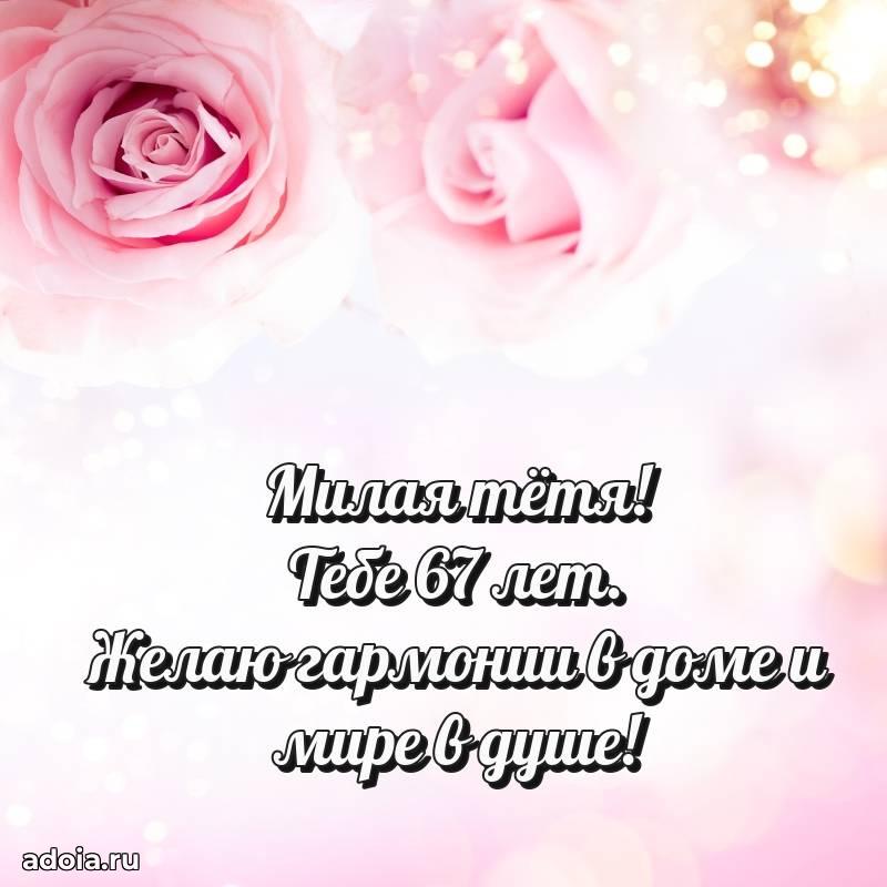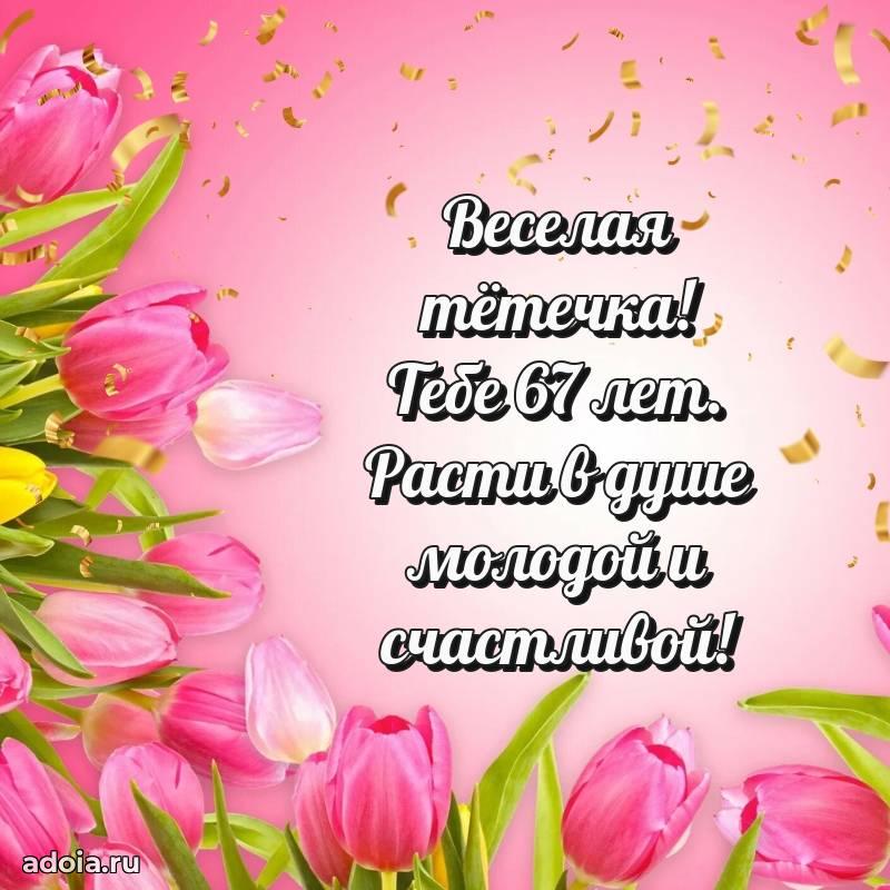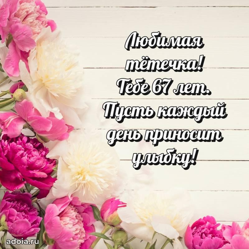 В поисках красивых и современных открыток? Вы попали по адресу! Здесь вы найдете картинки с днем рождения Тете на 67 лет! Все картинки в высоком качестве, которые можно скачать или отправить через WhatsApp бесплатно. Также вы найдете много прикольных и мерцающих гифок и анимаций, которые поднимут настроение! Все открытки содержат поздравления в стихах и прозе.