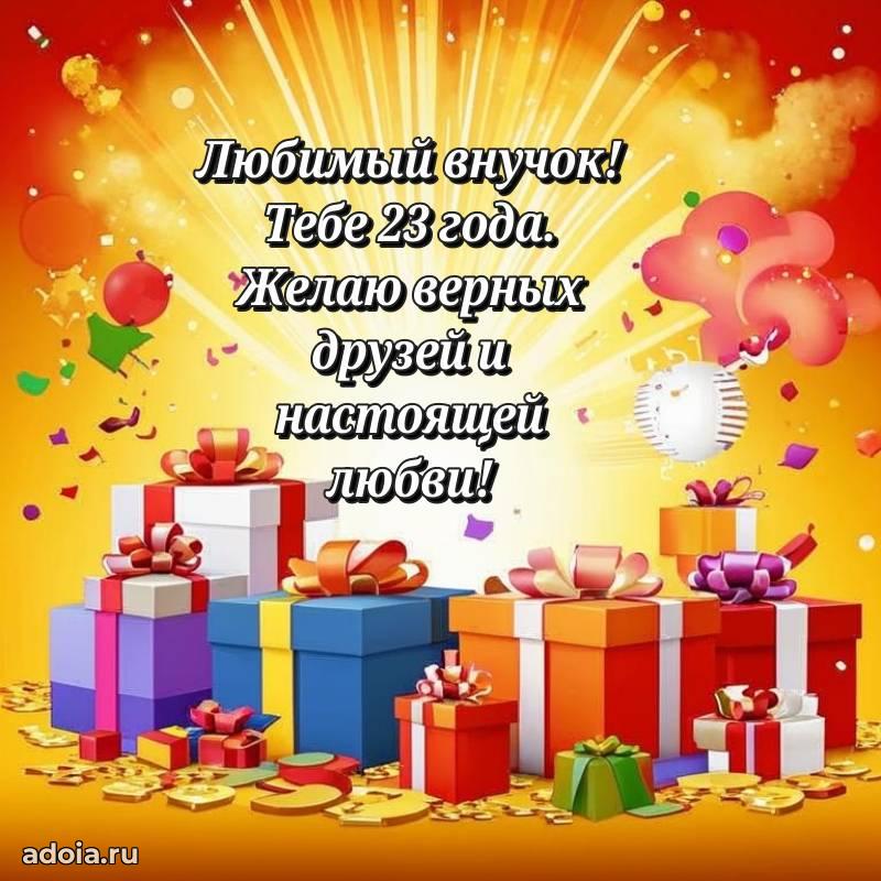 В поисках красивых и современных открыток? Вы попали по адресу! Здесь вы найдете картинки с днем рождения Внуку на 23 года! Все картинки в высоком качестве, которые можно скачать или отправить через WhatsApp бесплатно. Также вы найдете много прикольных и мерцающих гифок и анимаций, которые поднимут настроение! Все открытки содержат поздравления в стихах и прозе.