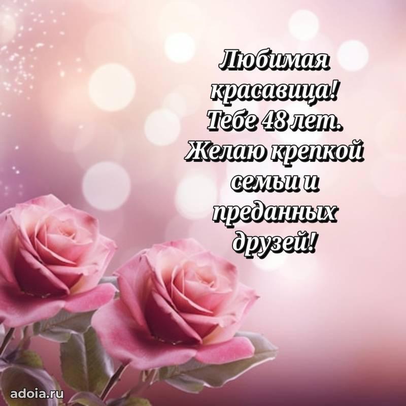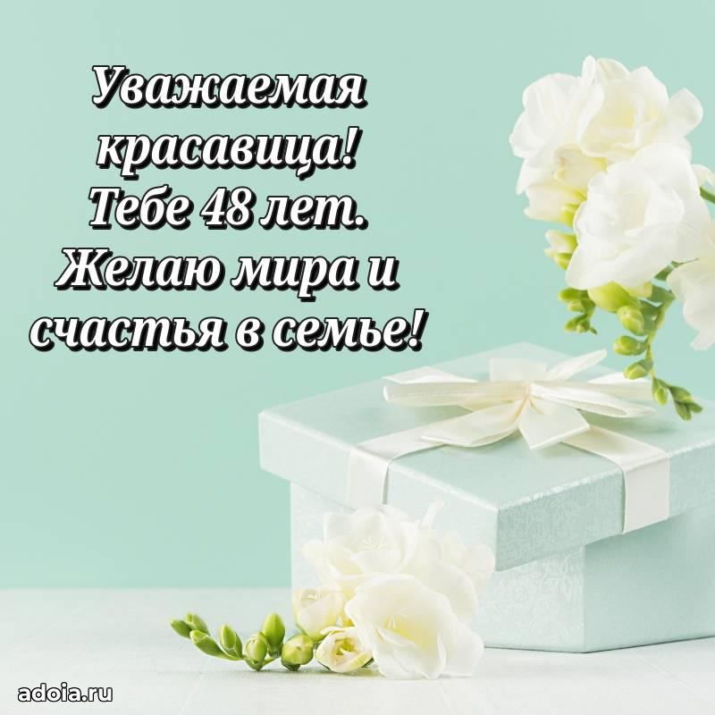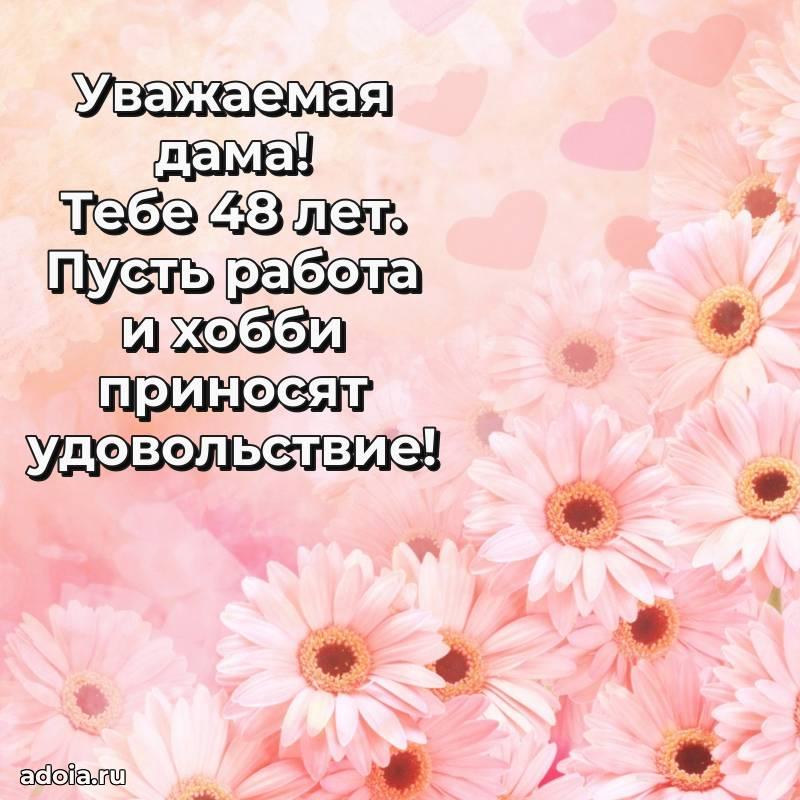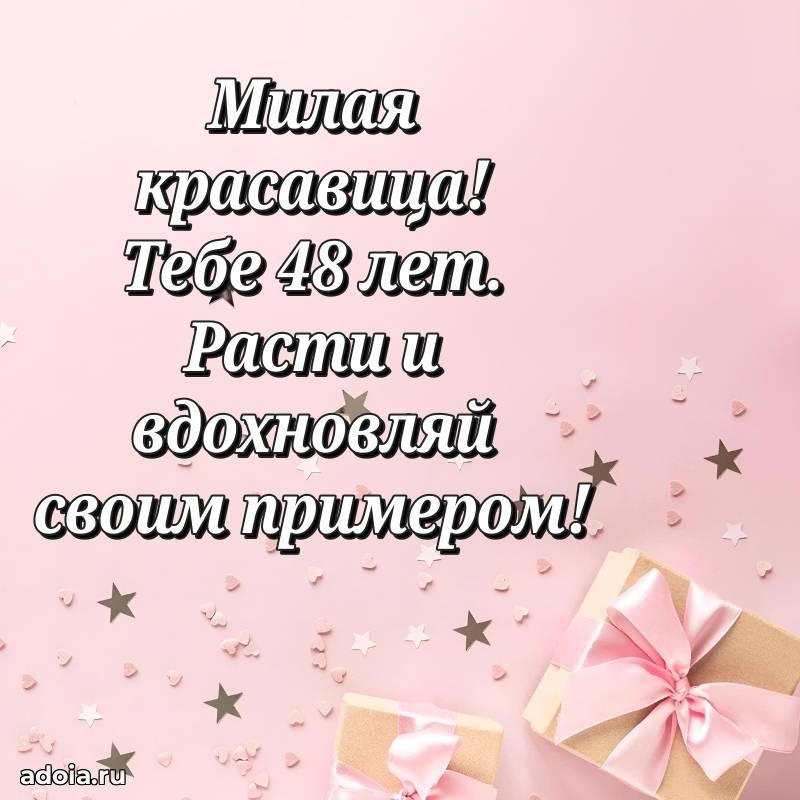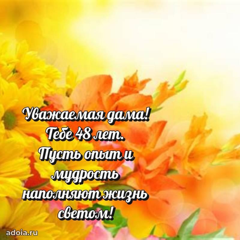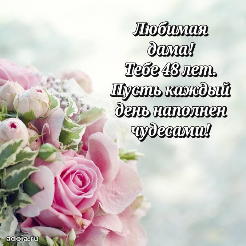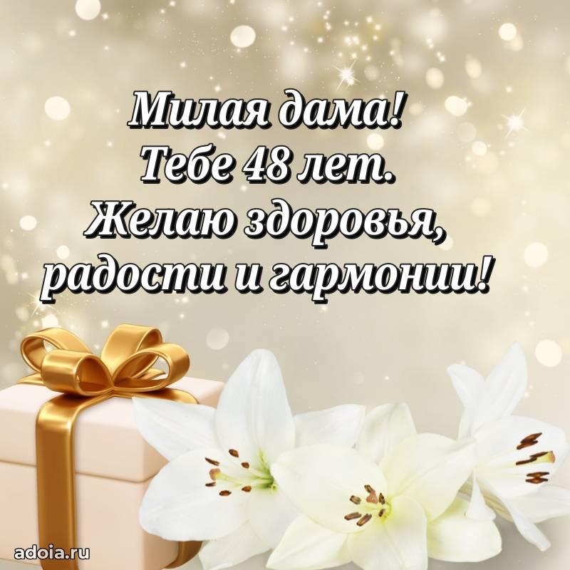 В поисках красивых и современных открыток? Вы попали по адресу! Здесь вы найдете картинки с днем рождения Женщине на 48 лет! Все картинки в высоком качестве, которые можно скачать или отправить через WhatsApp бесплатно. Также вы найдете много прикольных и мерцающих гифок и анимаций, которые поднимут настроение! Все открытки содержат поздравления в стихах и прозе.