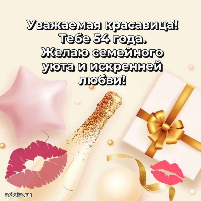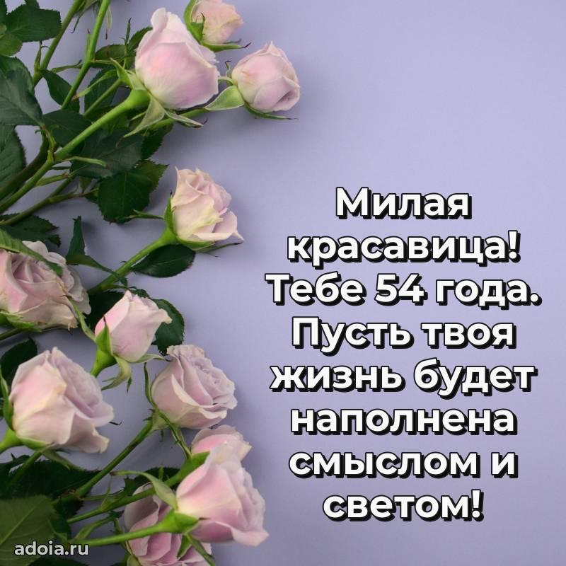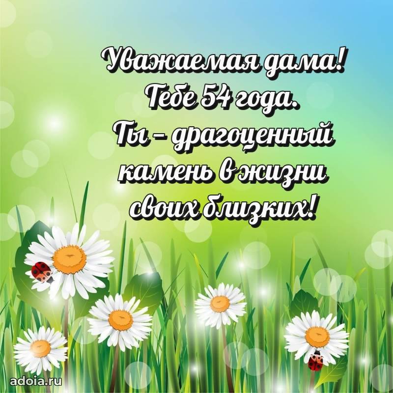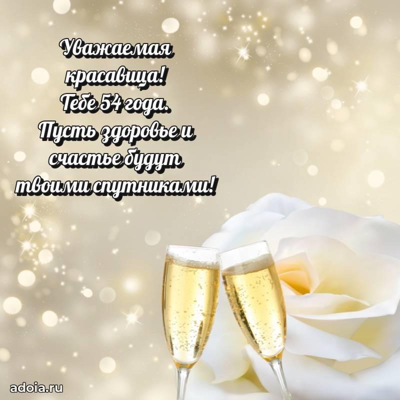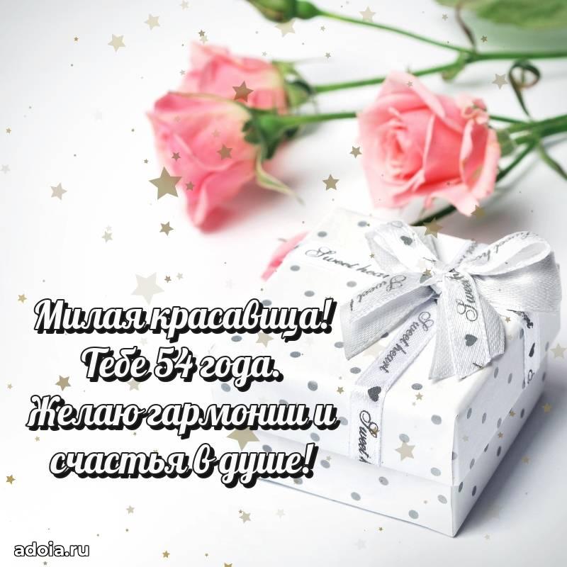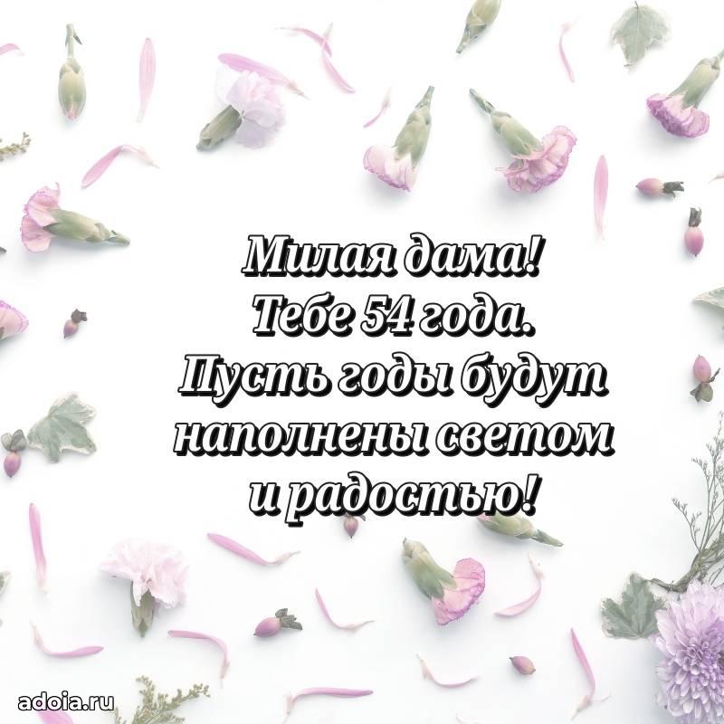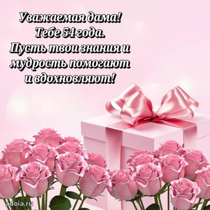 В поисках красивых и современных открыток? Вы попали по адресу! Здесь вы найдете картинки с днем рождения Женщине на 54 года! Все картинки в высоком качестве, которые можно скачать или отправить через WhatsApp бесплатно. Также вы найдете много прикольных и мерцающих гифок и анимаций, которые поднимут настроение! Все открытки содержат поздравления в стихах и прозе.