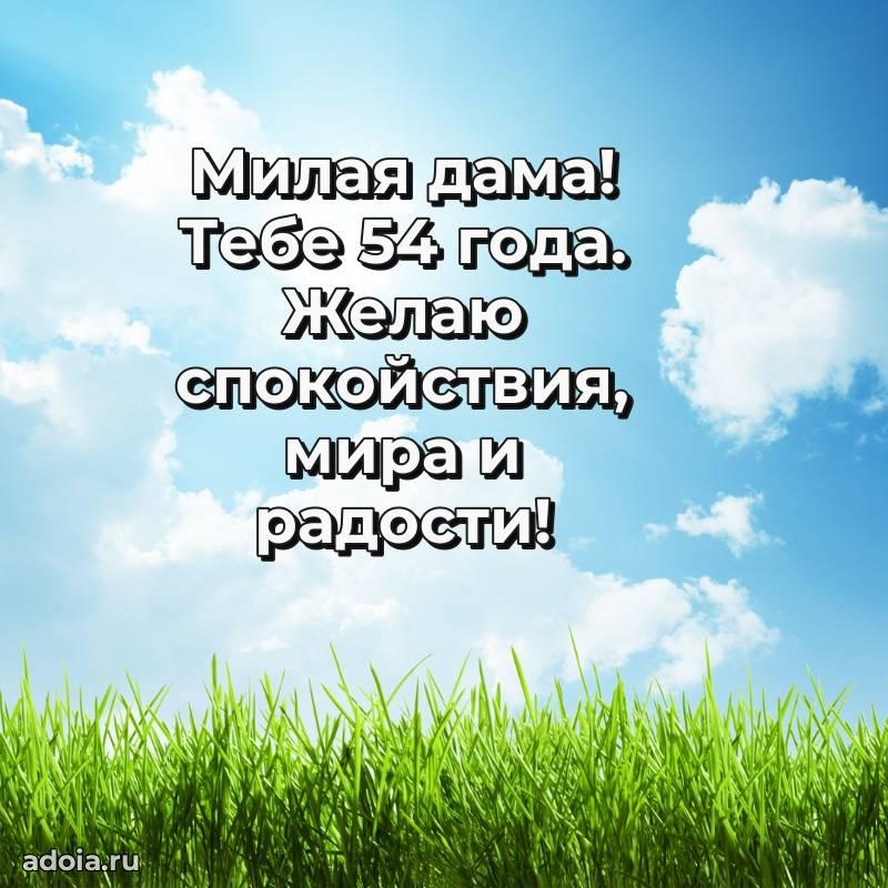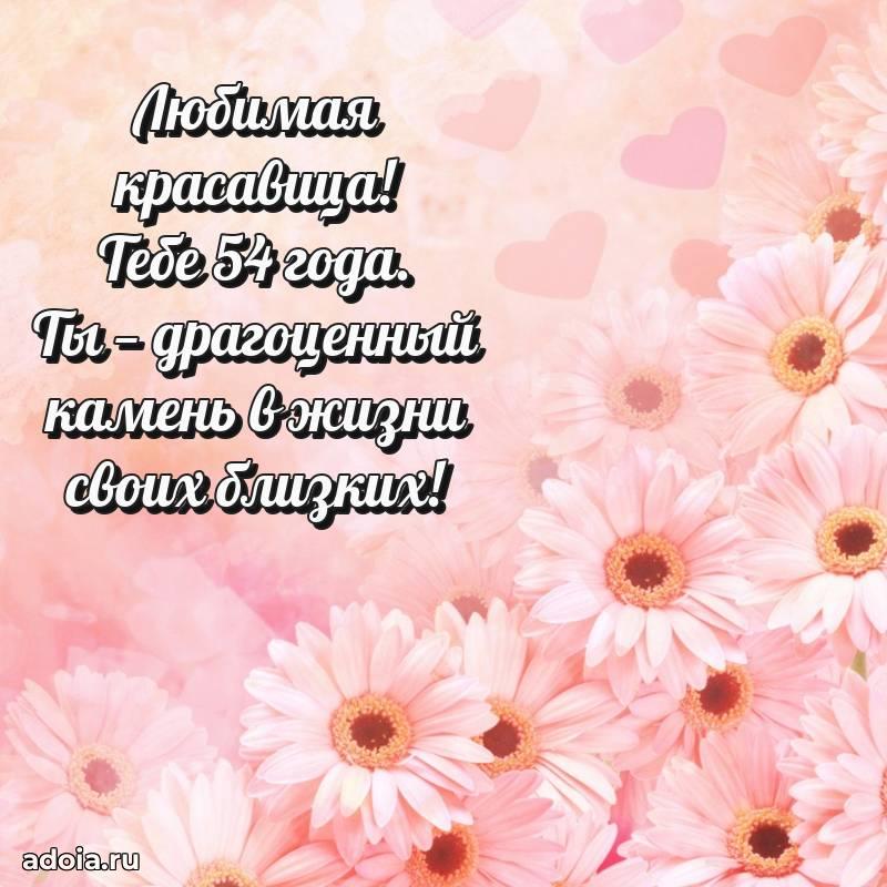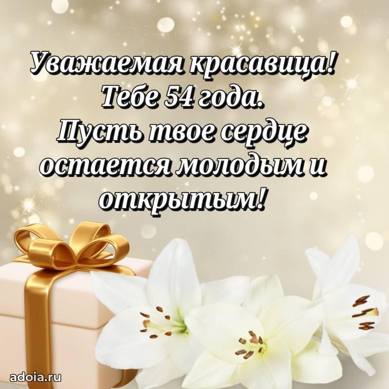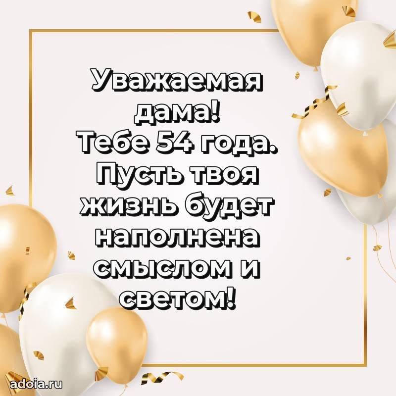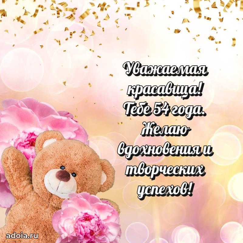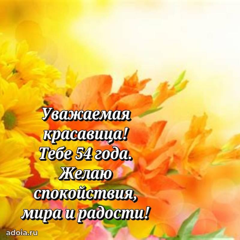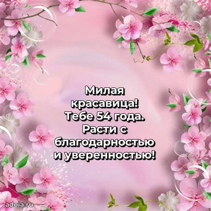 В поисках красивых и современных открыток? Вы попали по адресу! Здесь вы найдете картинки с днем рождения Женщине на 54 года! Все картинки в высоком качестве, которые можно скачать или отправить через WhatsApp бесплатно. Также вы найдете много прикольных и мерцающих гифок и анимаций, которые поднимут настроение! Все открытки содержат поздравления в стихах и прозе.