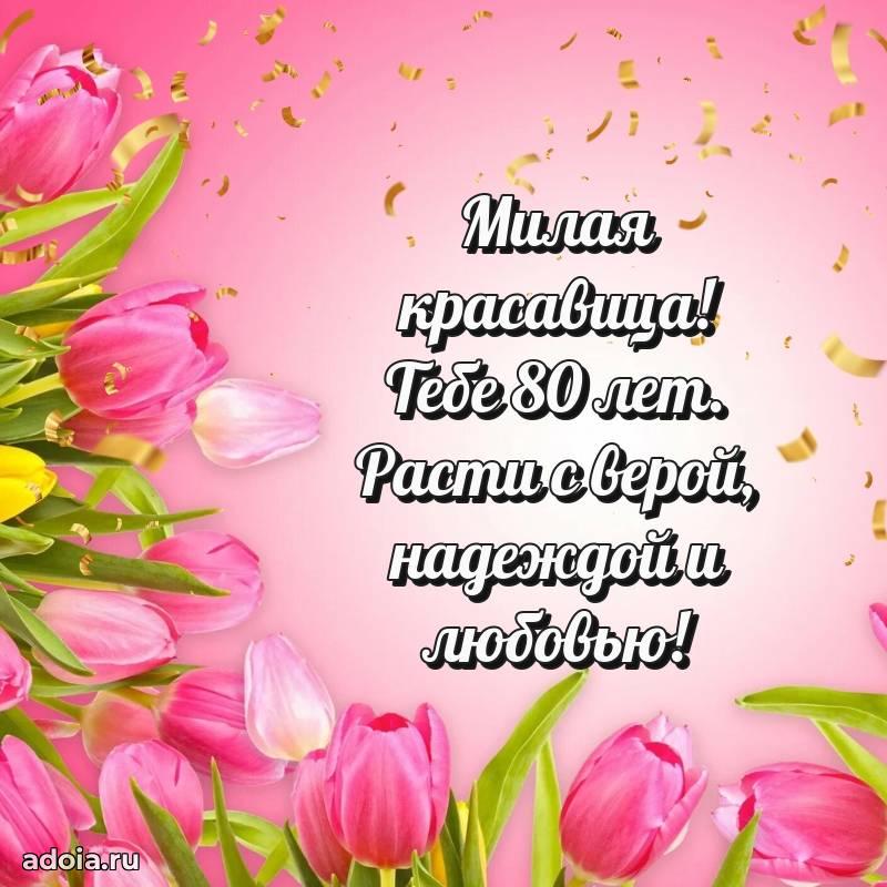 В поисках красивых и современных открыток? Вы попали по адресу! Здесь вы найдете картинки с днем рождения Женщине на 80 лет! Все картинки в высоком качестве, которые можно скачать или отправить через WhatsApp бесплатно. Также вы найдете много прикольных и мерцающих гифок и анимаций, которые поднимут настроение! Все открытки содержат поздравления в стихах и прозе.