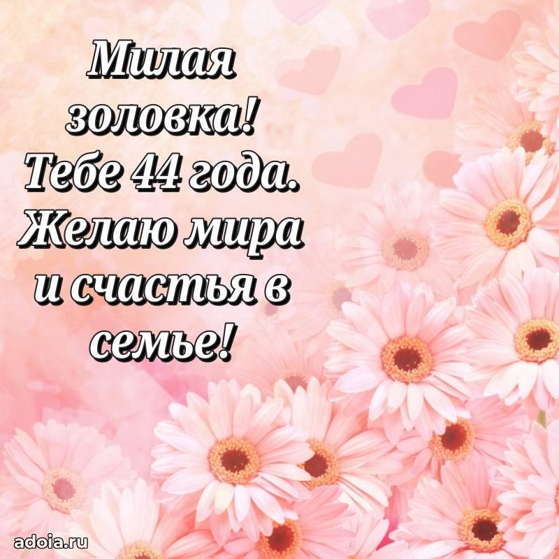 В поисках красивых и современных открыток? Вы попали по адресу! Здесь вы найдете картинки с днем рождения Золовке на 44 года! Все картинки в высоком качестве, которые можно скачать или отправить через WhatsApp бесплатно. Также вы найдете много прикольных и мерцающих гифок и анимаций, которые поднимут настроение! Все открытки содержат поздравления в стихах и прозе.