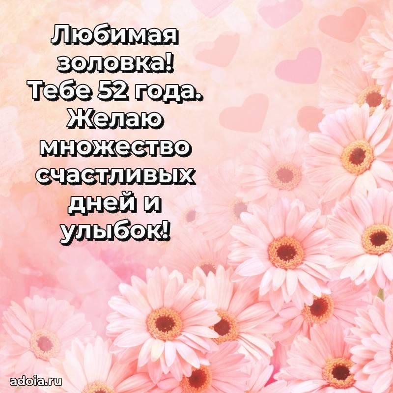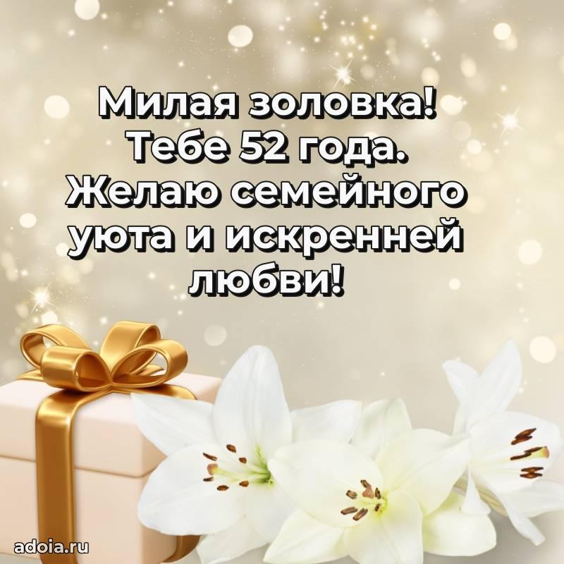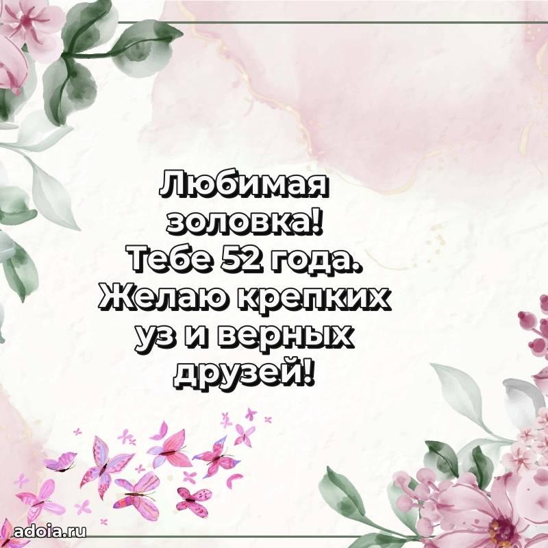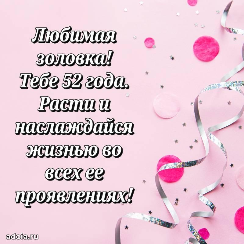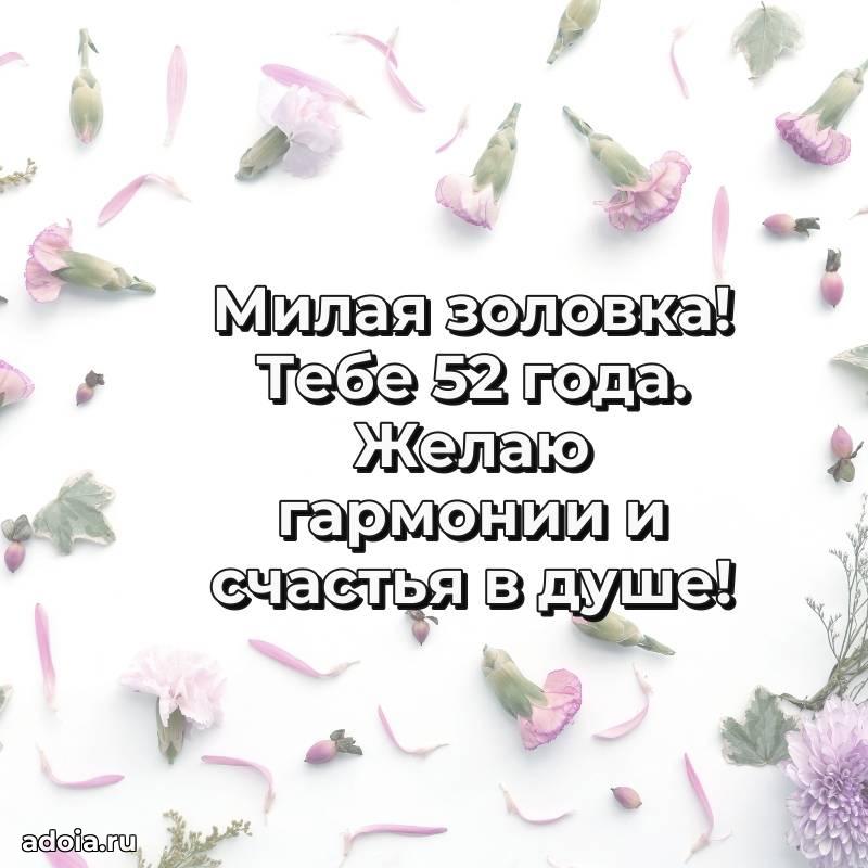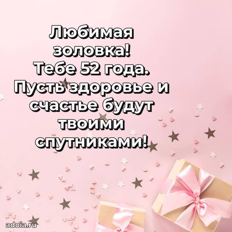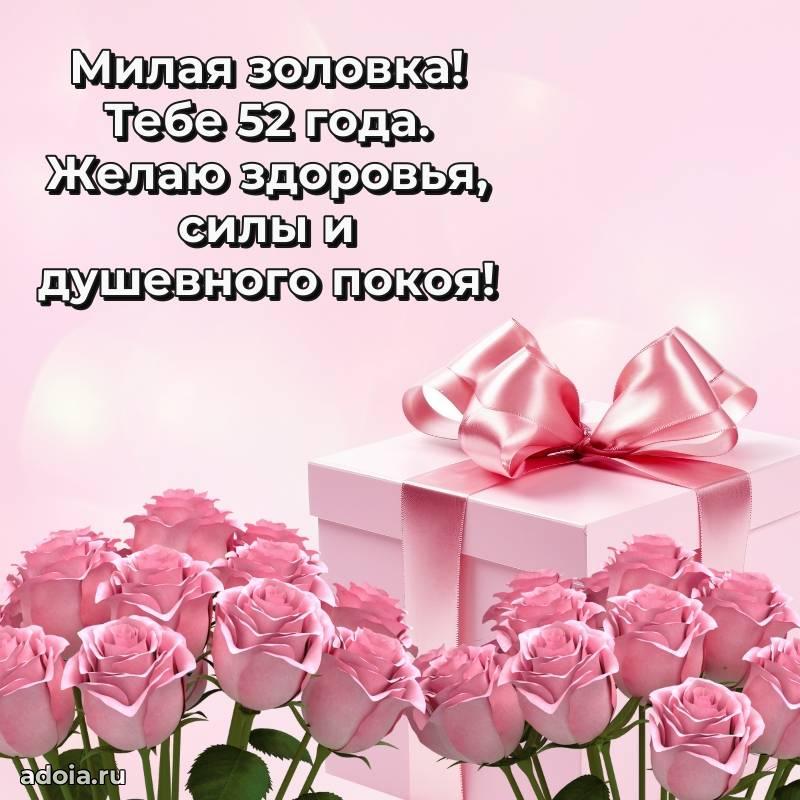 В поисках красивых и современных открыток? Вы попали по адресу! Здесь вы найдете картинки с днем рождения Золовке на 52 года! Все картинки в высоком качестве, которые можно скачать или отправить через WhatsApp бесплатно. Также вы найдете много прикольных и мерцающих гифок и анимаций, которые поднимут настроение! Все открытки содержат поздравления в стихах и прозе.