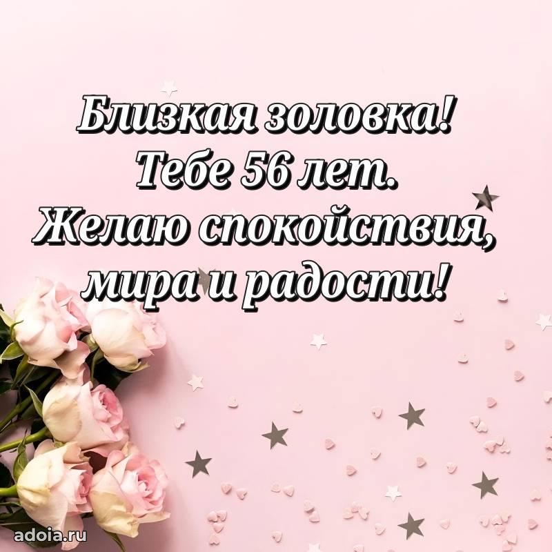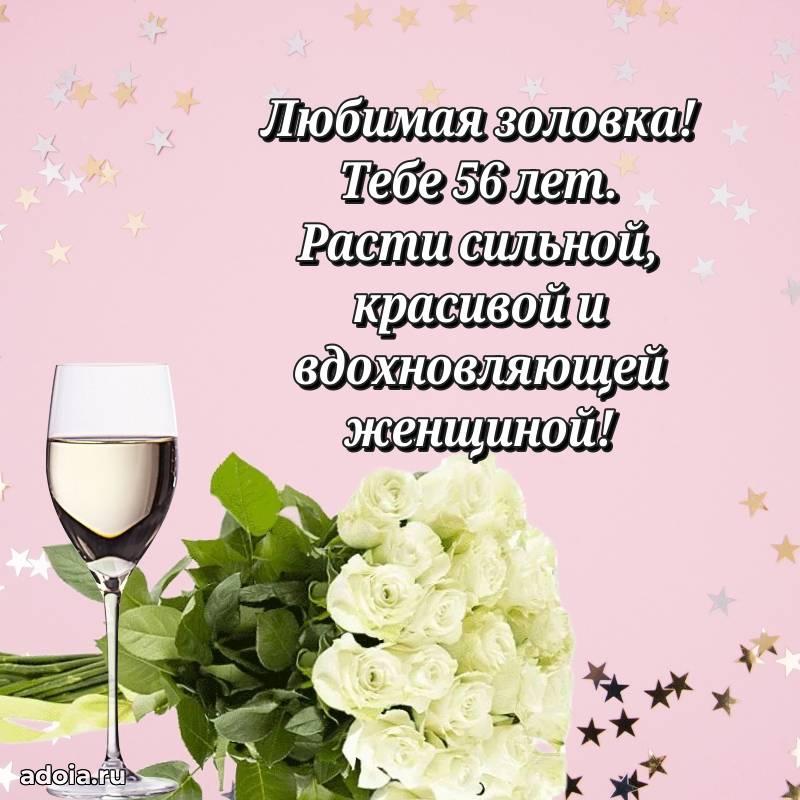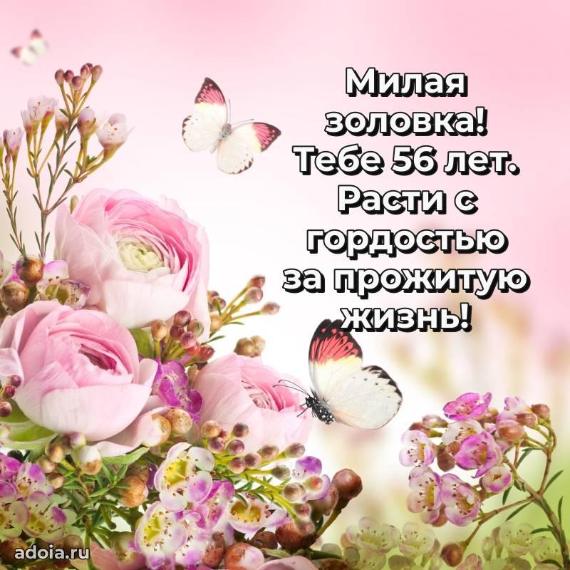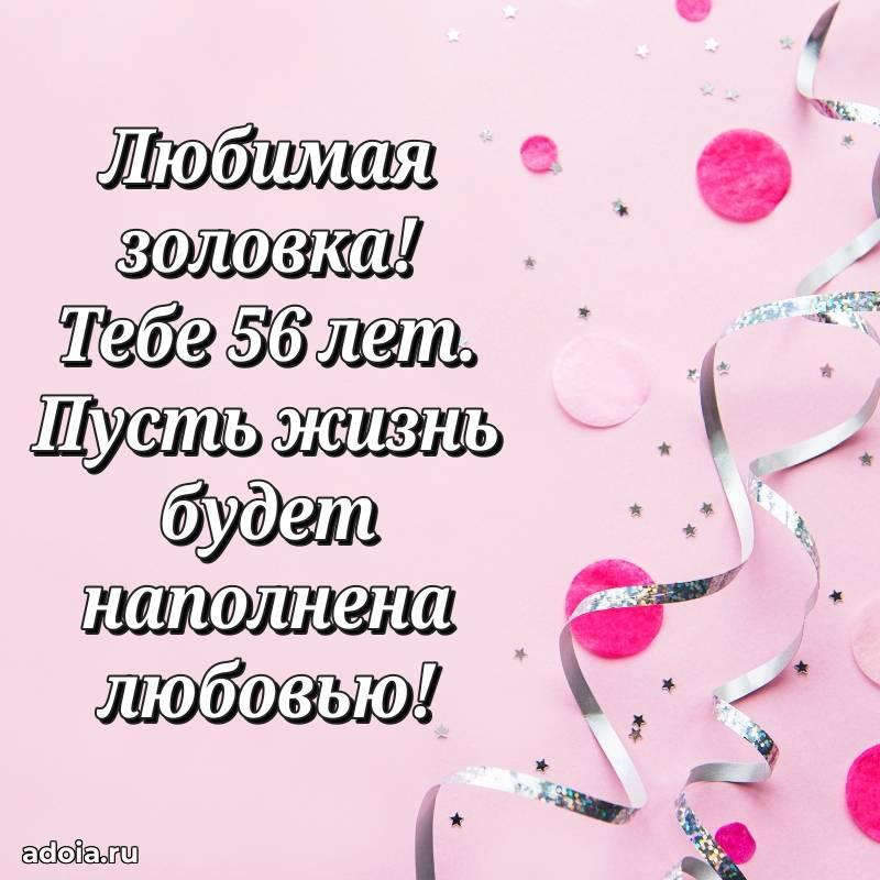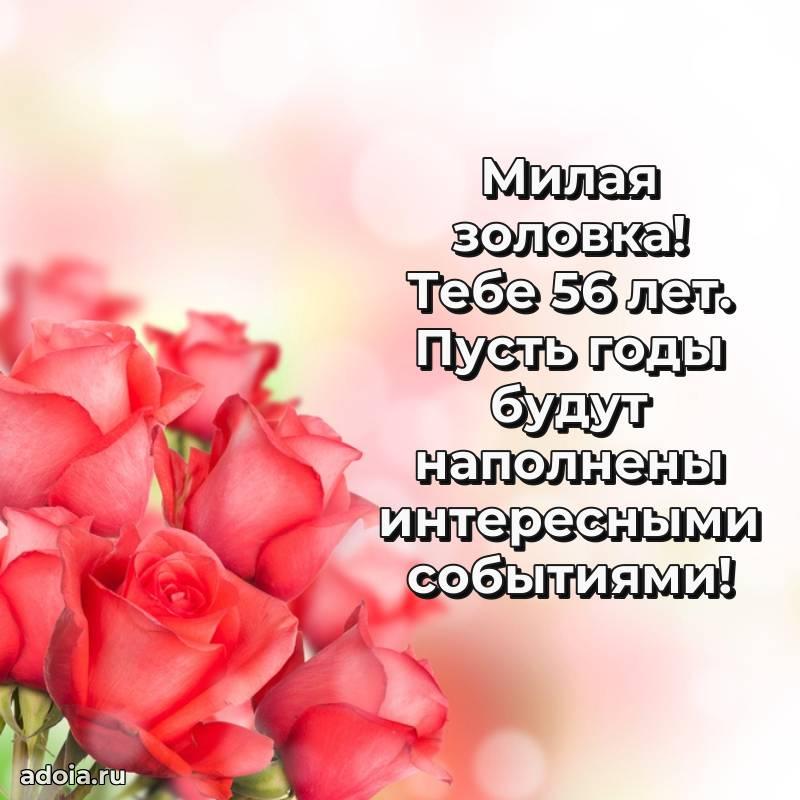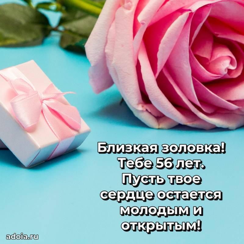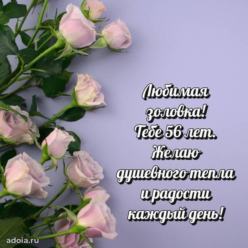 В поисках красивых и современных открыток? Вы попали по адресу! Здесь вы найдете картинки с днем рождения Золовке на 56 лет! Все картинки в высоком качестве, которые можно скачать или отправить через WhatsApp бесплатно. Также вы найдете много прикольных и мерцающих гифок и анимаций, которые поднимут настроение! Все открытки содержат поздравления в стихах и прозе.