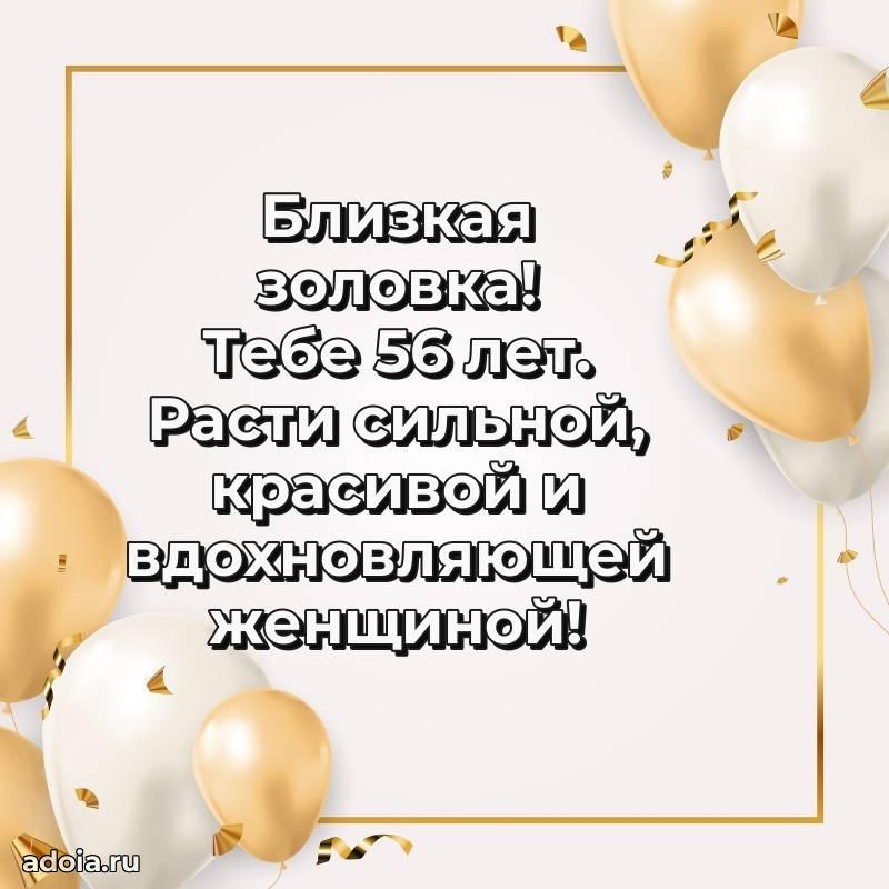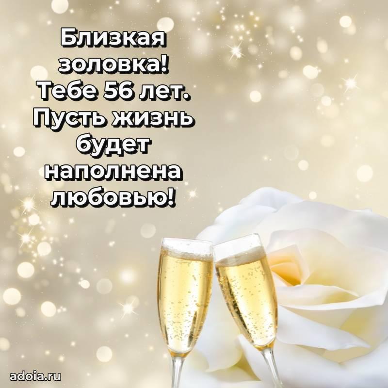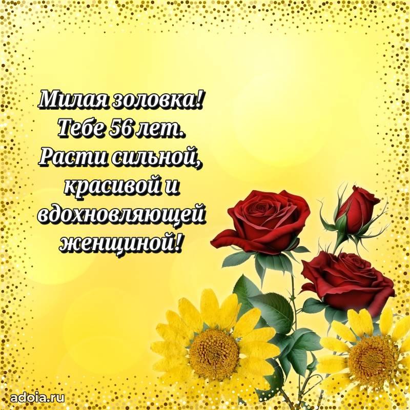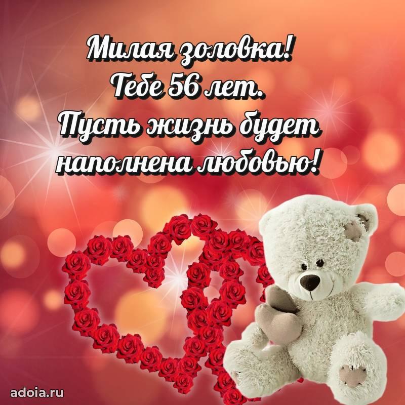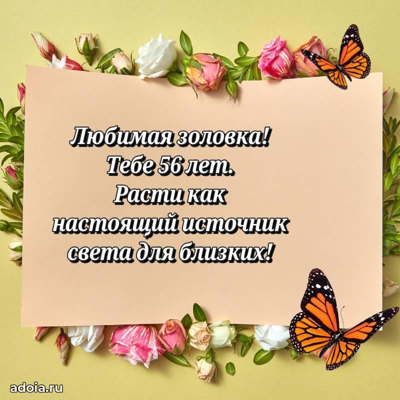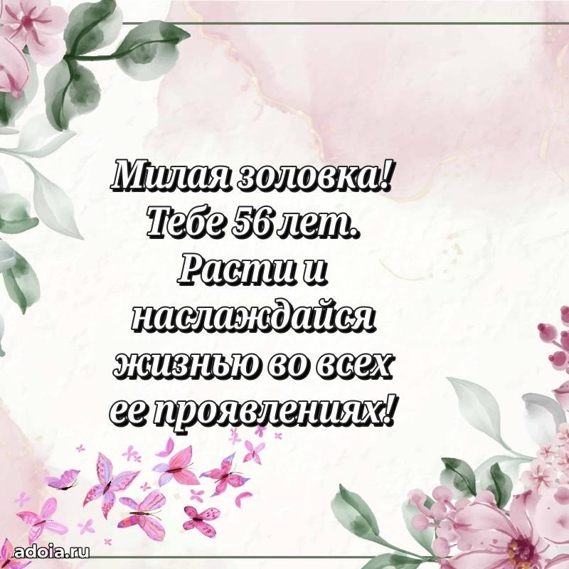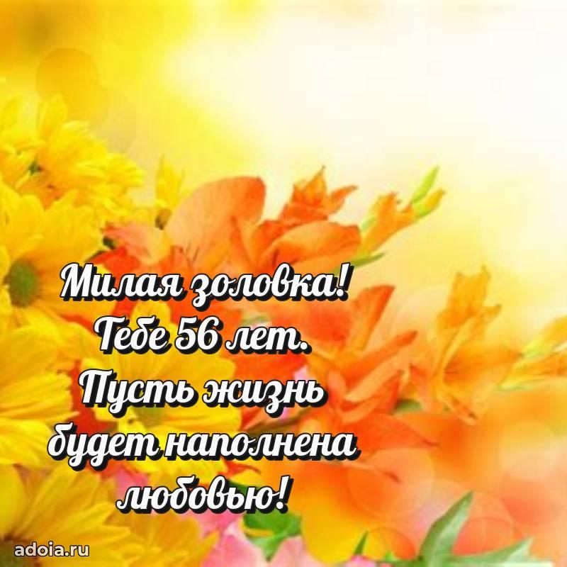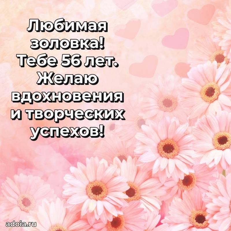 В поисках красивых и современных открыток? Вы попали по адресу! Здесь вы найдете картинки с днем рождения Золовке на 56 лет! Все картинки в высоком качестве, которые можно скачать или отправить через WhatsApp бесплатно. Также вы найдете много прикольных и мерцающих гифок и анимаций, которые поднимут настроение! Все открытки содержат поздравления в стихах и прозе.