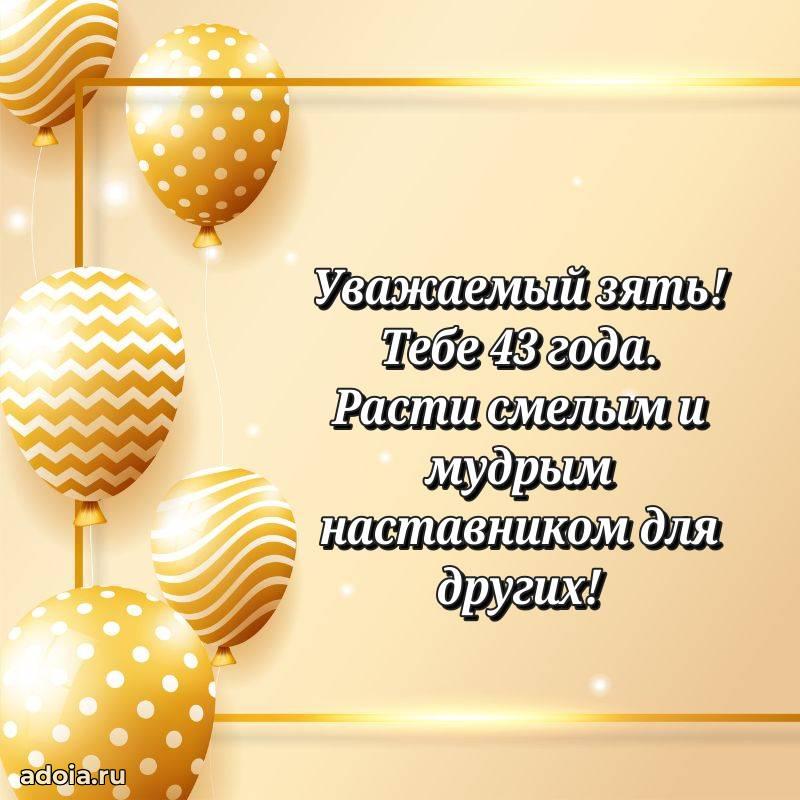 В поисках красивых и современных открыток? Вы попали по адресу! Здесь вы найдете картинки с днем рождения Зятю на 43 года! Все картинки в высоком качестве, которые можно скачать или отправить через WhatsApp бесплатно. Также вы найдете много прикольных и мерцающих гифок и анимаций, которые поднимут настроение! Все открытки содержат поздравления в стихах и прозе.