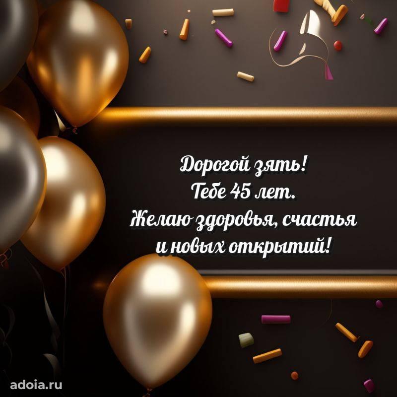 В поисках красивых и современных открыток? Вы попали по адресу! Здесь вы найдете картинки с днем рождения Зятю на 45 лет! Все картинки в высоком качестве, которые можно скачать или отправить через WhatsApp бесплатно. Также вы найдете много прикольных и мерцающих гифок и анимаций, которые поднимут настроение! Все открытки содержат поздравления в стихах и прозе.
